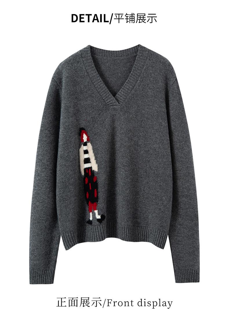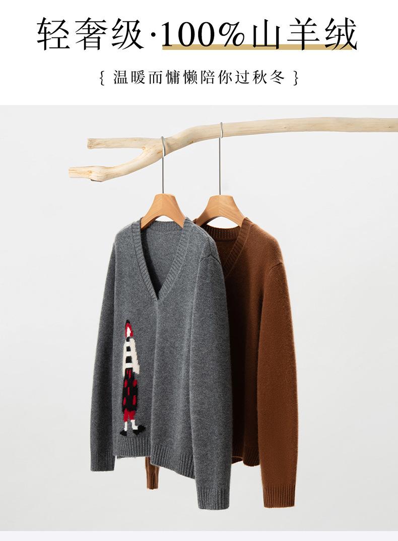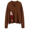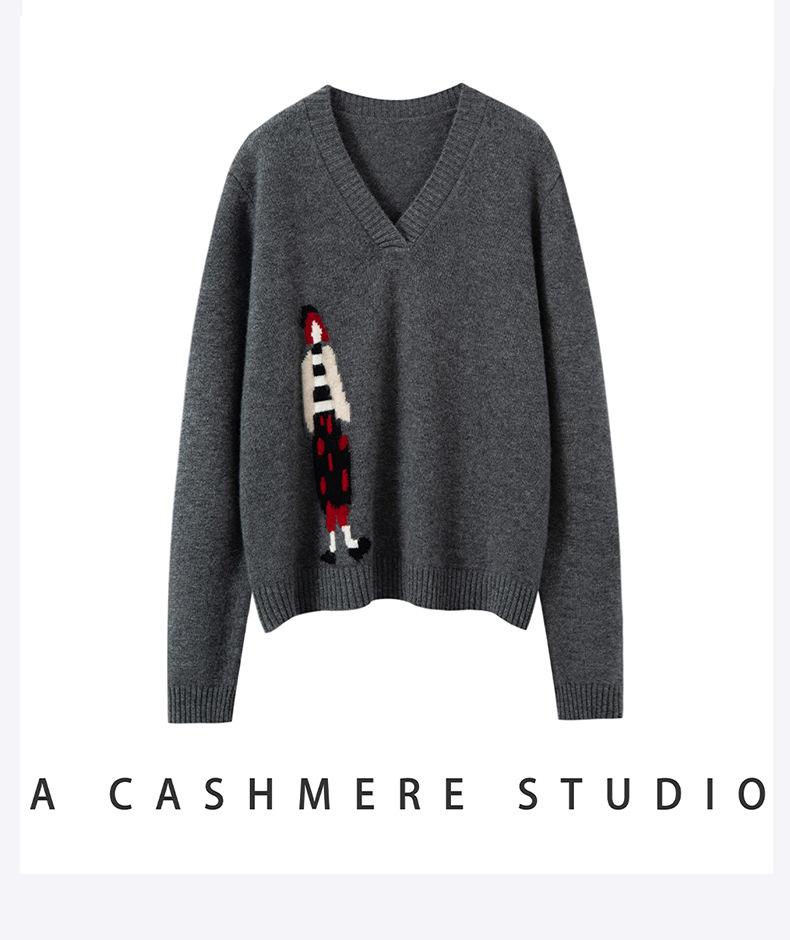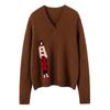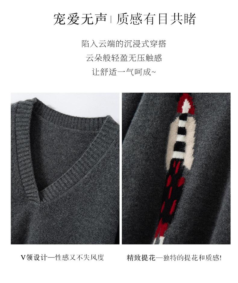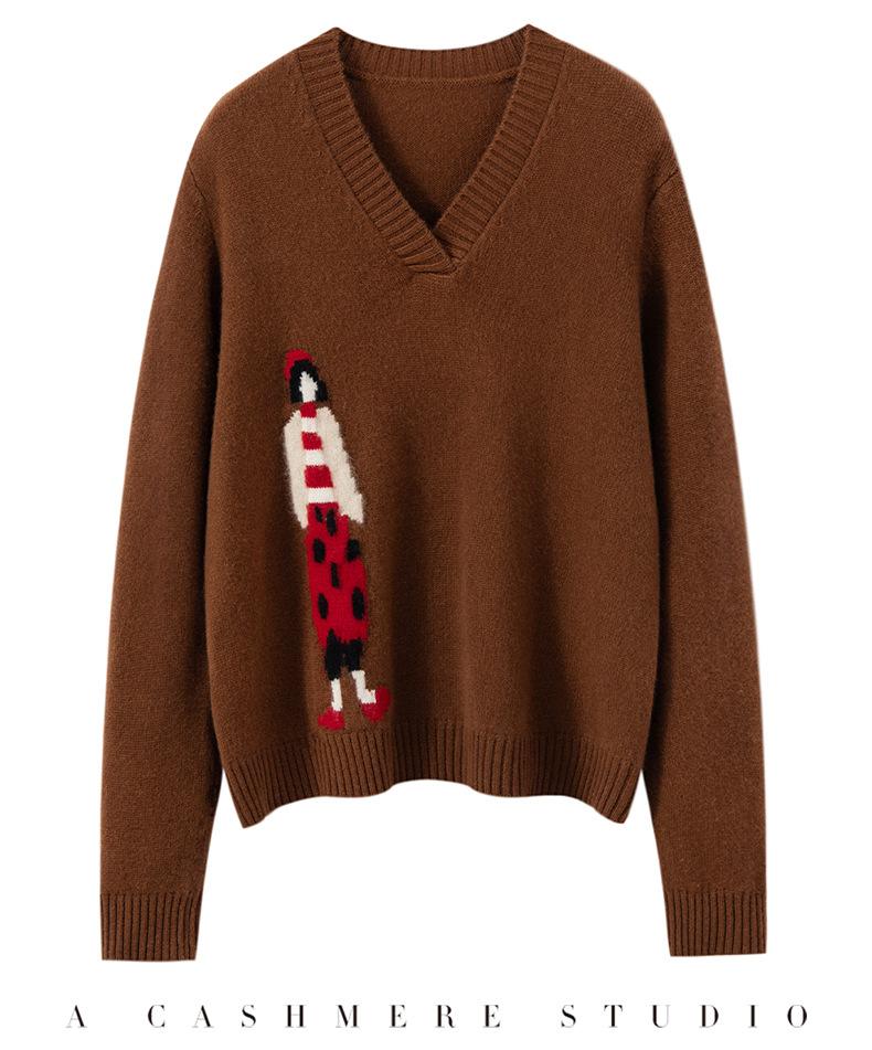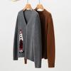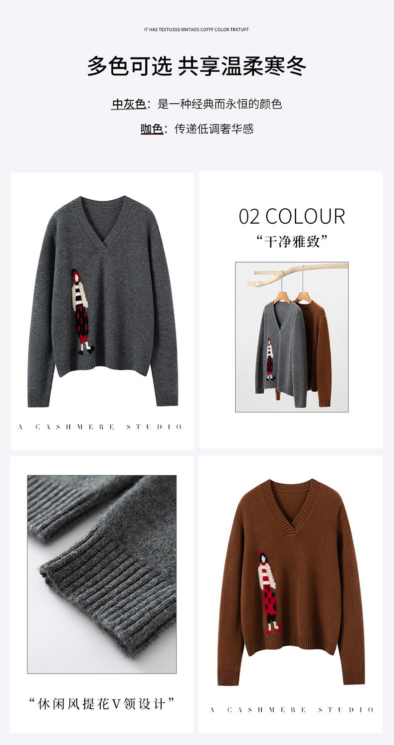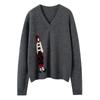 Nuevo Otoño e Invierno Casual Suelto Cálido Bordado Cuello en V Jersey de Punto Suéter de Cachemira Mujer 100 Cachemira Pura