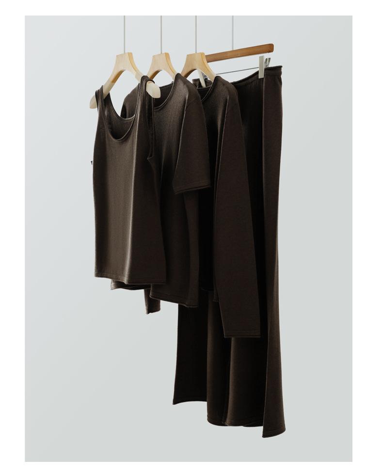 Nueva Llegada Lana Peinada Cuello Redondo Camisola Tejida Borde Enrollado Color Sólido Jersey Camiseta Base Top para Primavera y Verano 2025