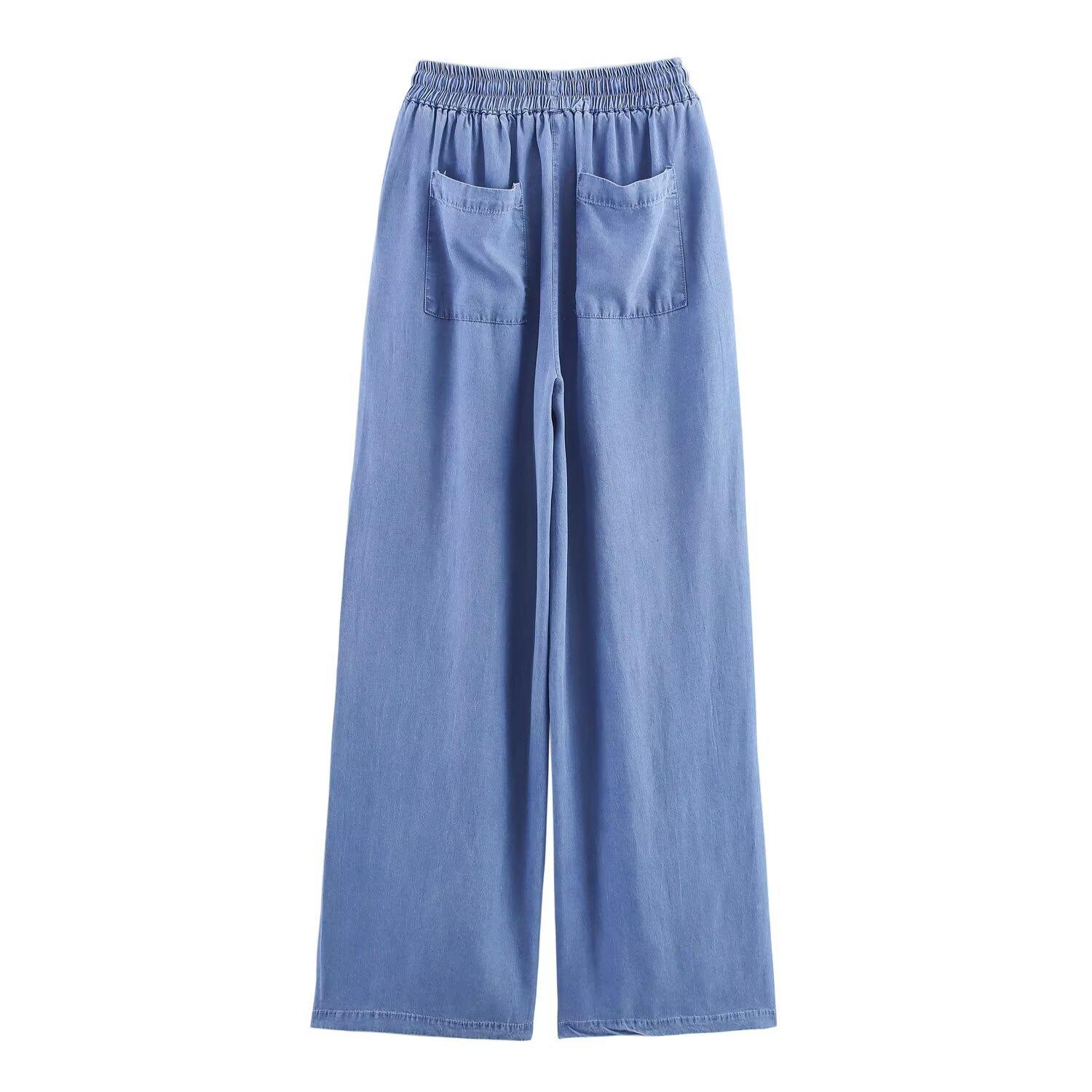 Z Estilo Europeo y Americano Transfronterizo 2025 Nueva Moda Temperamento Ropa de Mujer Venta al por Mayor Jeans de Pierna Ancha con Cintura Elástica 7484081
