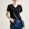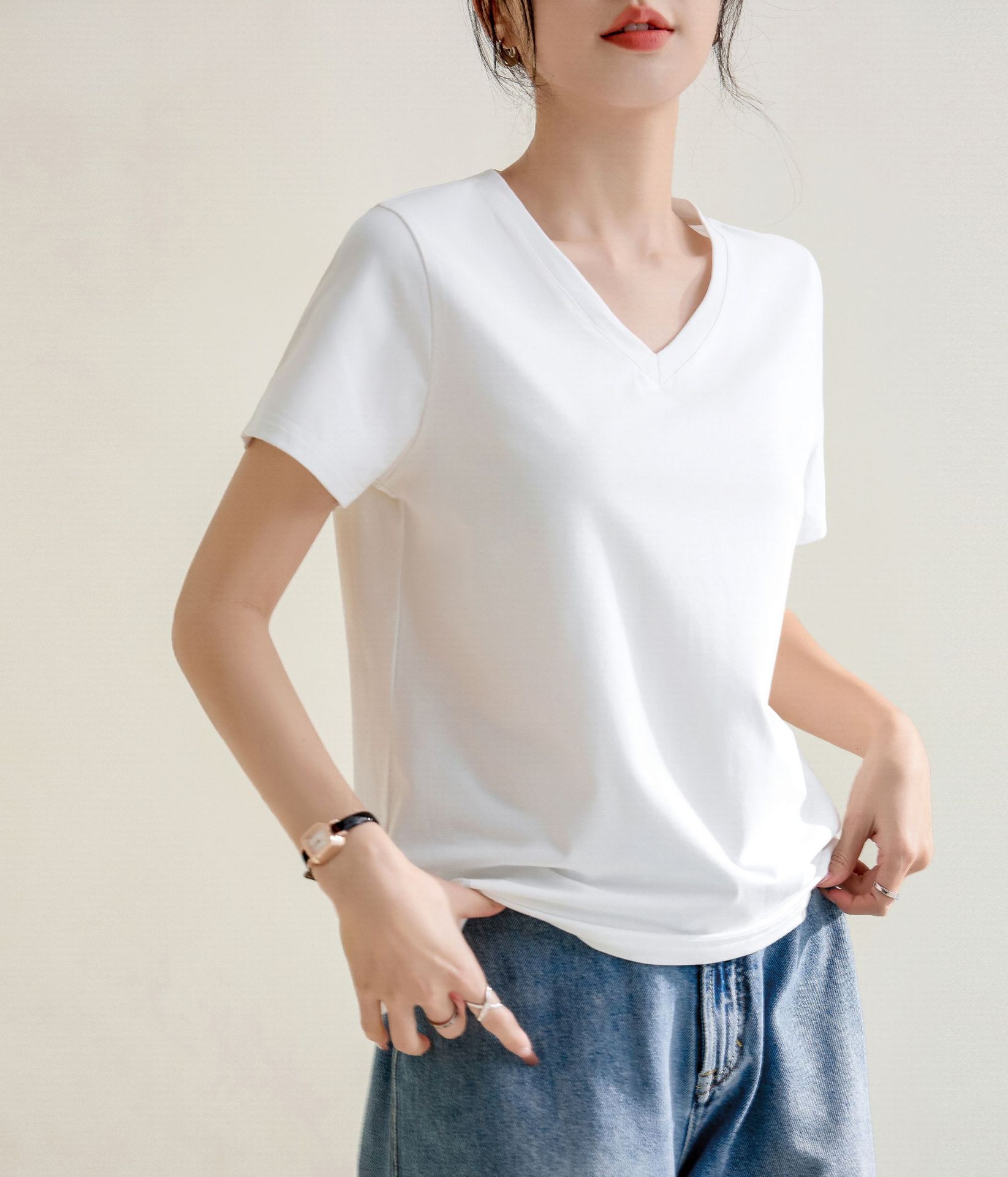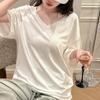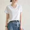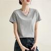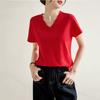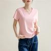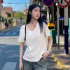Playera básica de cuello en V y manga corta para mujer, verano nueva, color sólido, holgada, hombro recto, adelgazante, versátil, de algodón