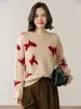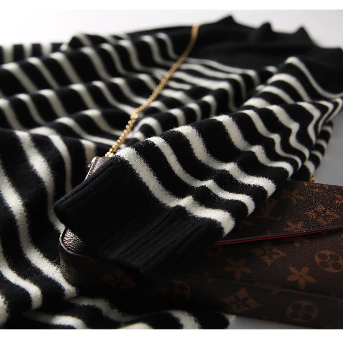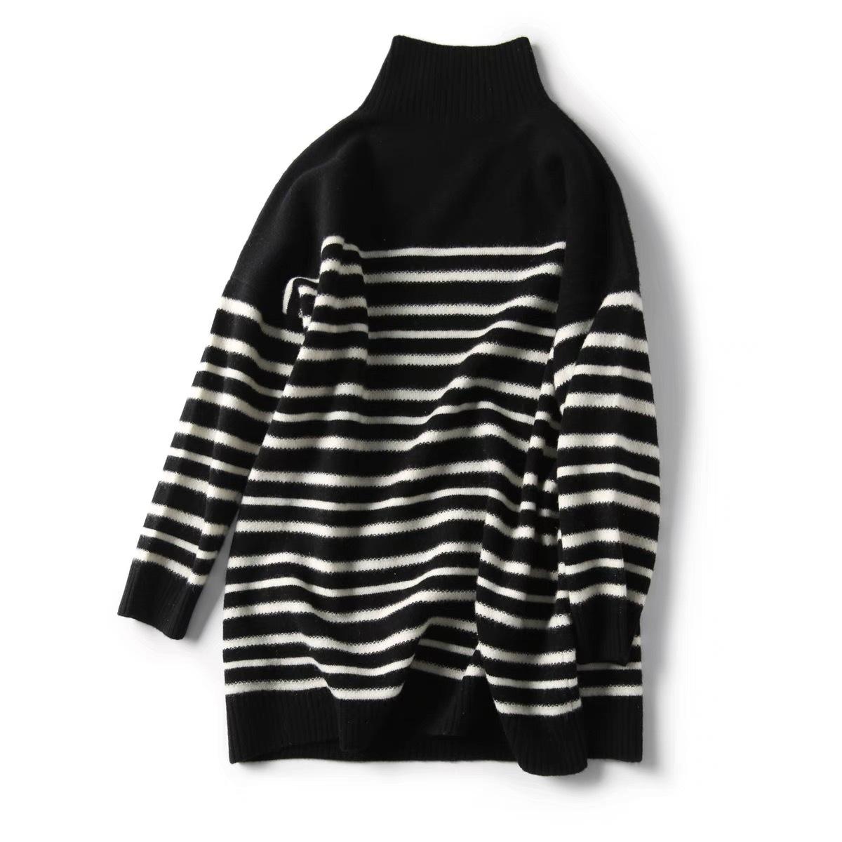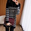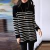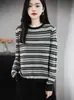 25 Otoño/Invierno Nuevo Suéter de Cuello Redondo Medio Alto para Mujer Tejido a Rayas Largo Medio Suelto Jersey Base