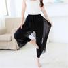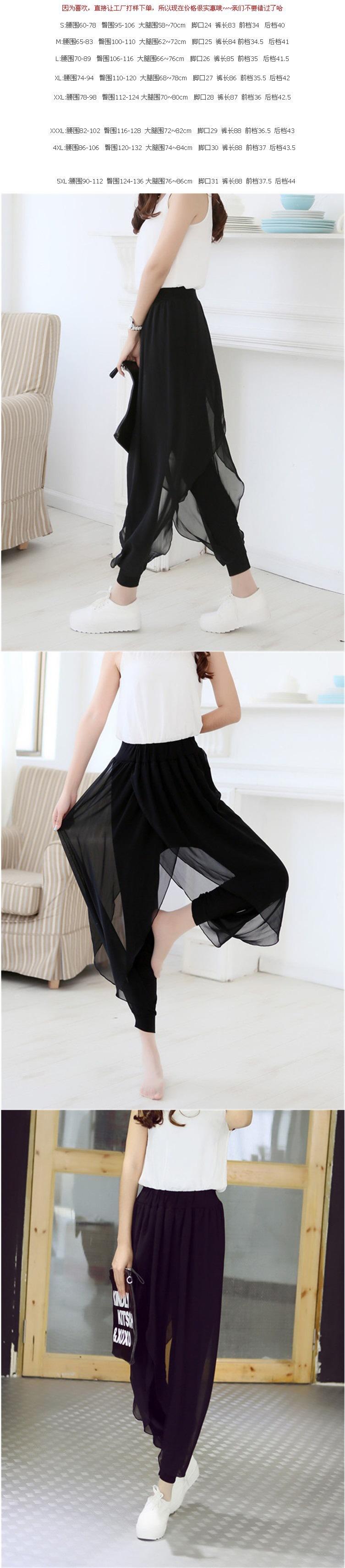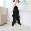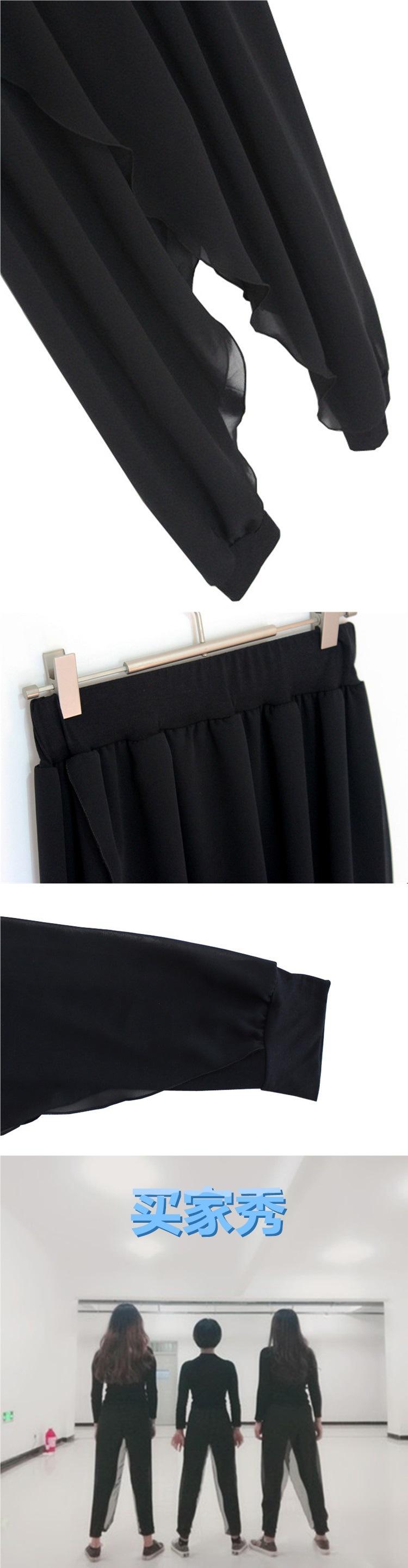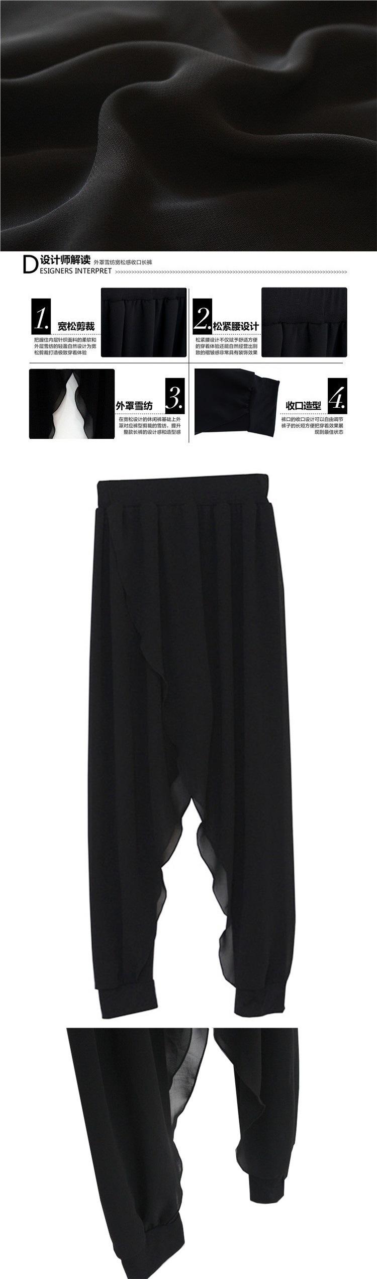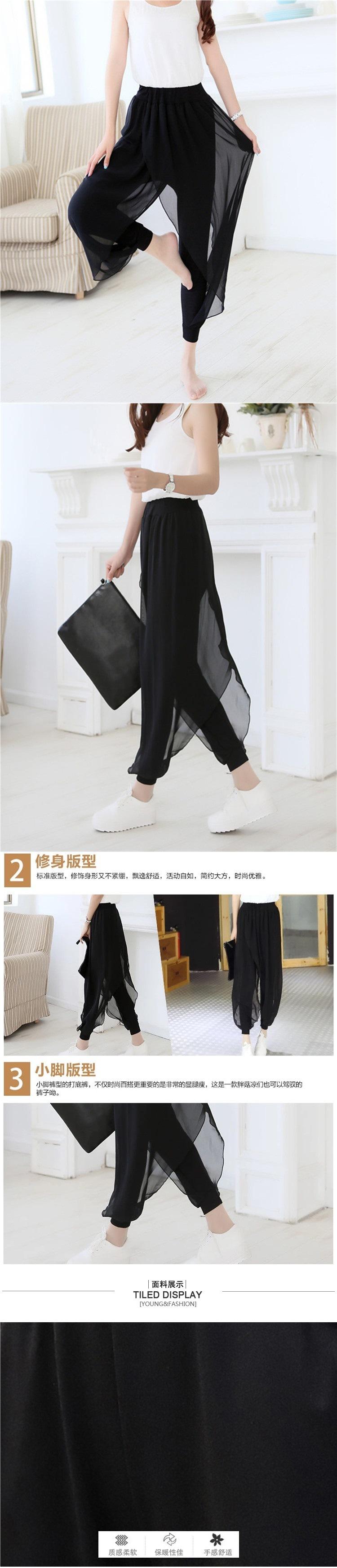 Compra Pantalones Harem de Chifón Negro Sueltos de Yoga con Cintura Elástica Empalmada Falso Dos Piezas Pantalones Linterna Casuales Versátiles con Caída al por mayor en Joom.pro