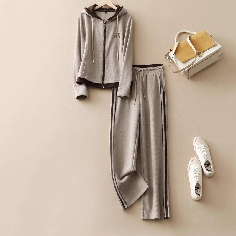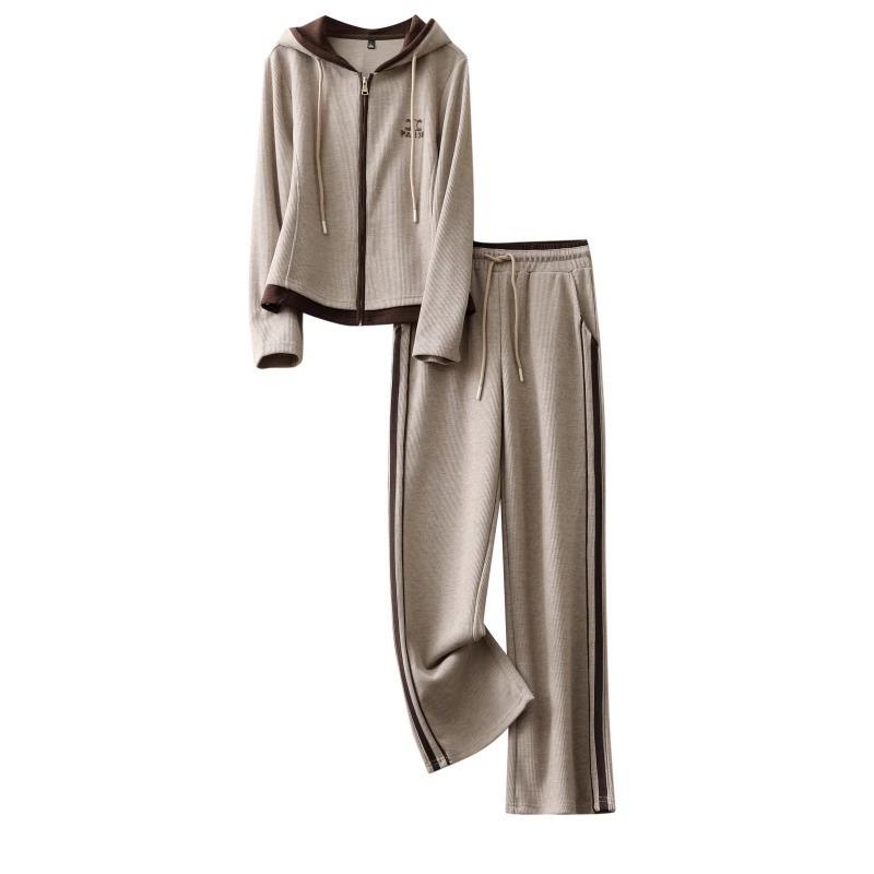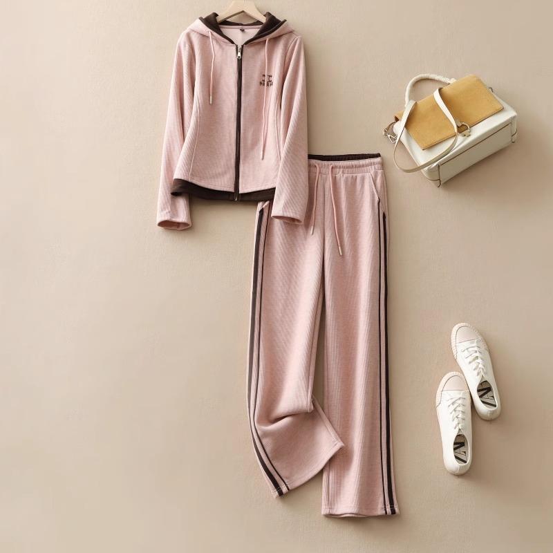 Traje Deportivo Casual 2025 Primavera y Otoño Nuevo Chaqueta Corta con Capucha para Mujer Pantalones de Pierna Recta Conjunto de Dos Piezas Ropa Deportiva Rosa