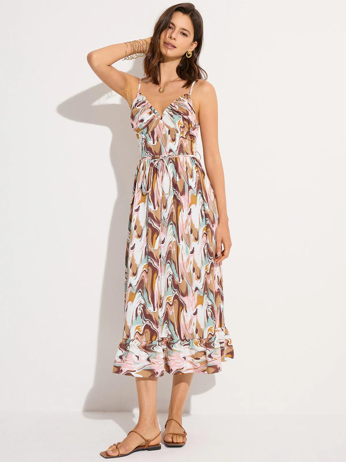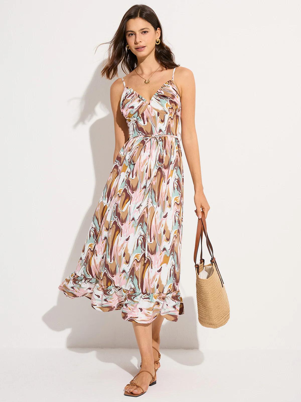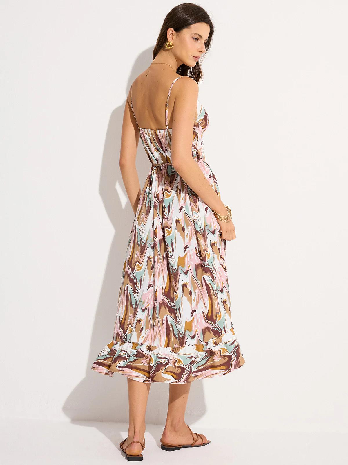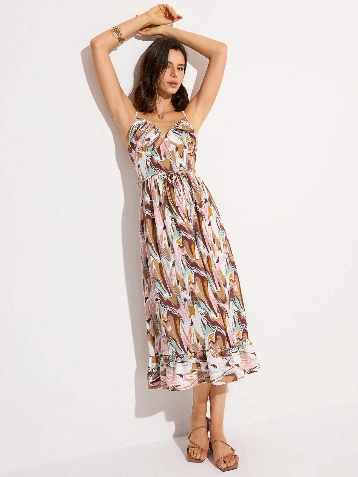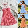 Europeo y Americano 2025 Nuevo Estilo Vacacional Transfronterizo para Mujer Vestido Casual Estampado con Tirantes Serie Playa Vestido Línea A