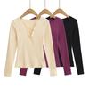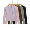 Camiseta blanca de estilo puro y sexy con torsión, cuello en V, manga larga para mujer, otoño, encaje patchwork, corte ajustado, top corto básico para chica hot