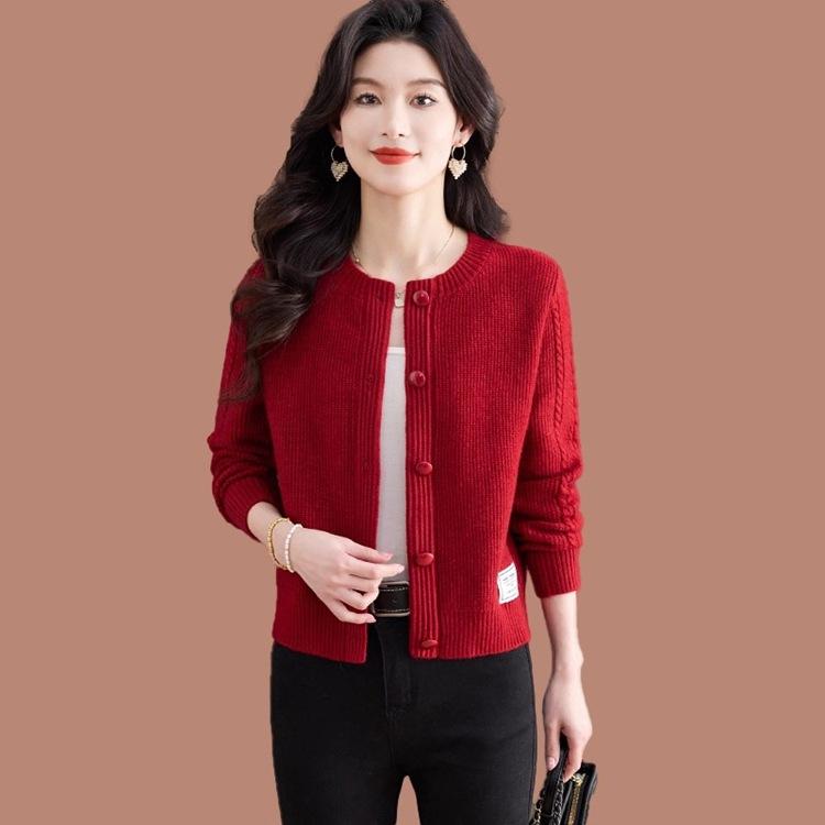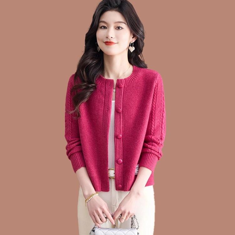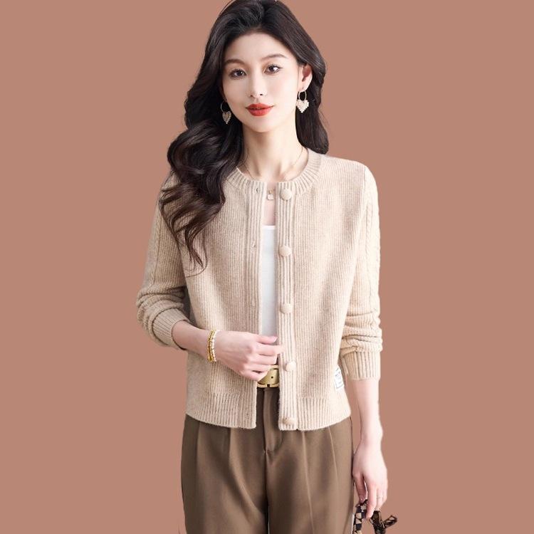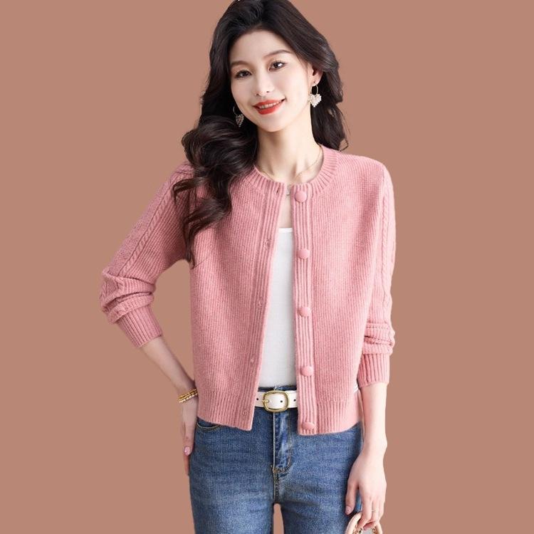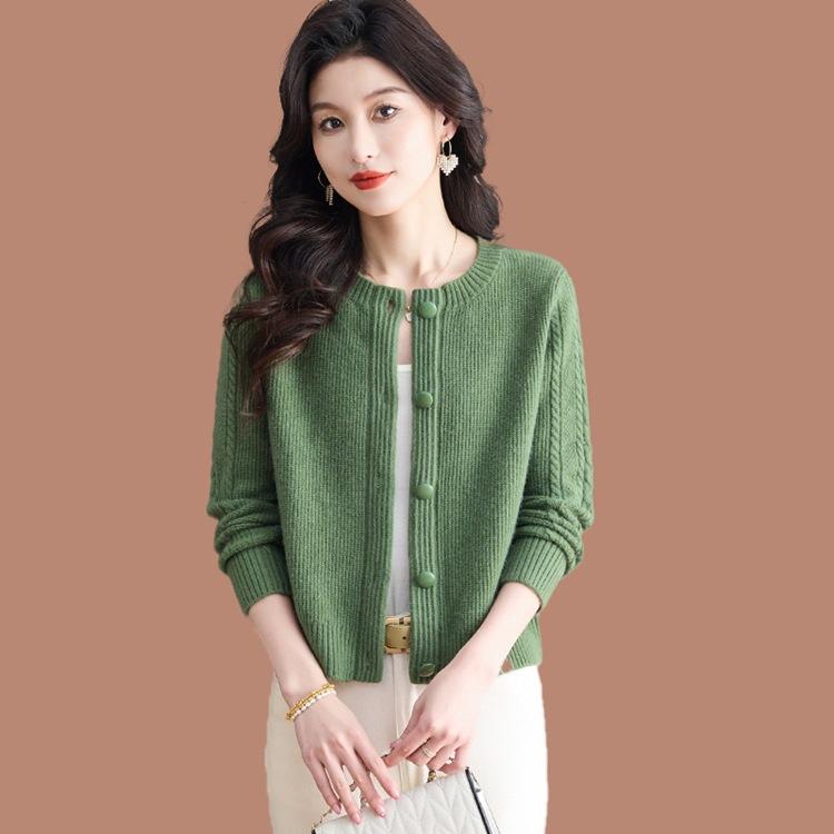 Otoño Nuevo Cárdigan de Punto Temperamento Chaqueta Pequeña Suéter Top Manga Larga Abrigo Versátil Verde