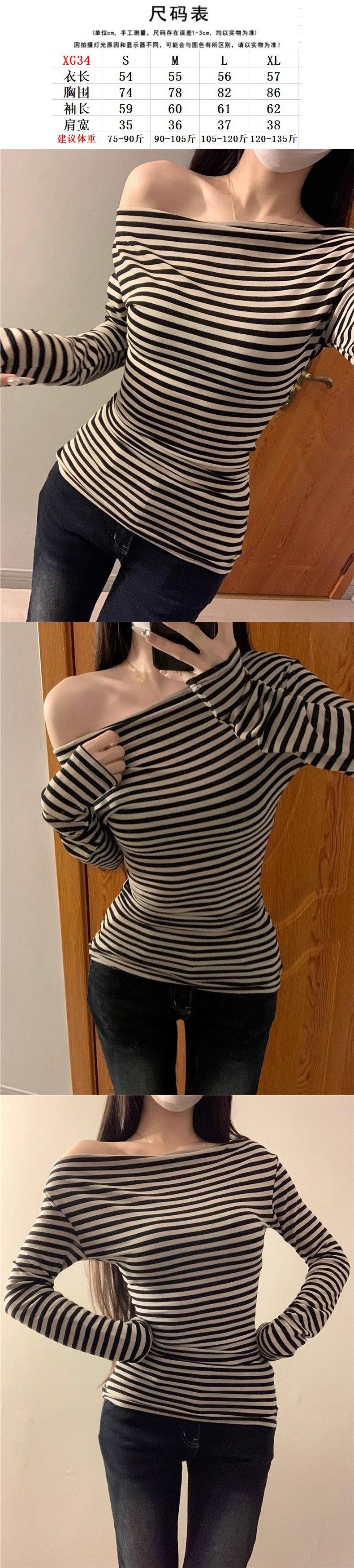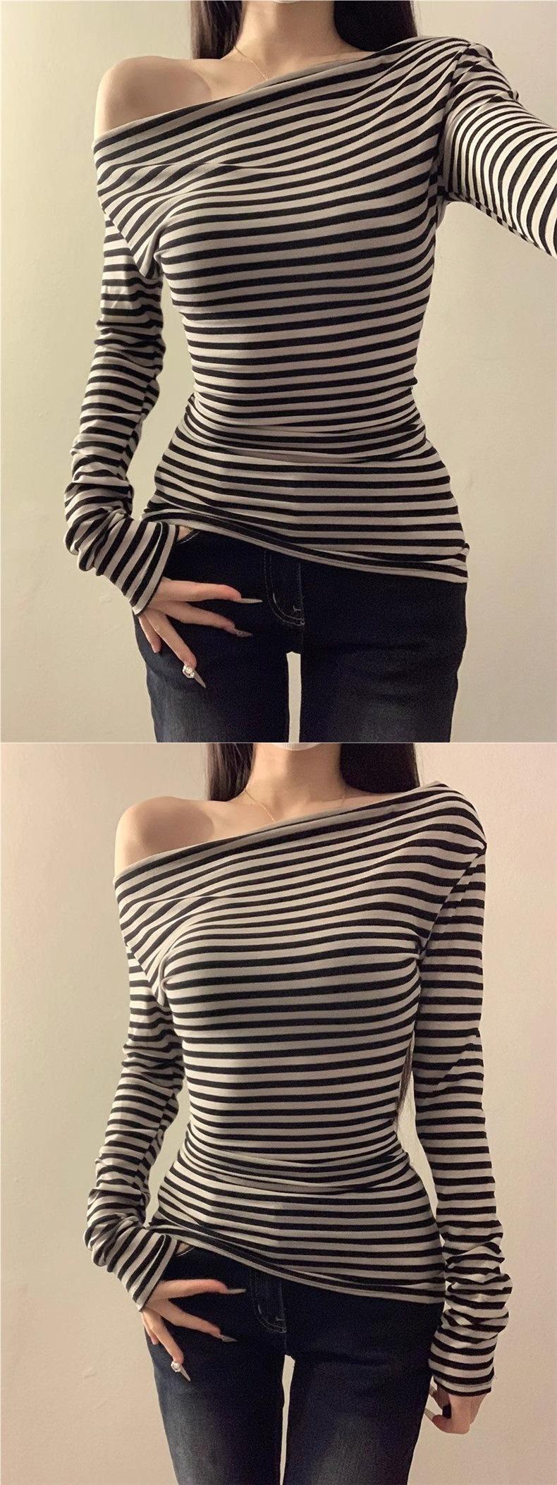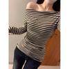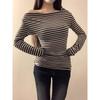 Moda Estilo Coreano de Alta Gama Camisa Base de Manga Larga a Rayas para Mujer Nuevo Otoño Temprano 2025 Talla Pequeña Top Adelgazante