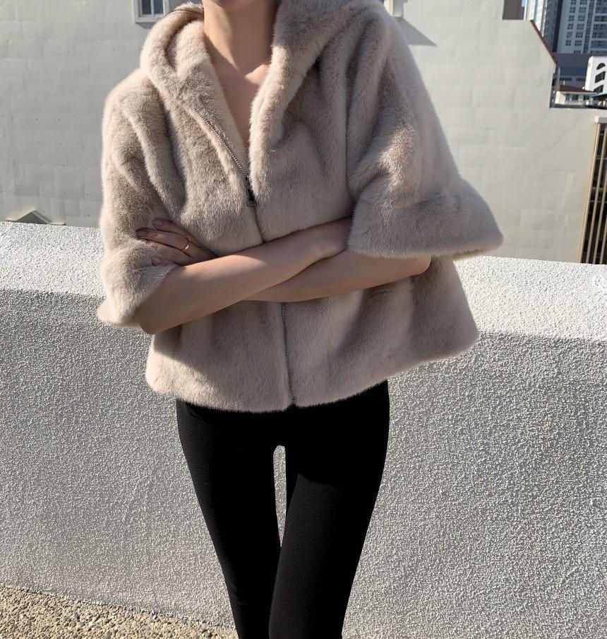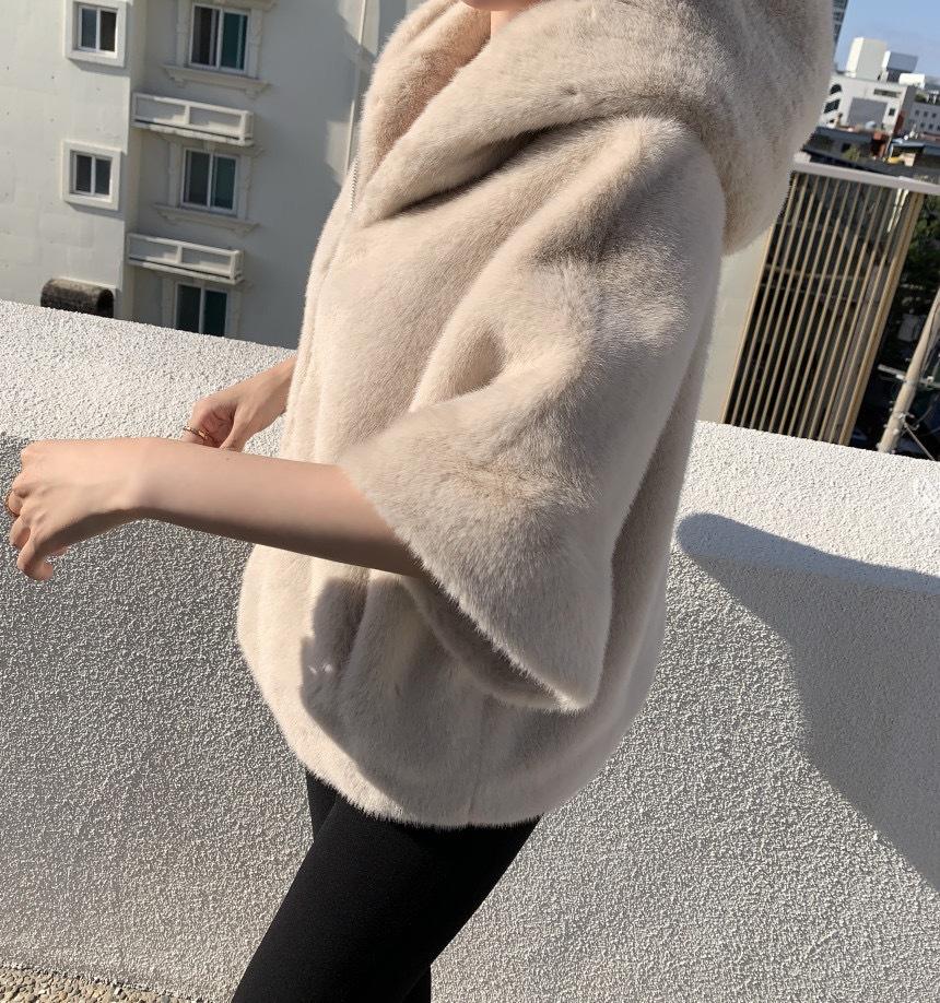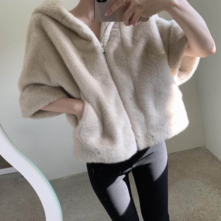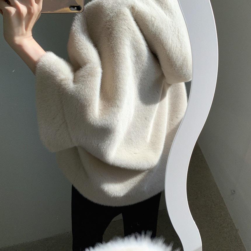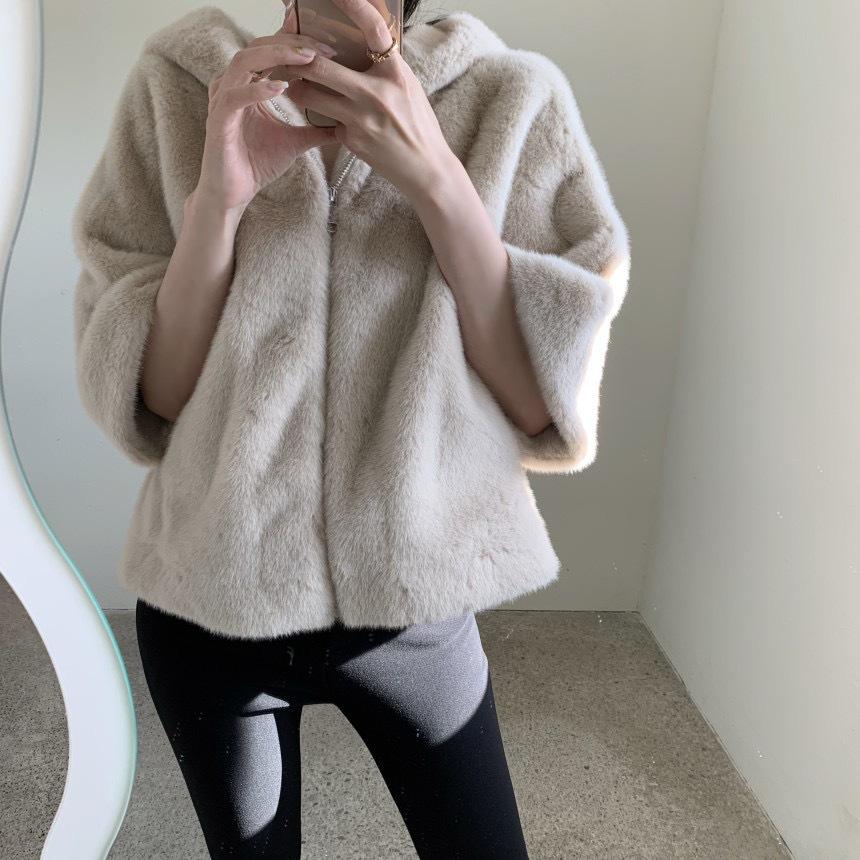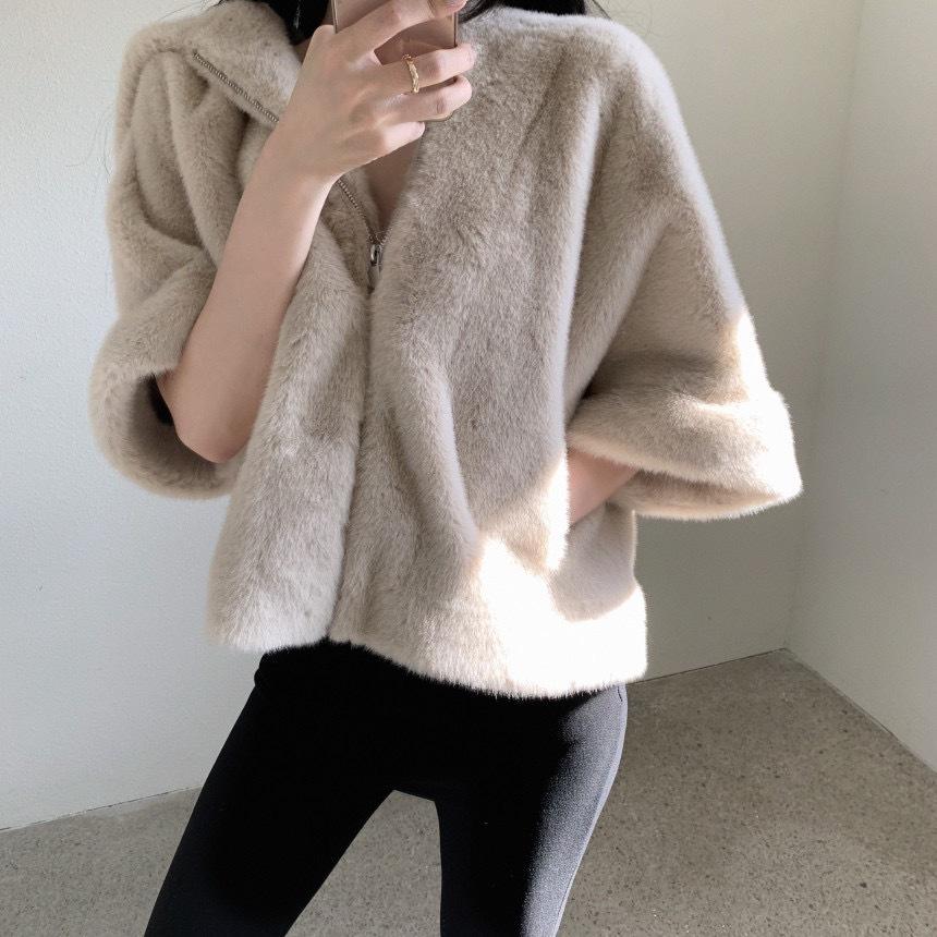 Abrigo de felpa versátil suelto con capucha de temperamento retro chic coreano de otoño e invierno impermeable de piel de visón para mujer