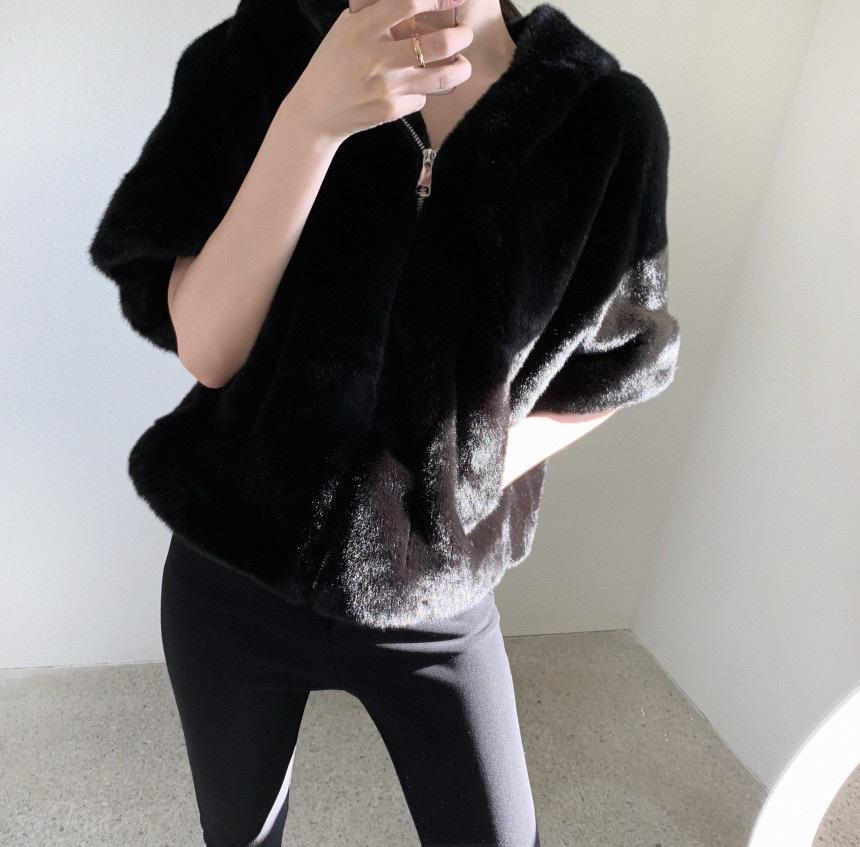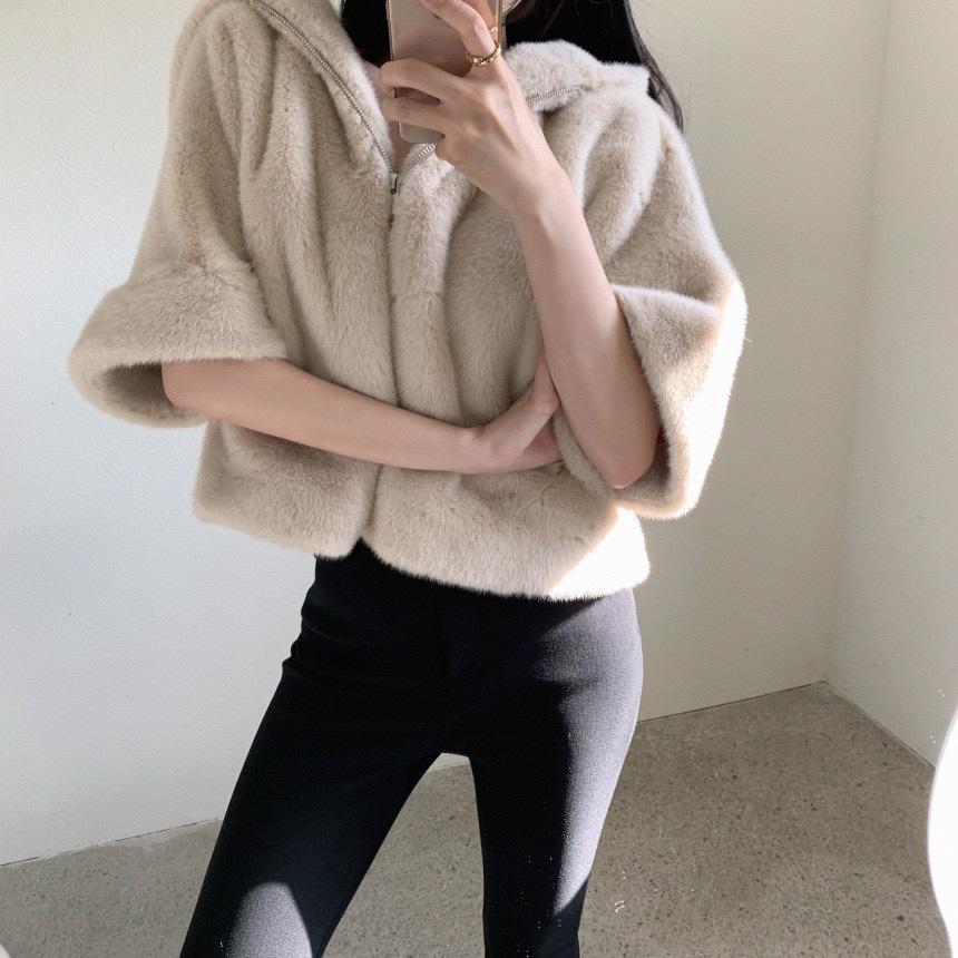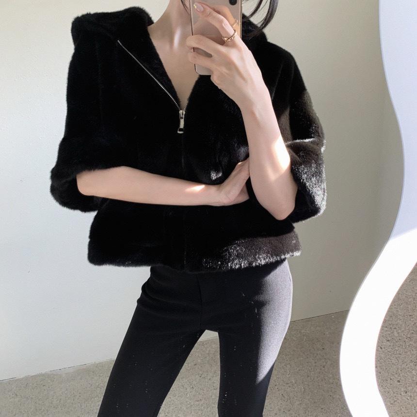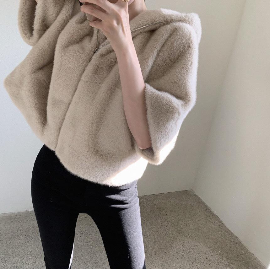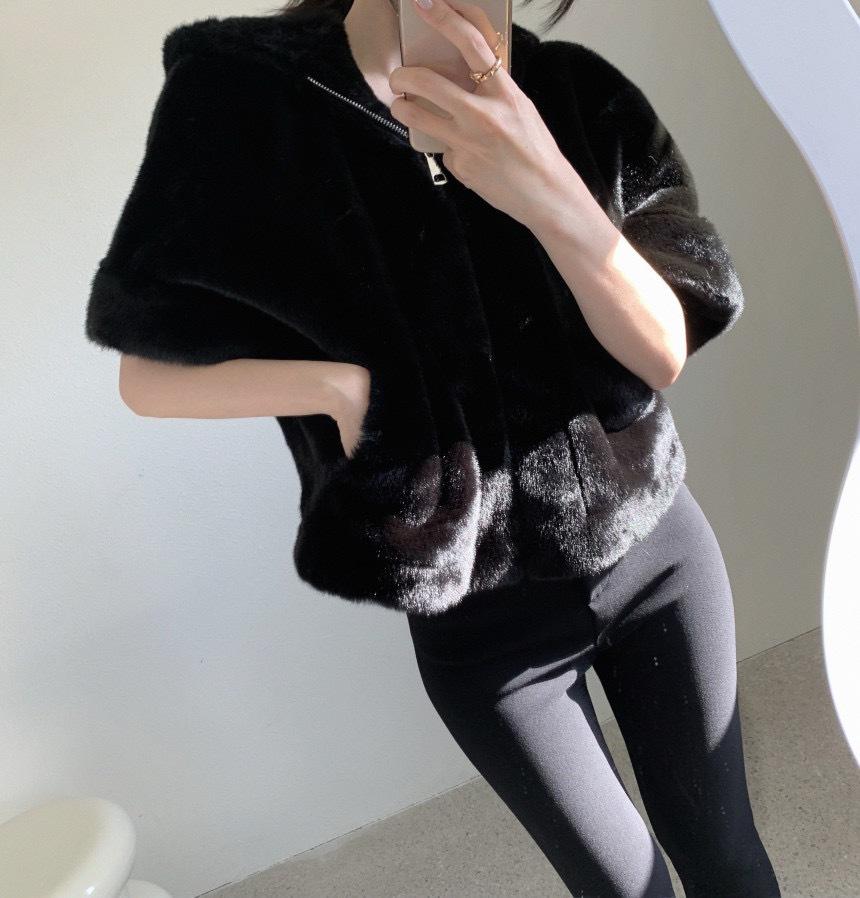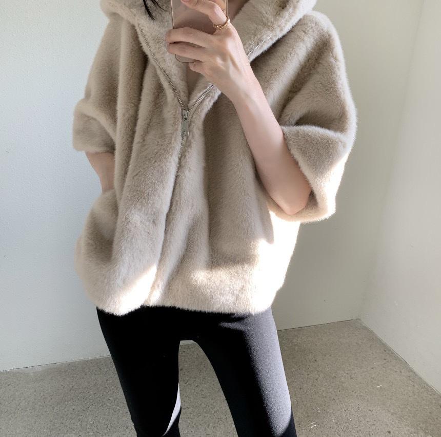 Abrigo de felpa versátil suelto con capucha de temperamento retro chic coreano de otoño e invierno impermeable de piel de visón para mujer