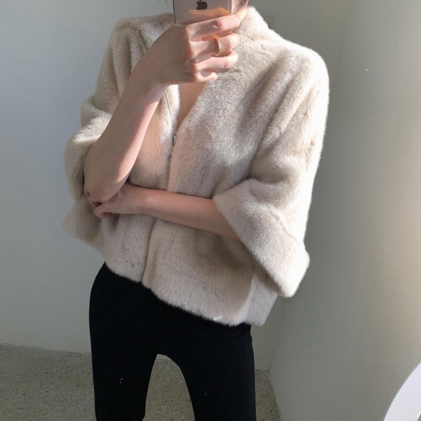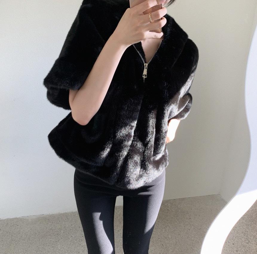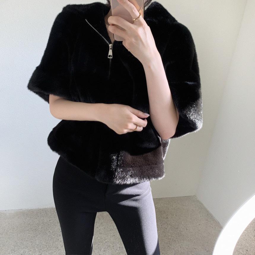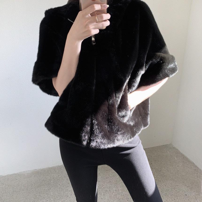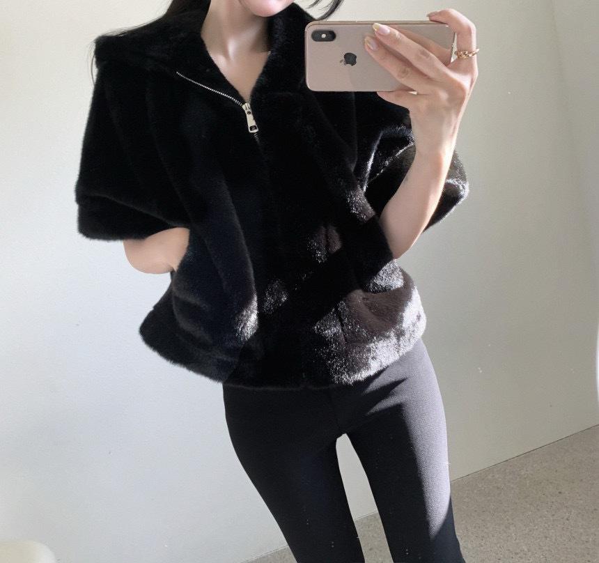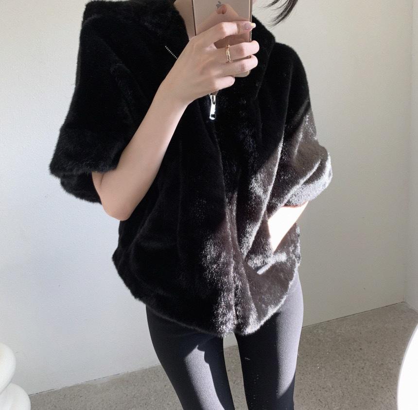 Abrigo de felpa versátil suelto con capucha de temperamento retro chic coreano de otoño e invierno impermeable de piel de visón para mujer