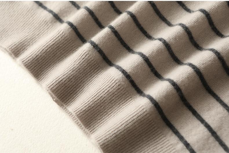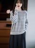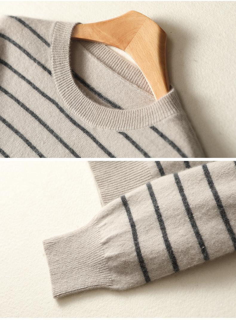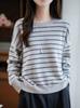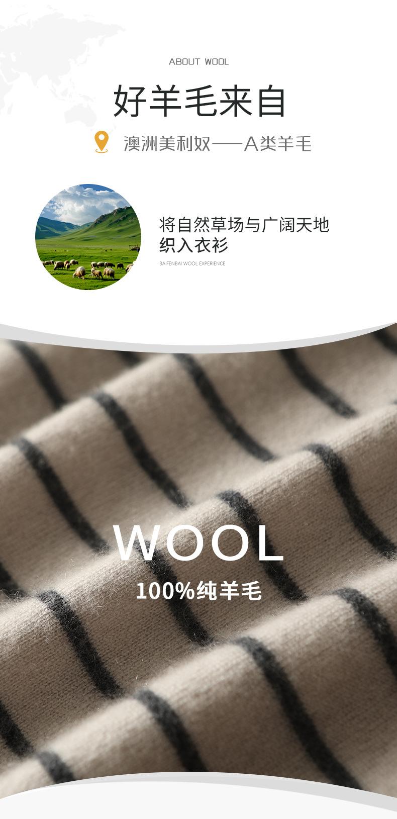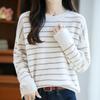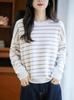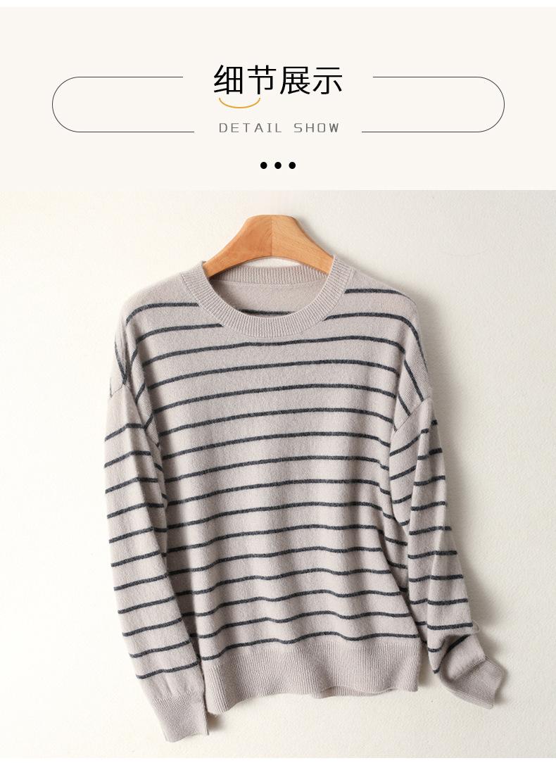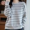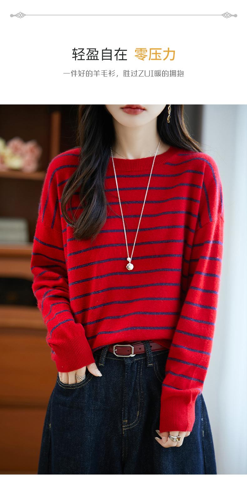 Suéter 100% Lana Pura Estilo Coreano Holgado 2025 Nuevo Cuello Redondo Bloque de Color a Rayas Manga Caída Suéter Básico