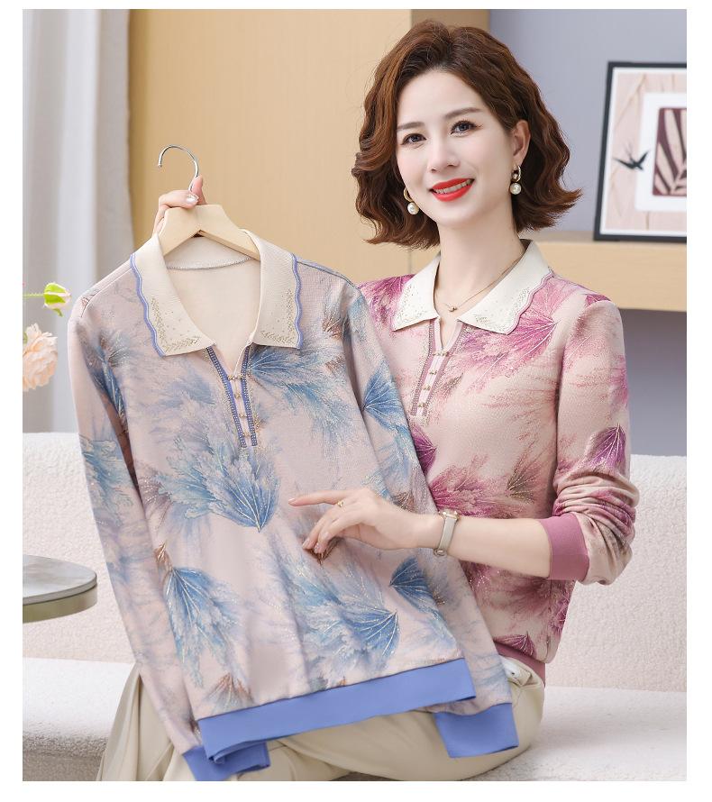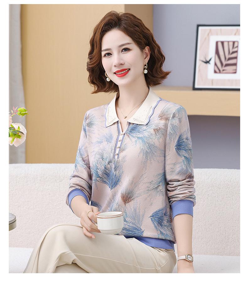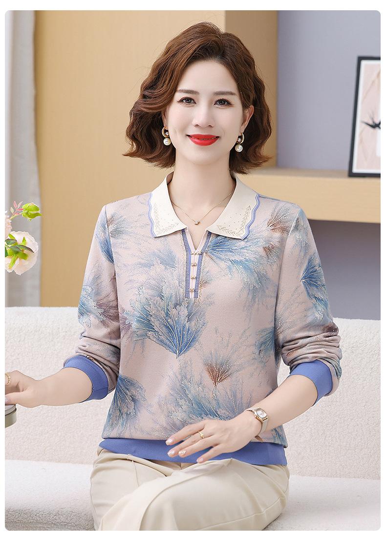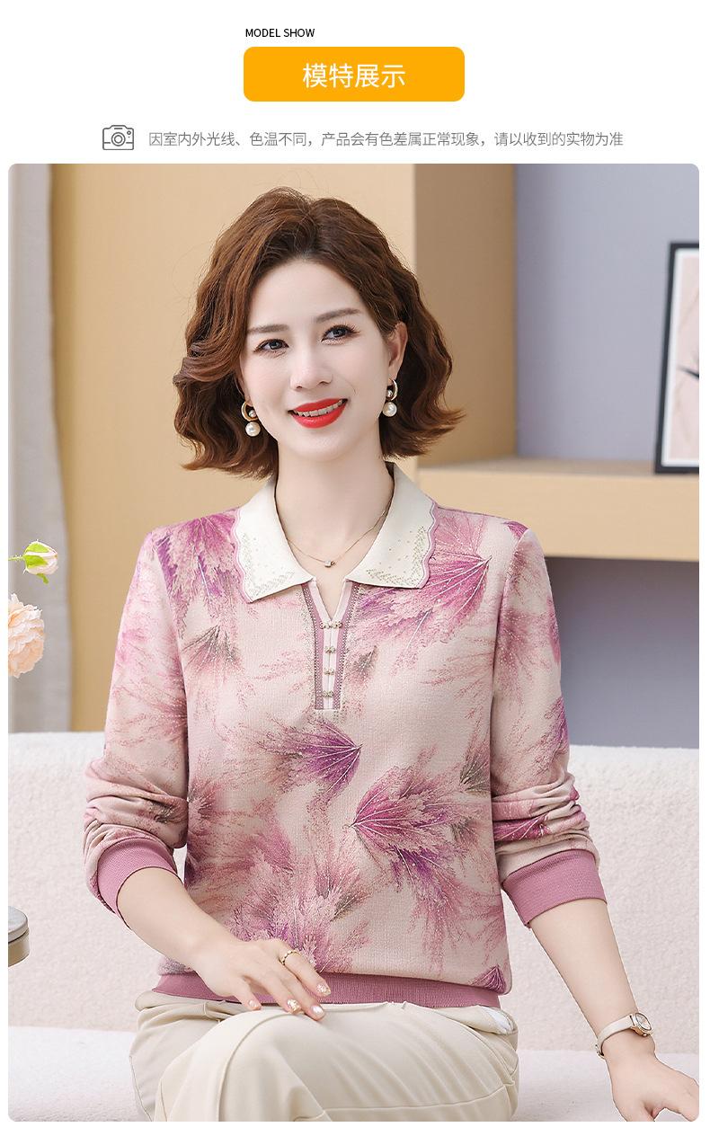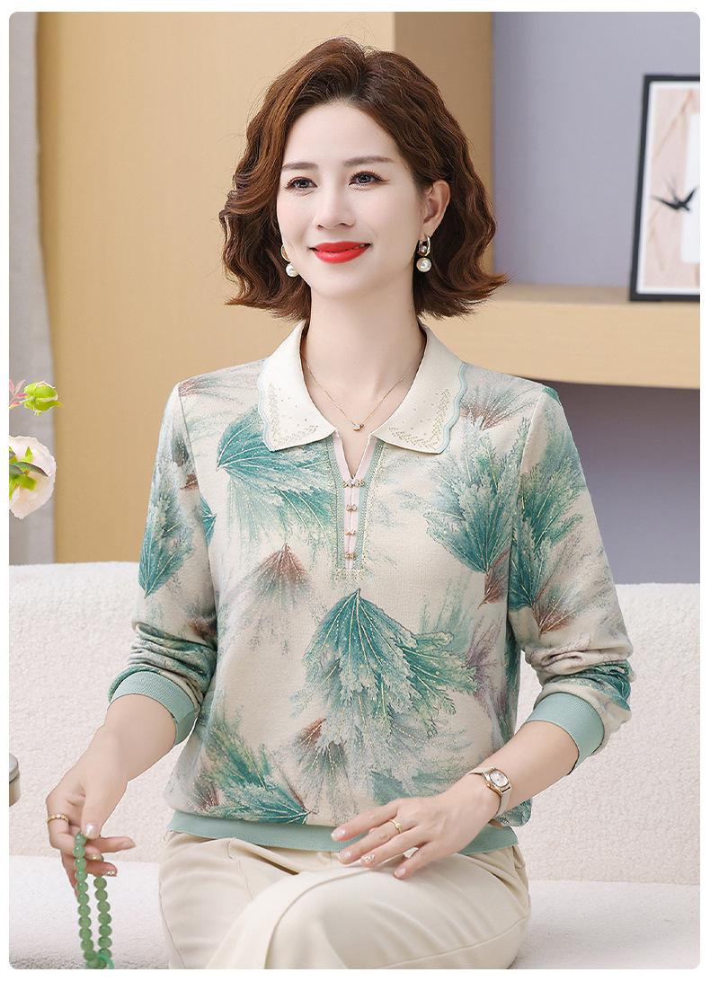 Blusa de Manga Larga con Cuello Vuelto para Mamá Otoño 2025 Nuevo Estilo Dama Rica Camiseta de Manga Larga para Mujeres de Mediana Edad y Mayores Camisa Básica de Otoño