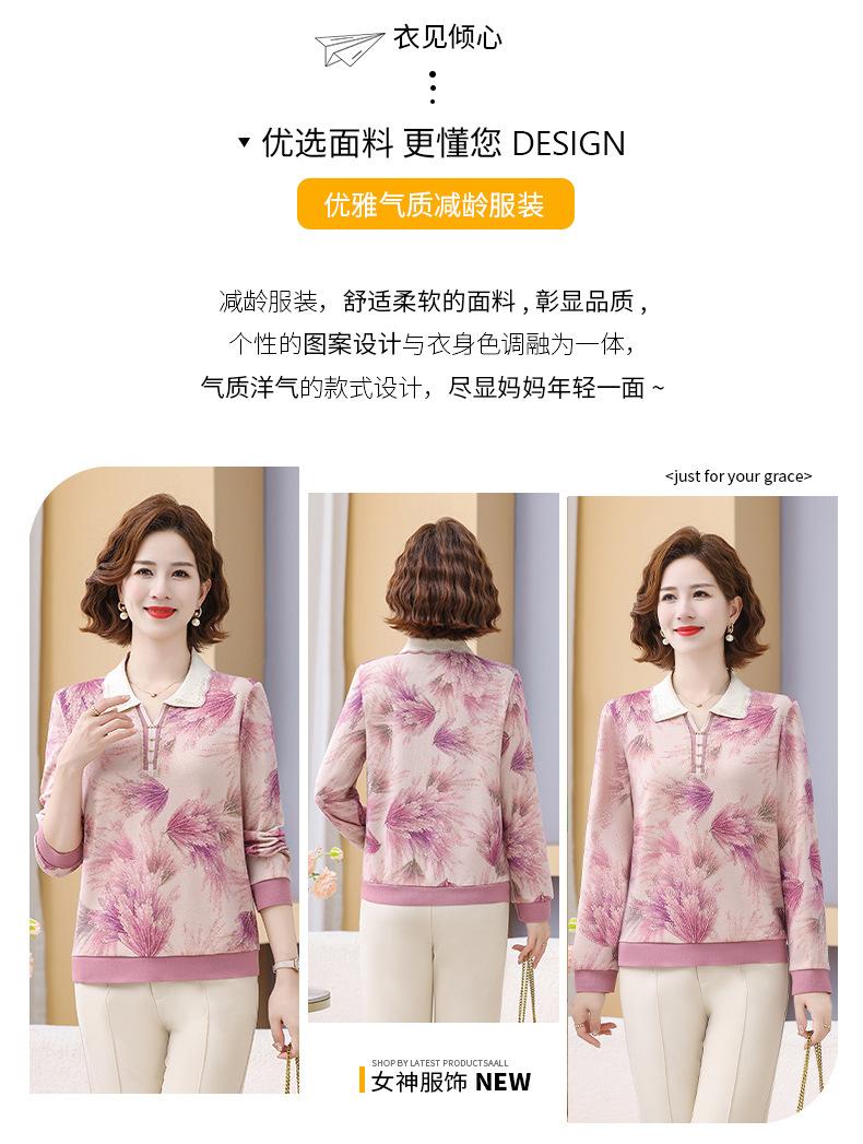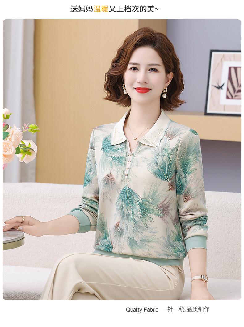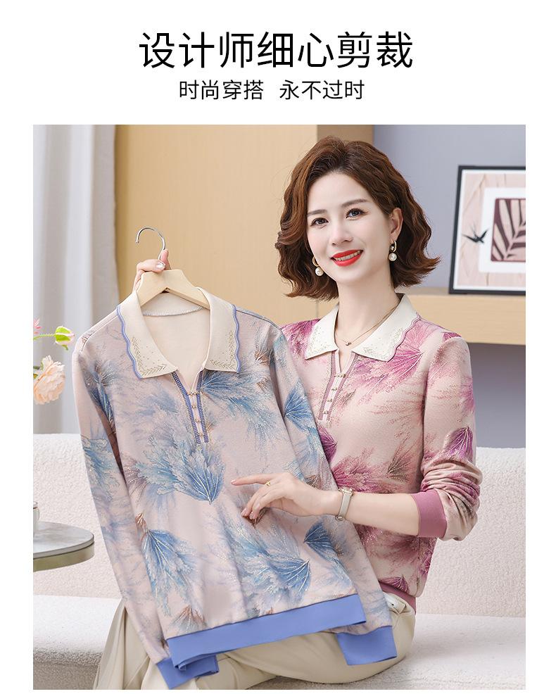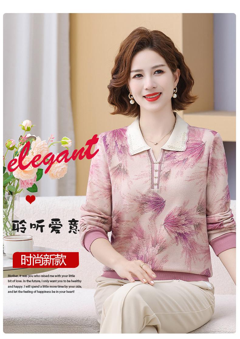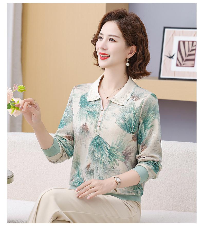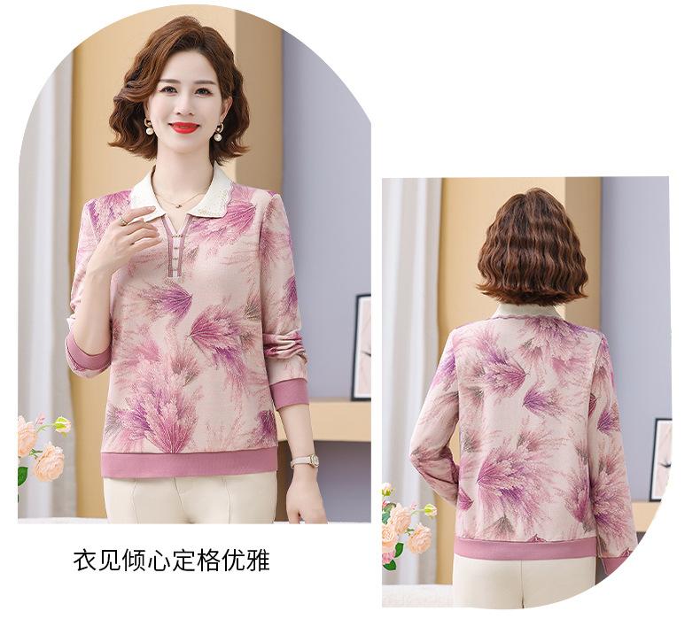 Blusa de Manga Larga con Cuello Vuelto para Mamá Otoño 2025 Nuevo Estilo Dama Rica Camiseta de Manga Larga para Mujeres de Mediana Edad y Mayores Camisa Básica de Otoño
