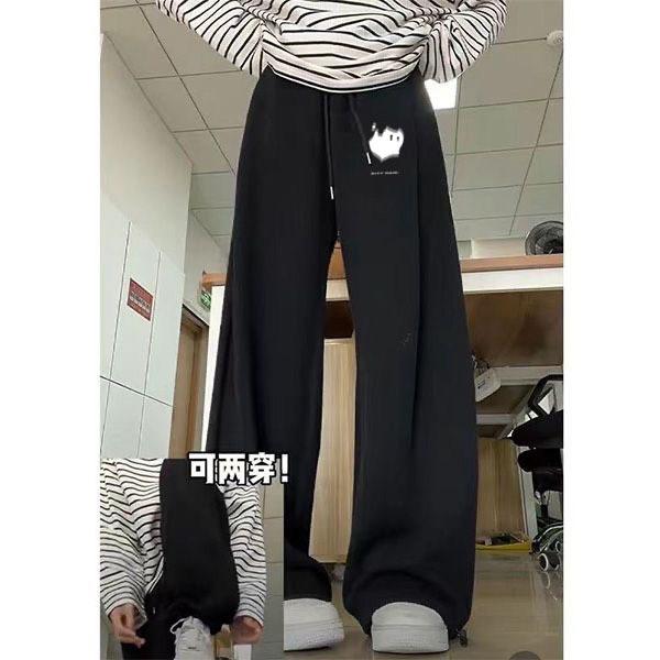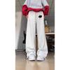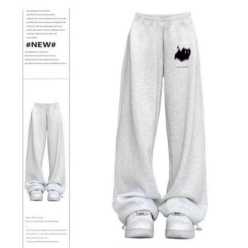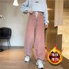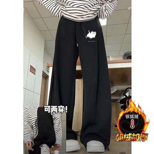 Pantalones Deportivos de Color Sólido Estilo Americano para Mujer Otoño/Invierno con Forro Polar Ajuste Holgado Casual Pantalones de Chándal para Hombre y Mujer Combinan con Todo Rectos de Pierna Ancha