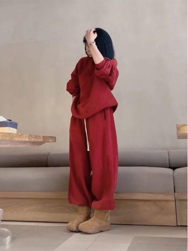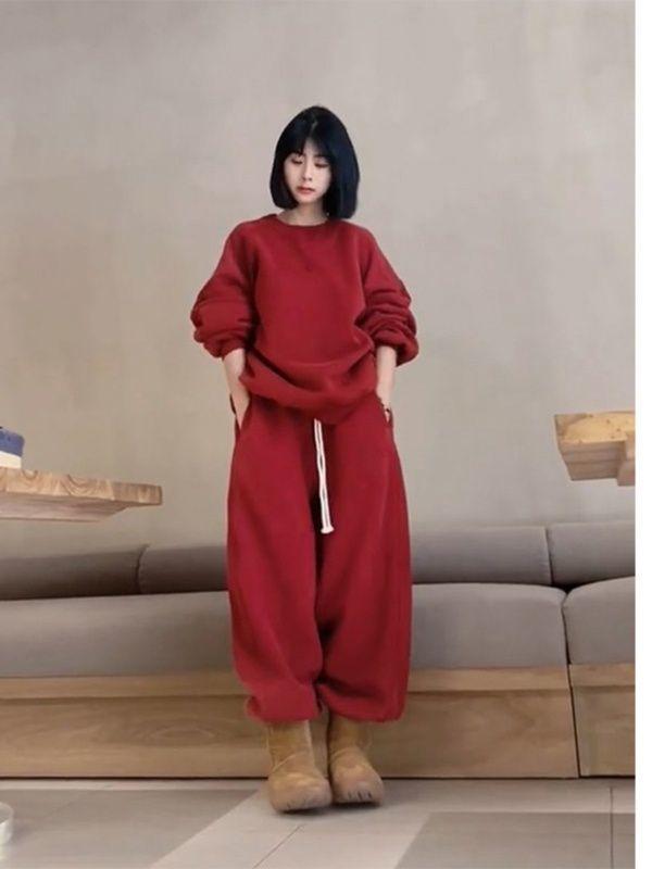 Conjunto Deportivo Casual a Juego de Estilo Nuevo de Primavera y Otoño 2025 para Mujer, Pantalón Harem Grueso de Moda, Sudadera Holgada de Dos Piezas