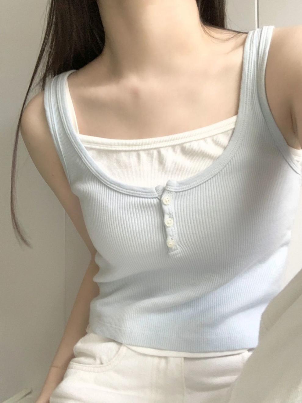 Gran Venta Dulce Estilo Japonés Color Puro Chaleco Tirantes para Mujer Verano Diseño Slim Ropa Interior Top sin Mangas