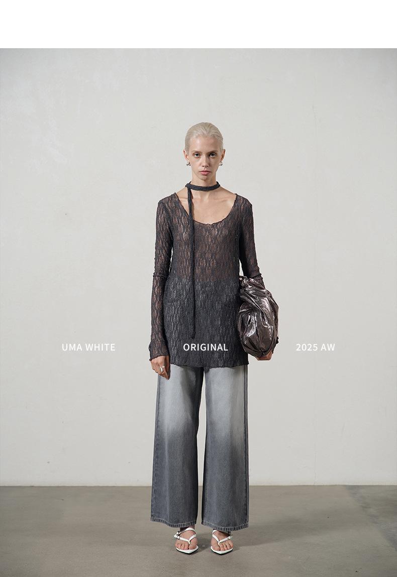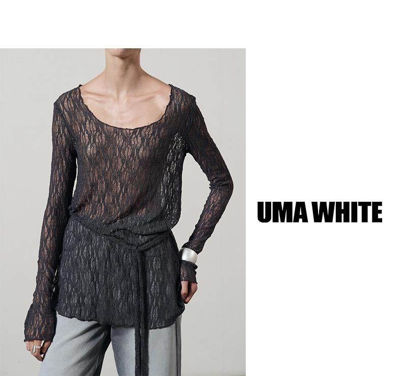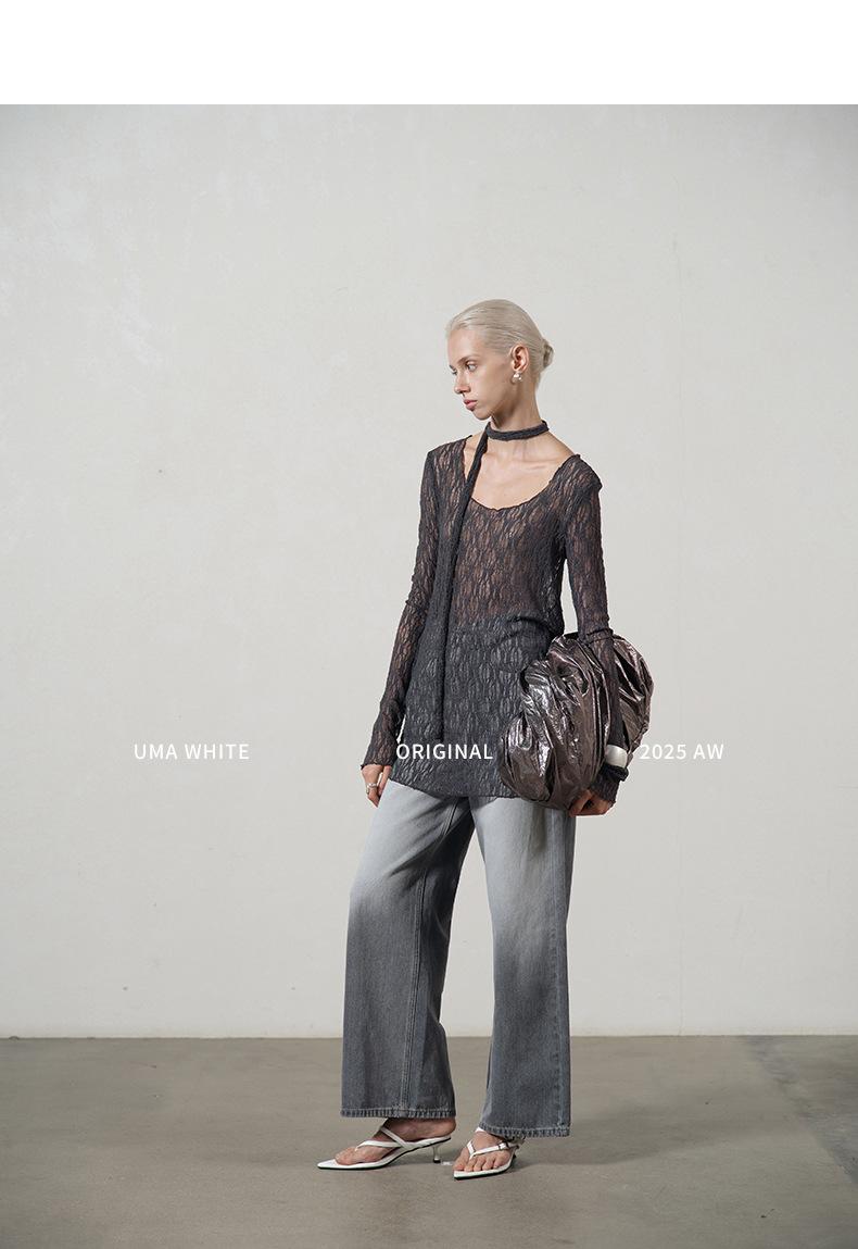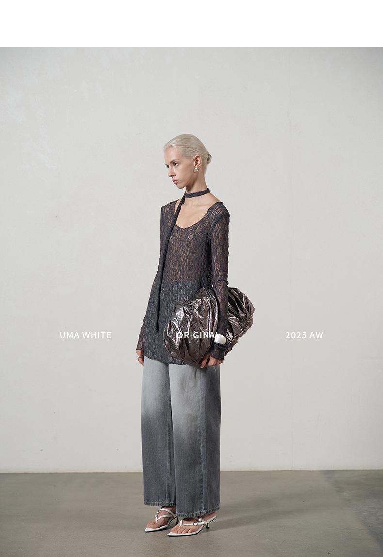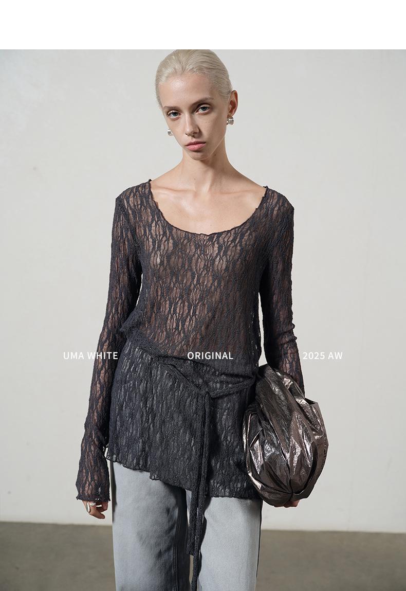 UMA WHITEGuangzhou Shisanhang Rundeng 2025 Otoño Nuevo Camiseta de Mujer Cuello U Calada Manga Larga Top Capa Base
