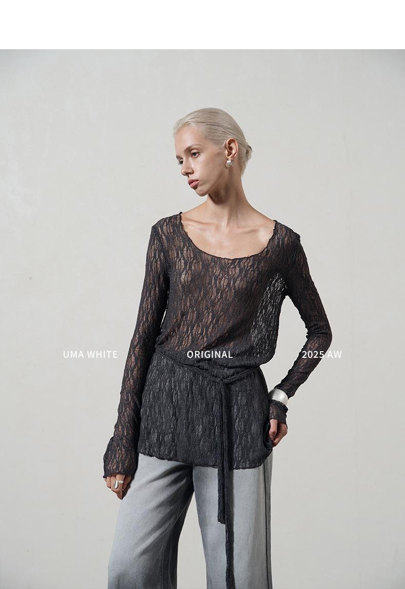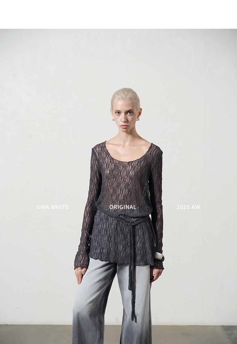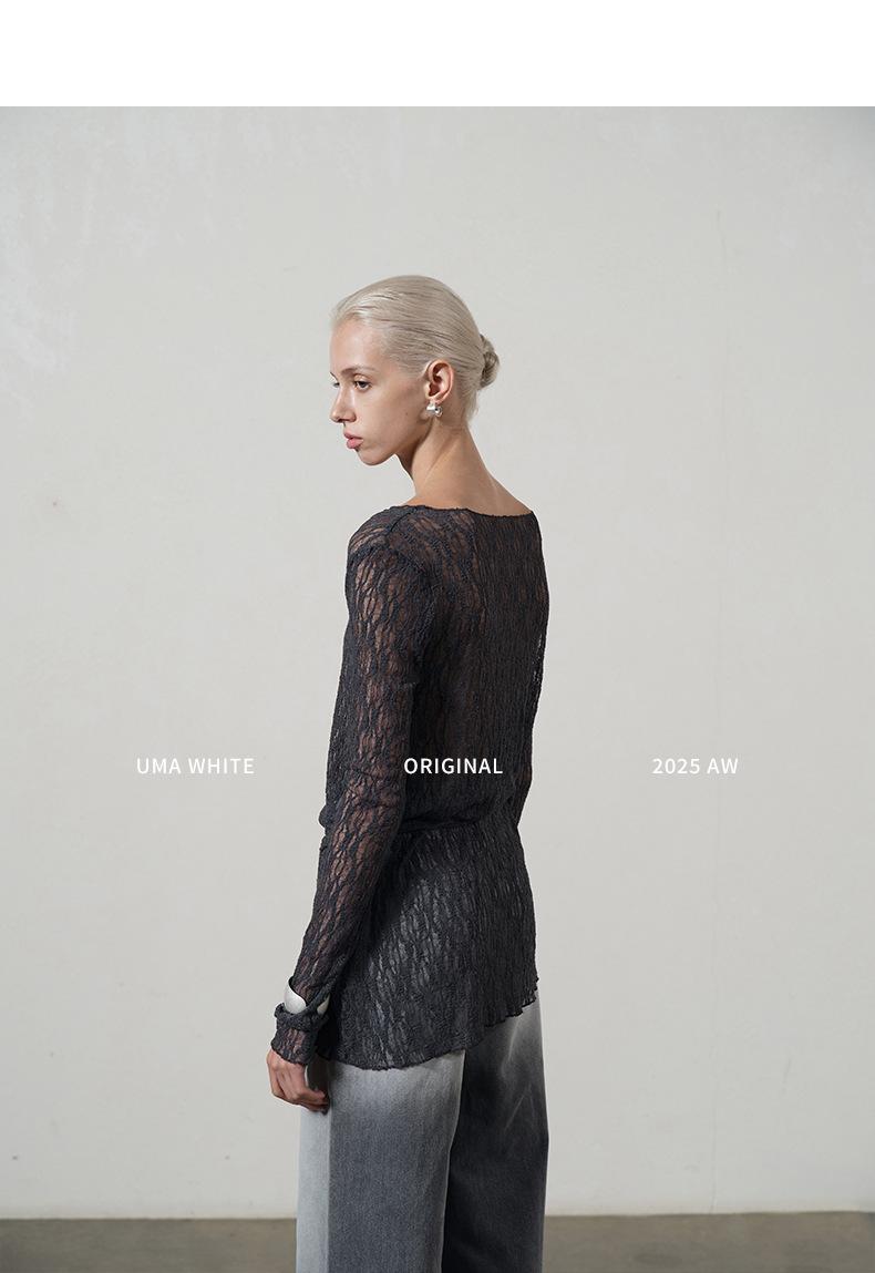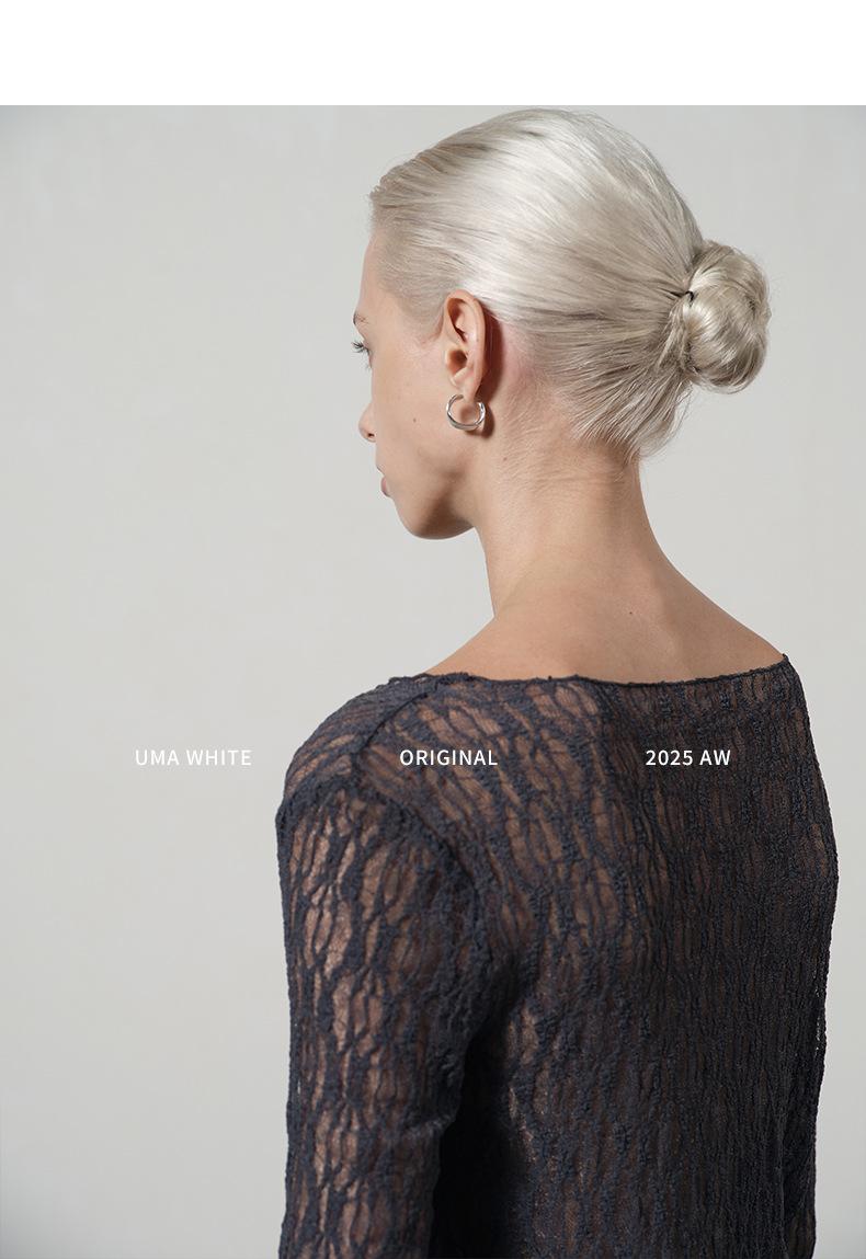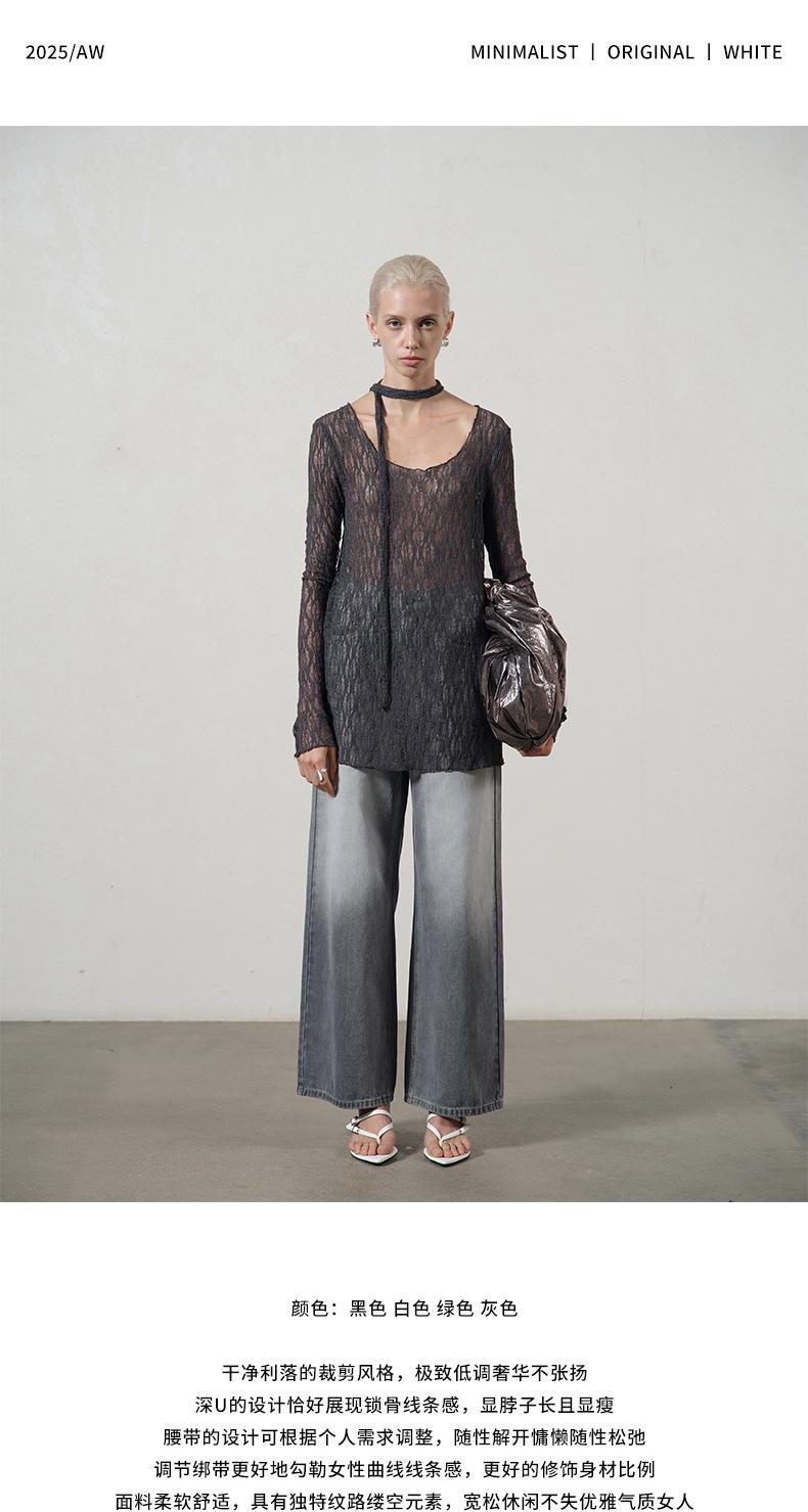 UMA WHITEGuangzhou Shisanhang Rundeng 2025 Otoño Nuevo Camiseta de Mujer Cuello U Calada Manga Larga Top Capa Base