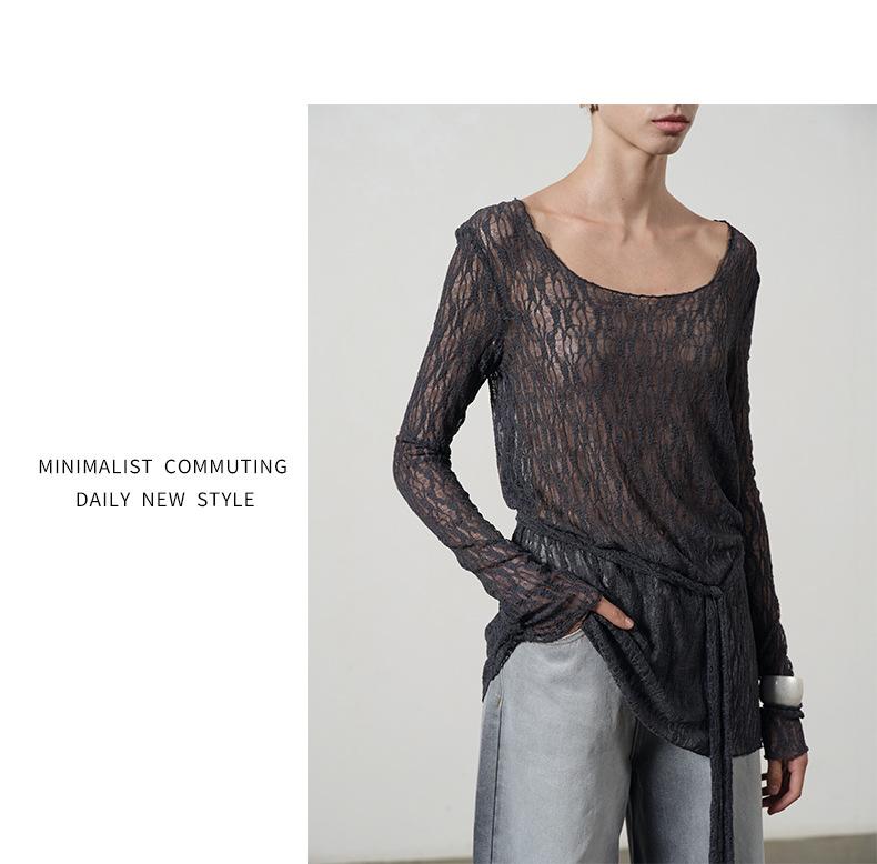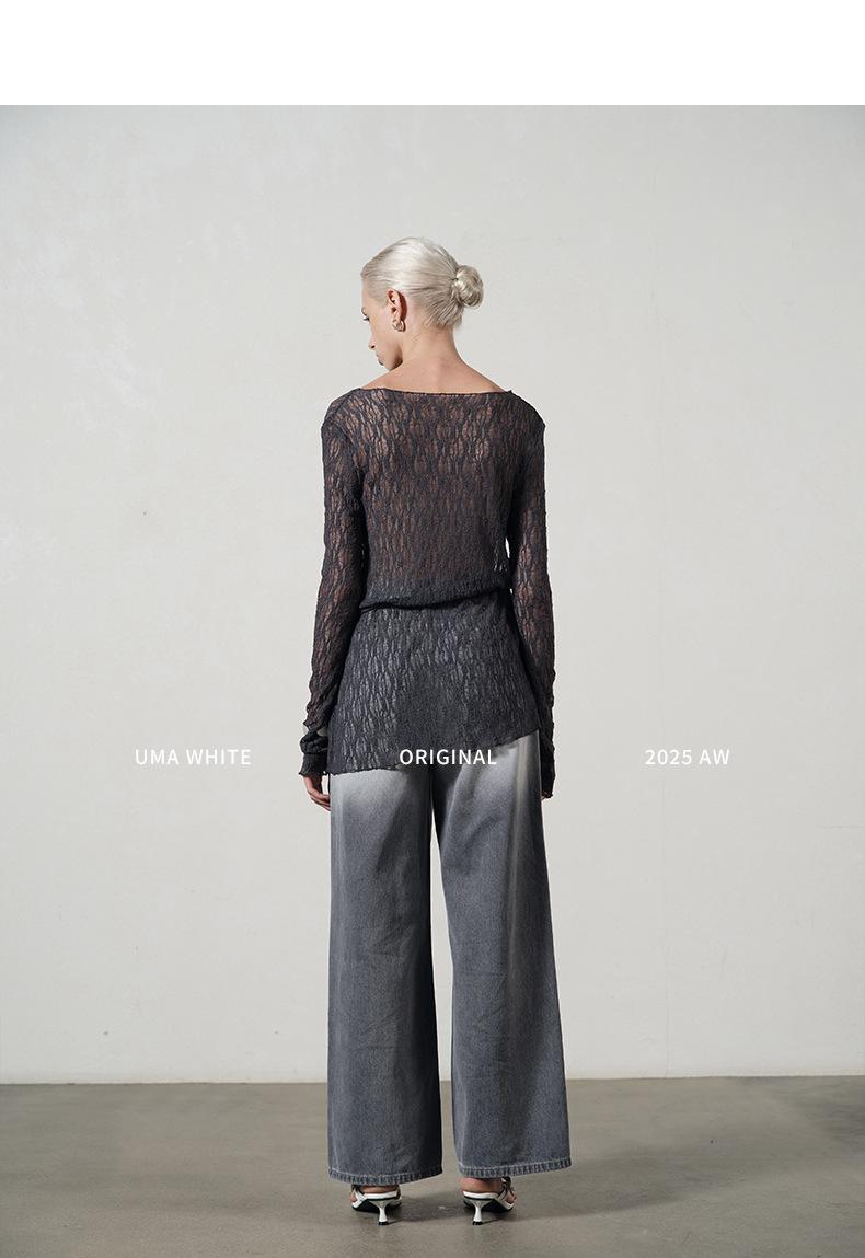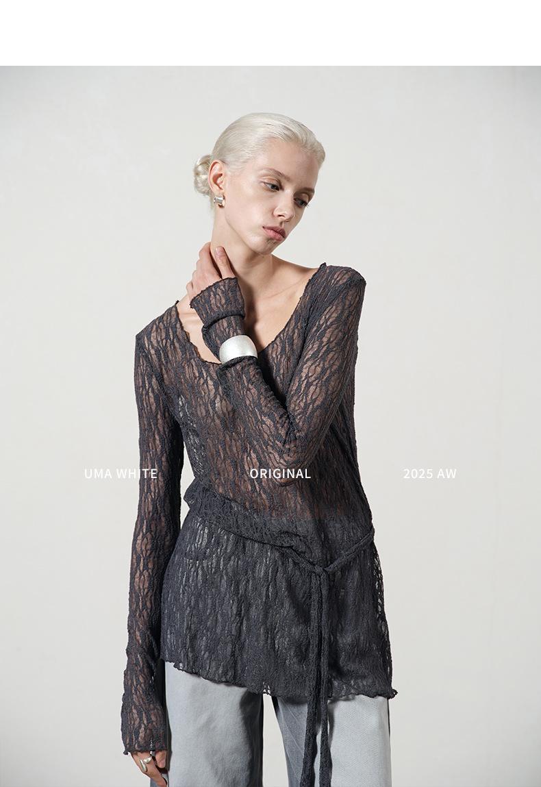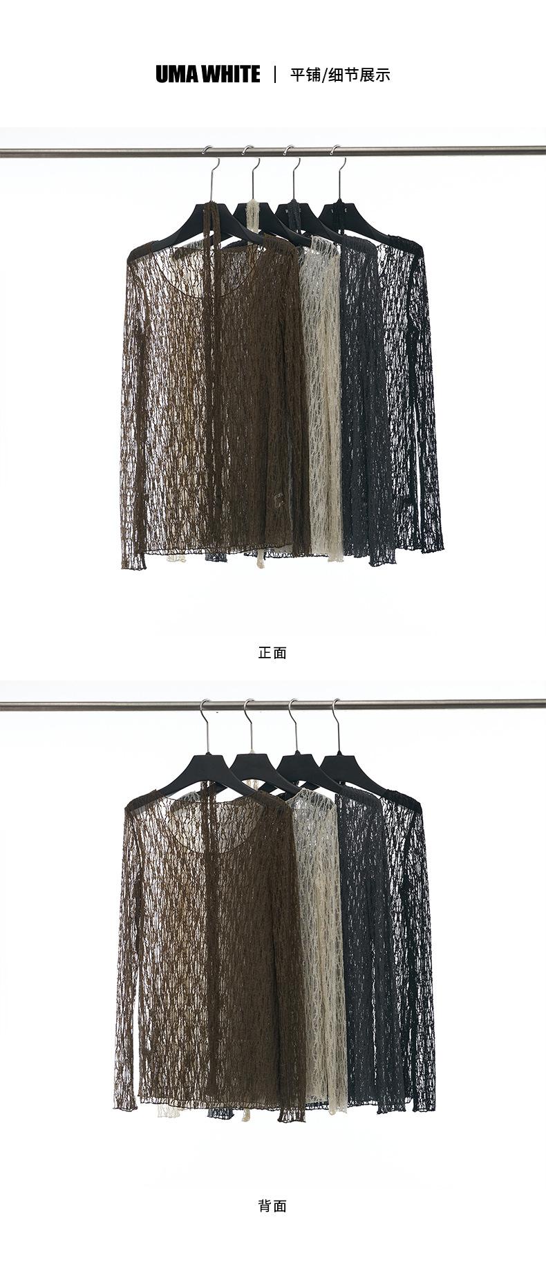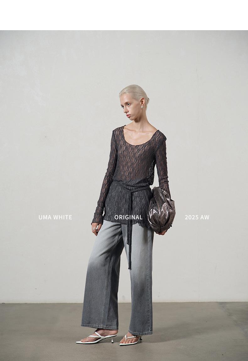 UMA WHITEGuangzhou Shisanhang Rundeng 2025 Otoño Nuevo Camiseta de Mujer Cuello U Calada Manga Larga Top Capa Base