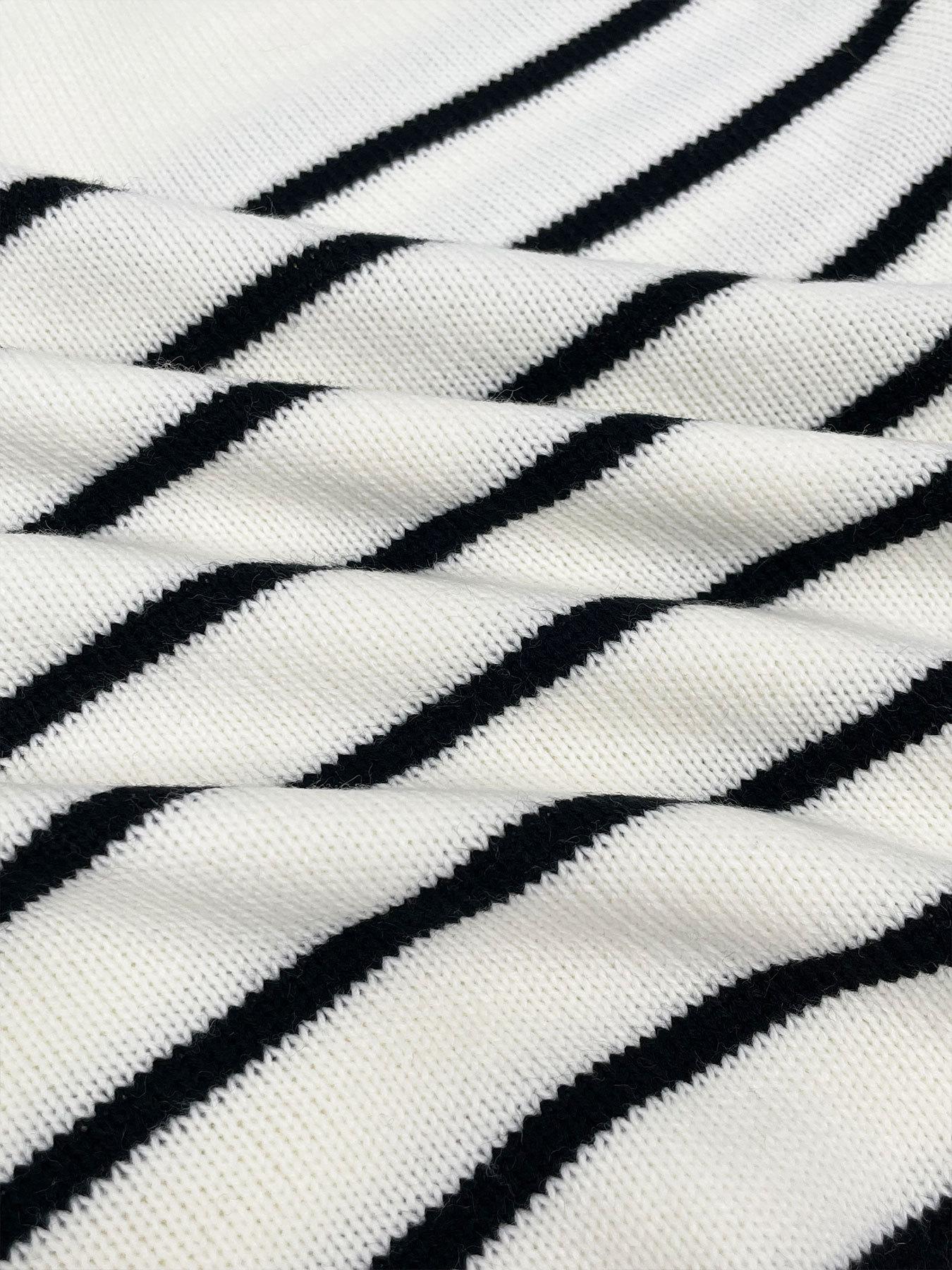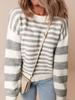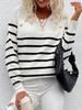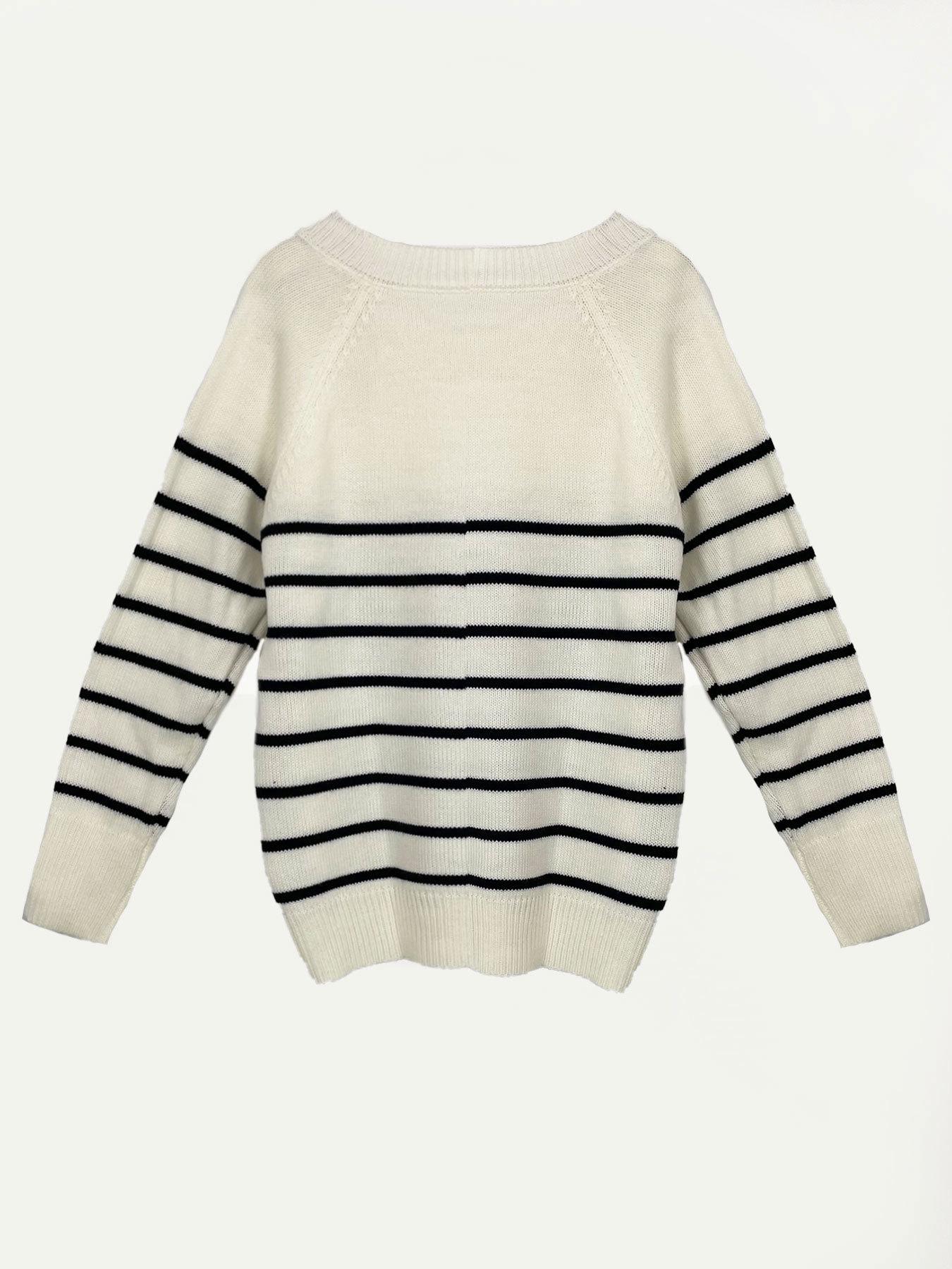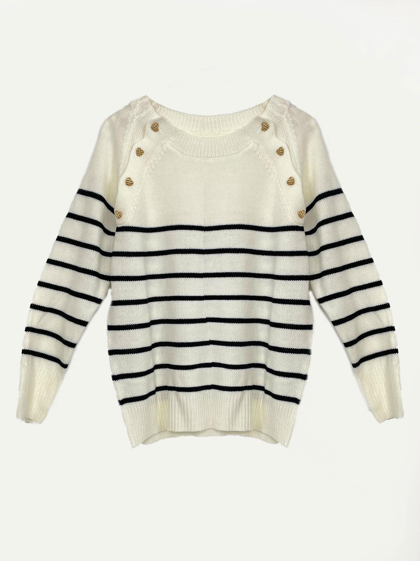 Suéter Pulóver Casual Versátil Estilo Europeo y Americano Nuevo de Punto con Contraste a Rayas Suelto con Botón de Corazón para Mujer Otoño e Invierno 2025