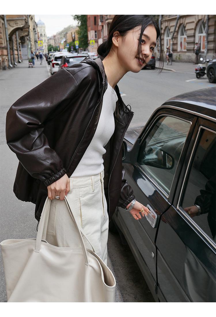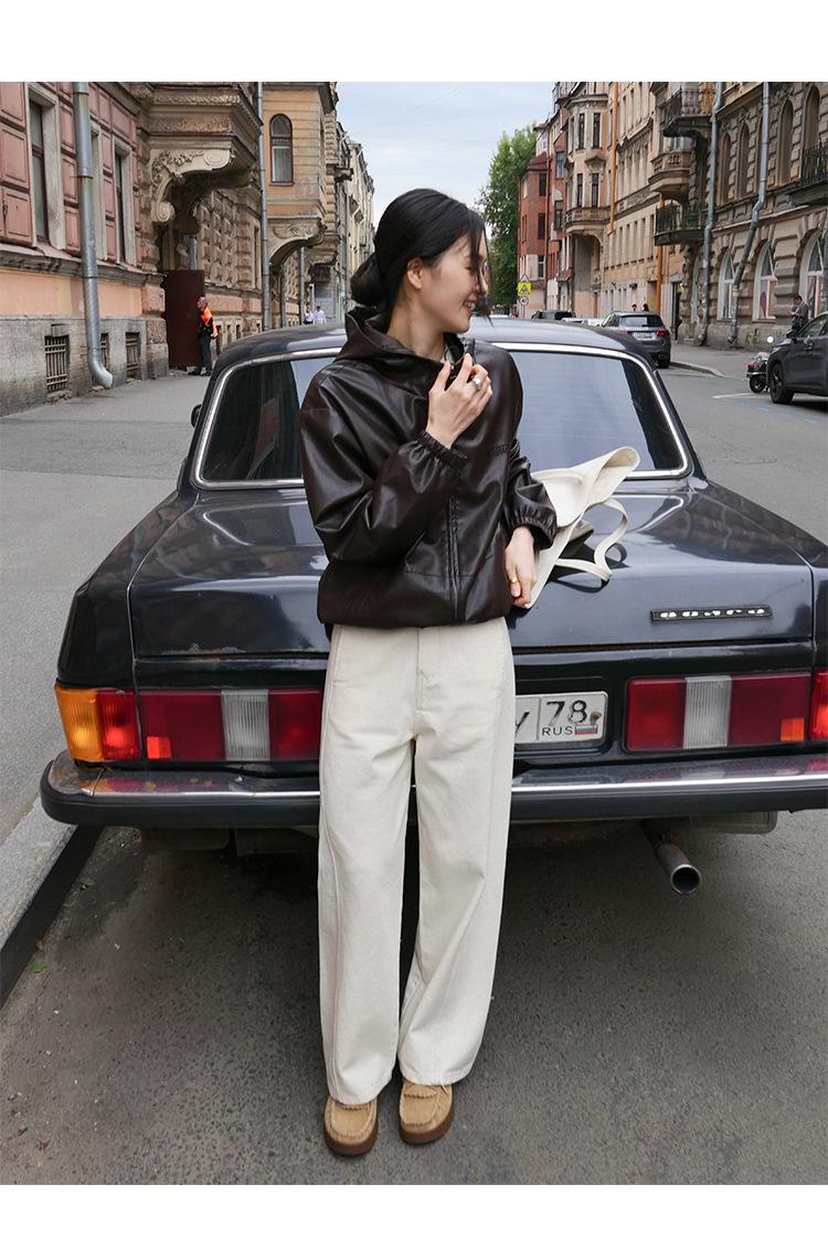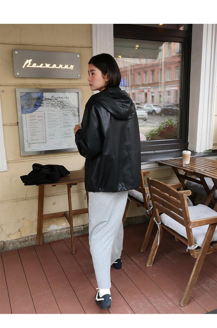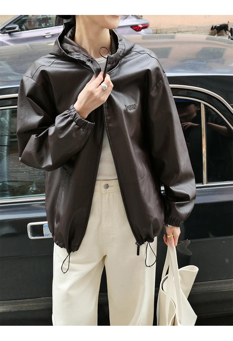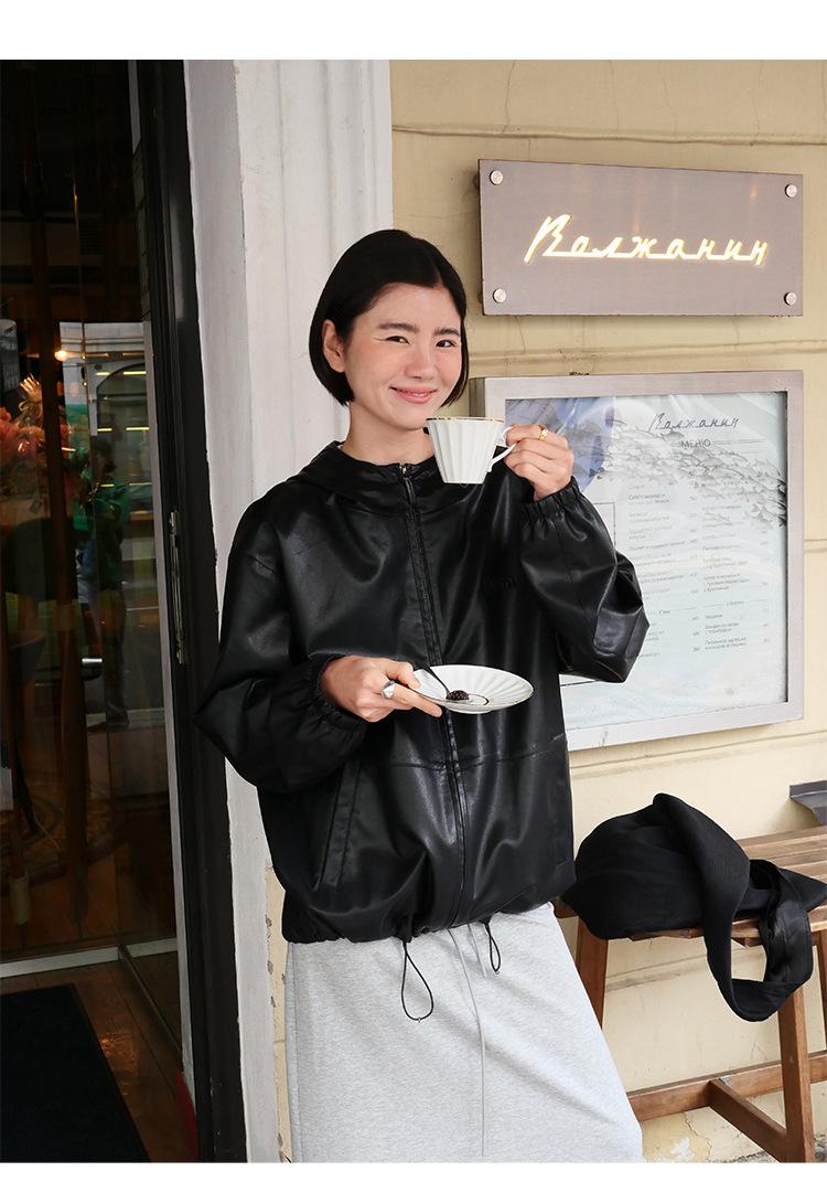 Shi Jian Hyde Diary Chaqueta Casual de Cuero con Capucha estilo miu Silueta Holgada Abrigo Transpirable Cómodo Tendencia 01278