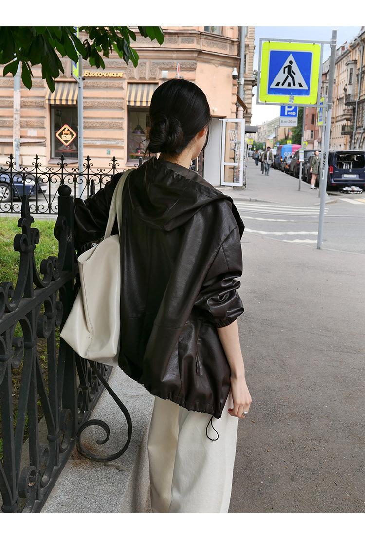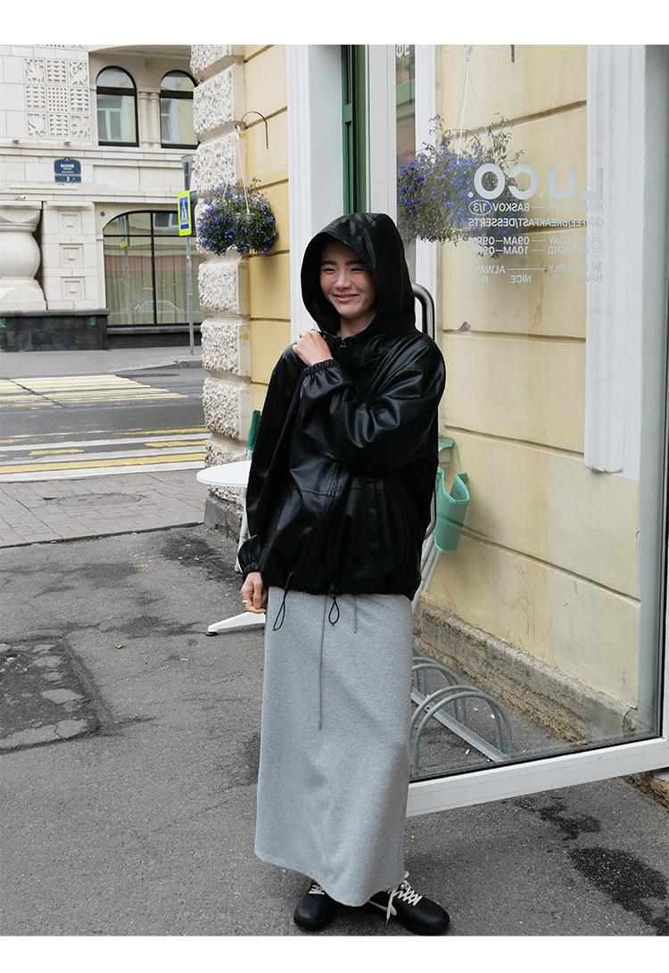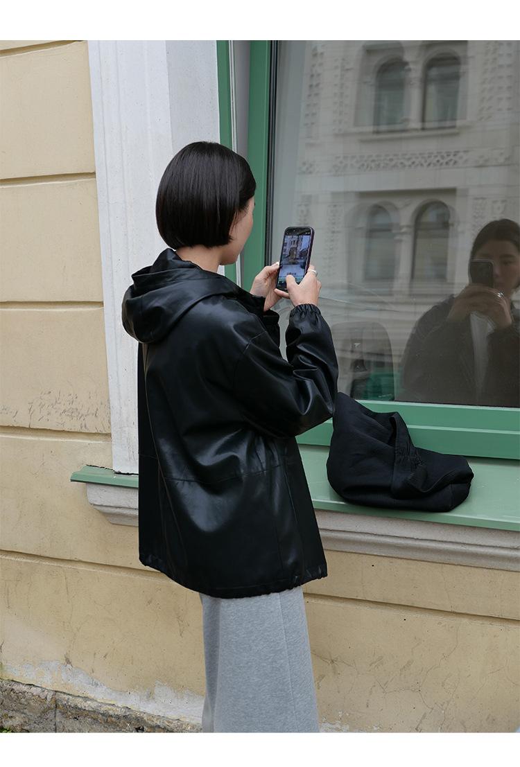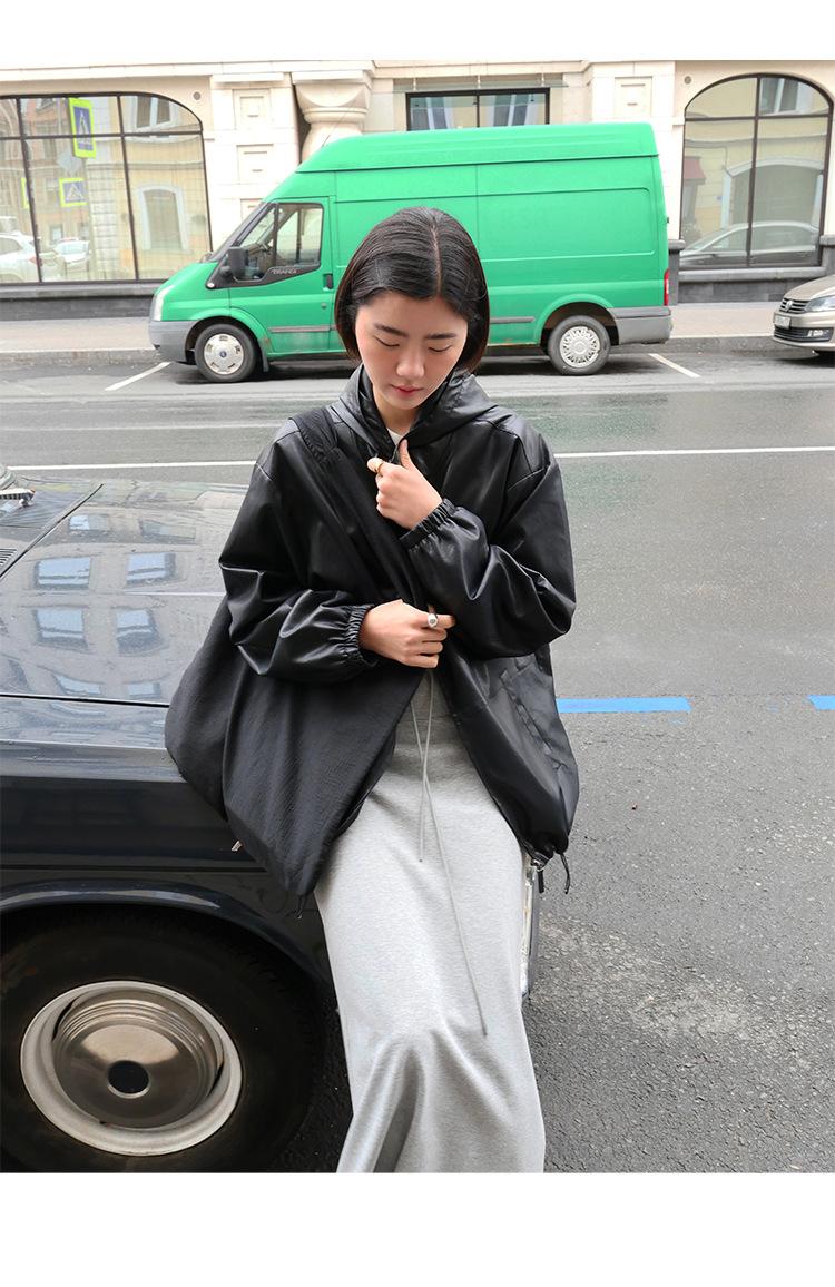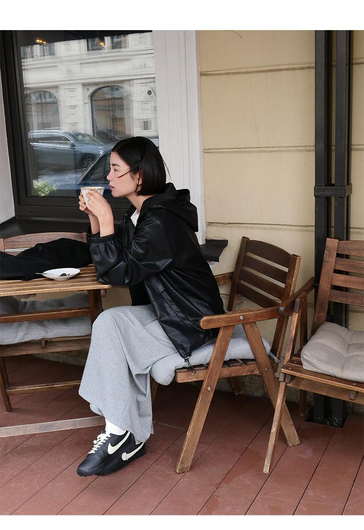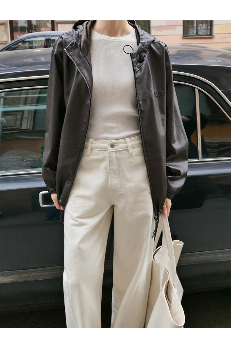 Shi Jian Hyde Diary Chaqueta Casual de Cuero con Capucha estilo miu Silueta Holgada Abrigo Transpirable Cómodo Tendencia 01278