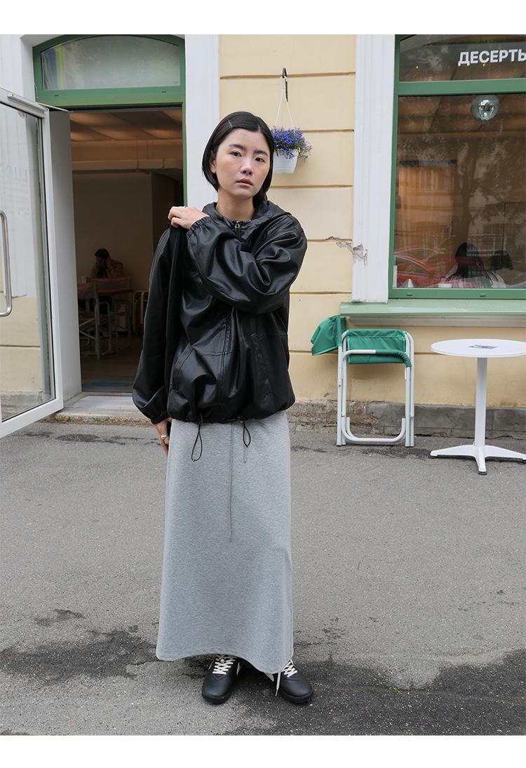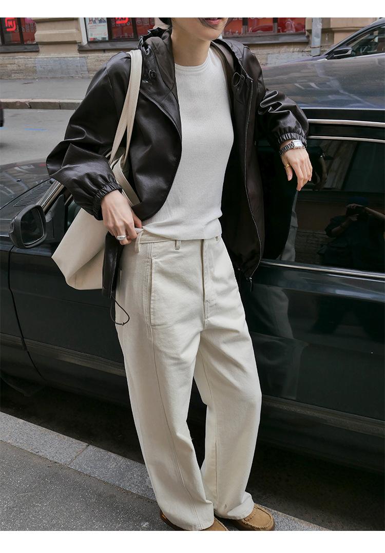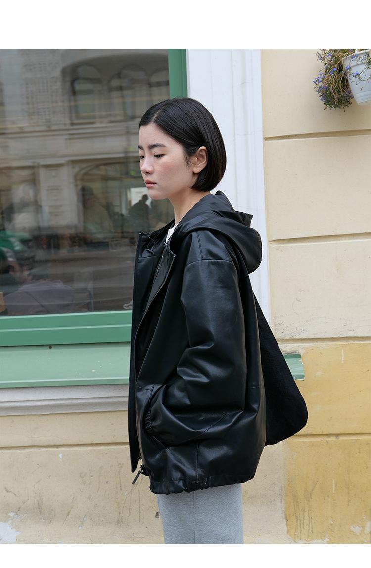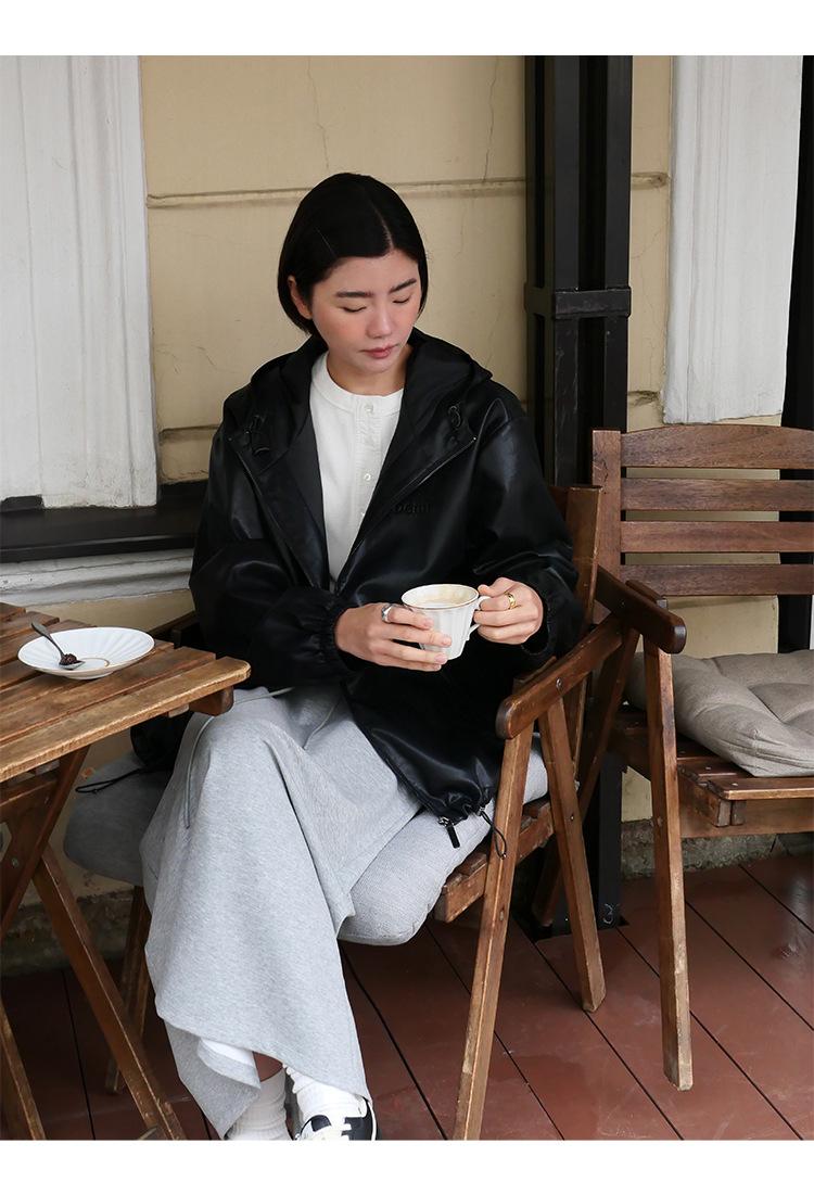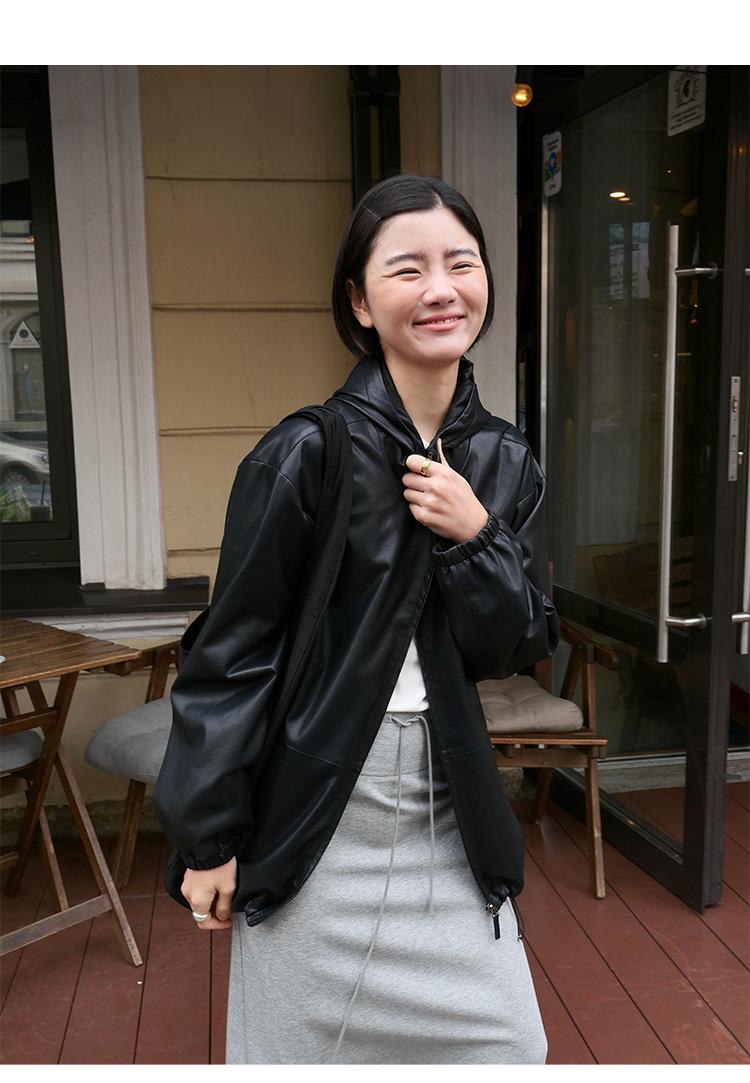 Shi Jian Hyde Diary Chaqueta Casual de Cuero con Capucha estilo miu Silueta Holgada Abrigo Transpirable Cómodo Tendencia 01278