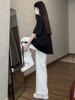 Pantalones de Chándal a Rayas Mujer 2025 Nuevo Primavera y Otoño Petite Holgado Casual Perezoso Blanco Gris Deporte Recto Pierna Ancha