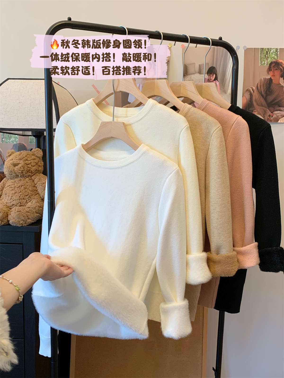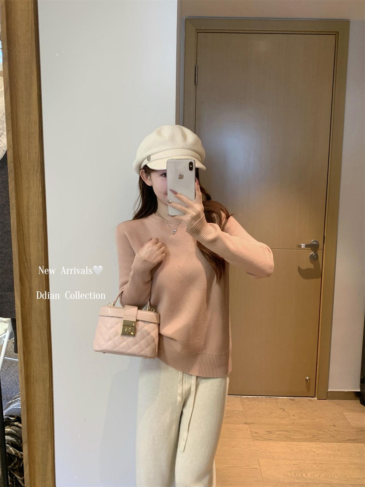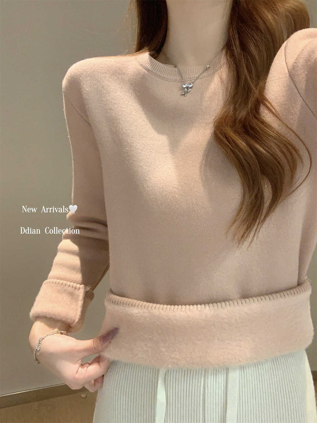 Camiseta Base Coreana de Punto de Color Sólido para Mujer Otoño e Invierno 2024 Gruesa de Una Pieza de Terciopelo Cálida Interior Suéter Suave y Ceroso