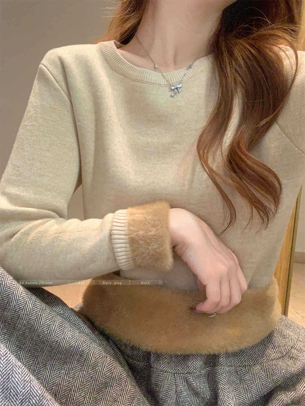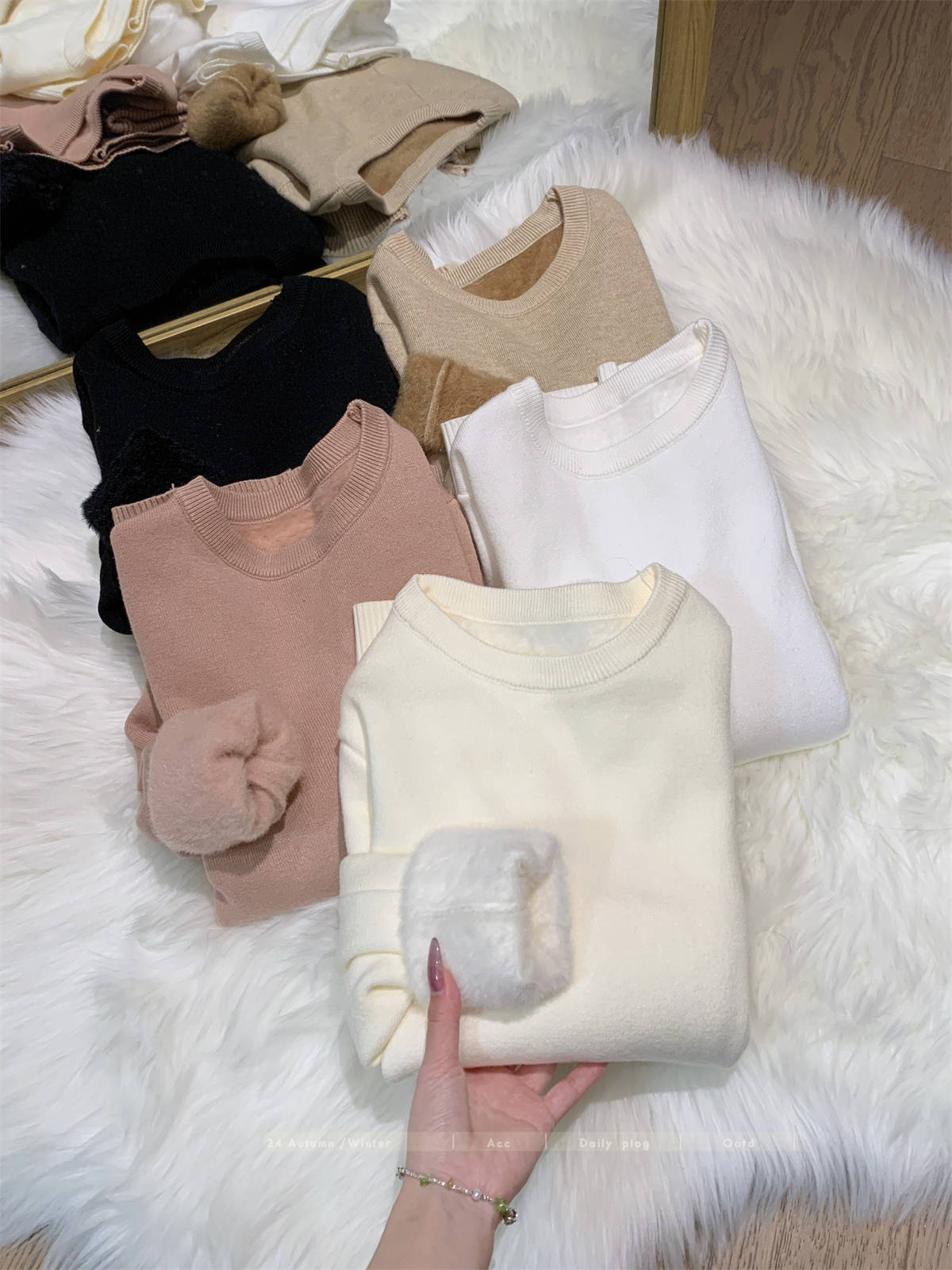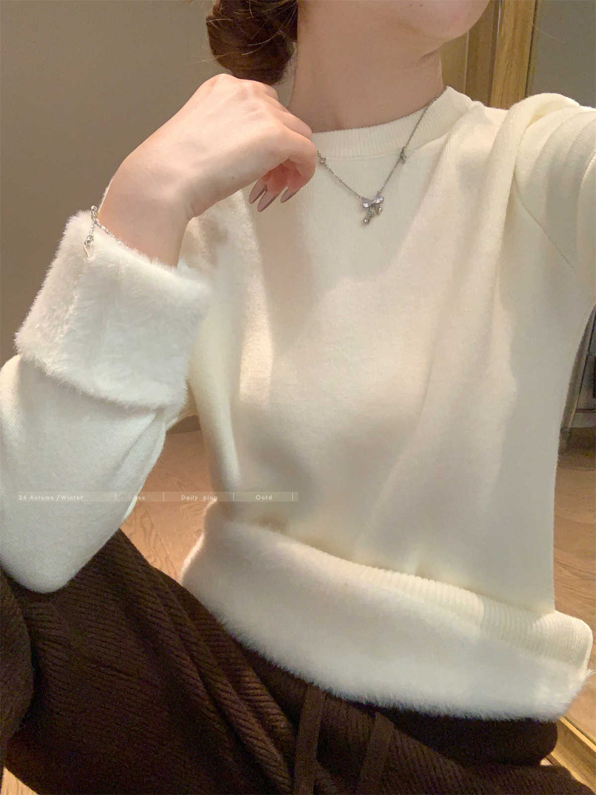 Camiseta Base Coreana de Punto de Color Sólido para Mujer Otoño e Invierno 2024 Gruesa de Una Pieza de Terciopelo Cálida Interior Suéter Suave y Ceroso
