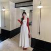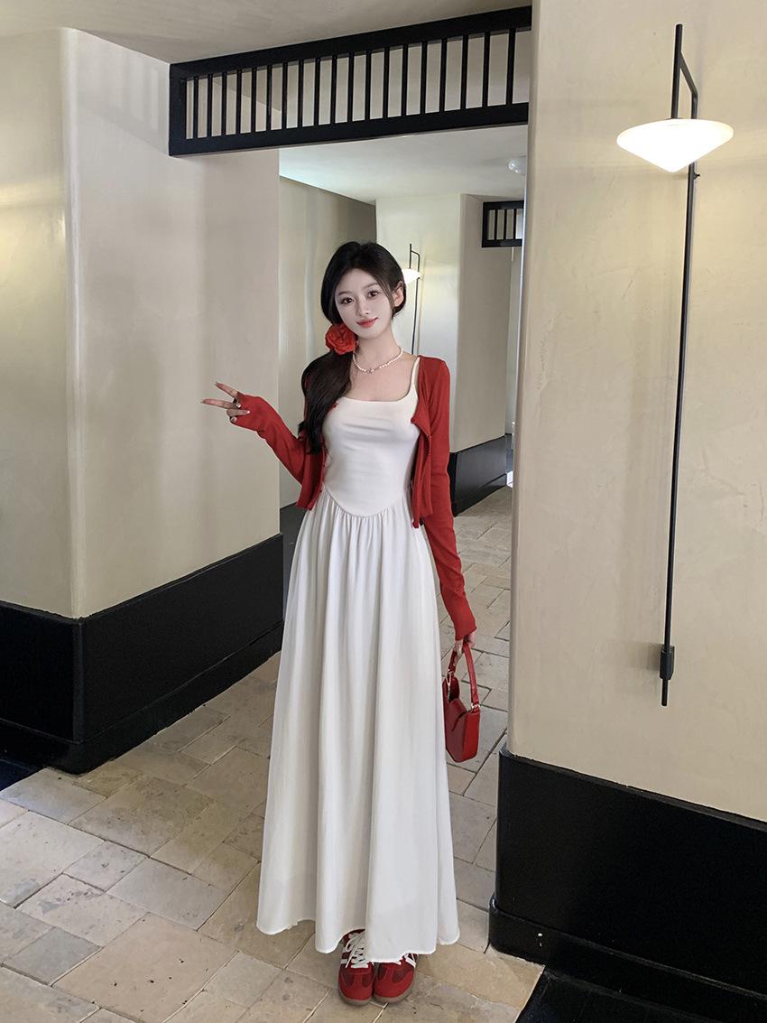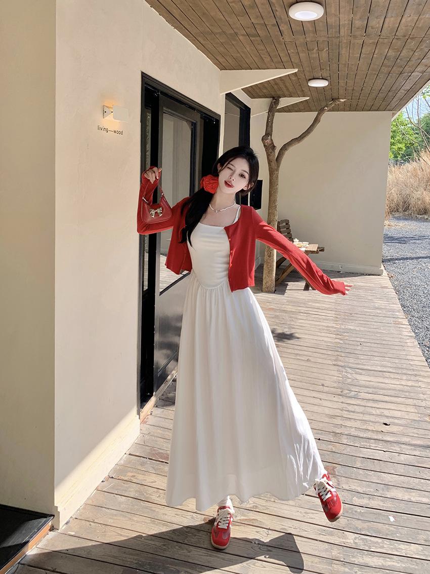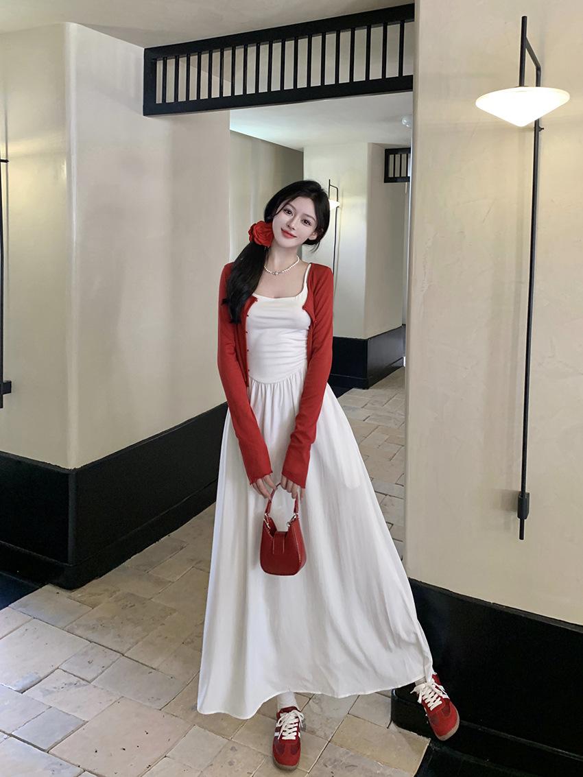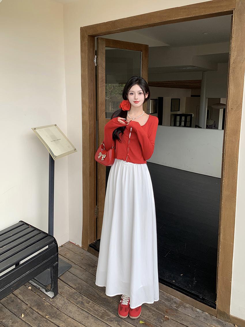 White suspender skirt [single piece], Red Cardigan [Single Piece]