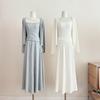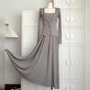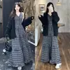 Conjunto de Vestido de Talla Grande 2025 Otoño Nuevo MM Gordo Adelgazante Vestido Camisola + Cárdigan de Punto Conjunto de Dos Piezas