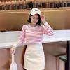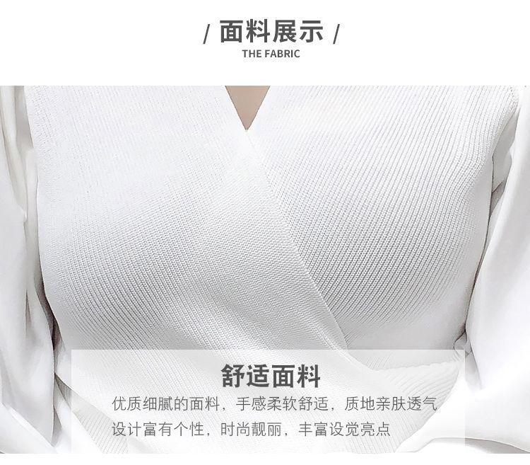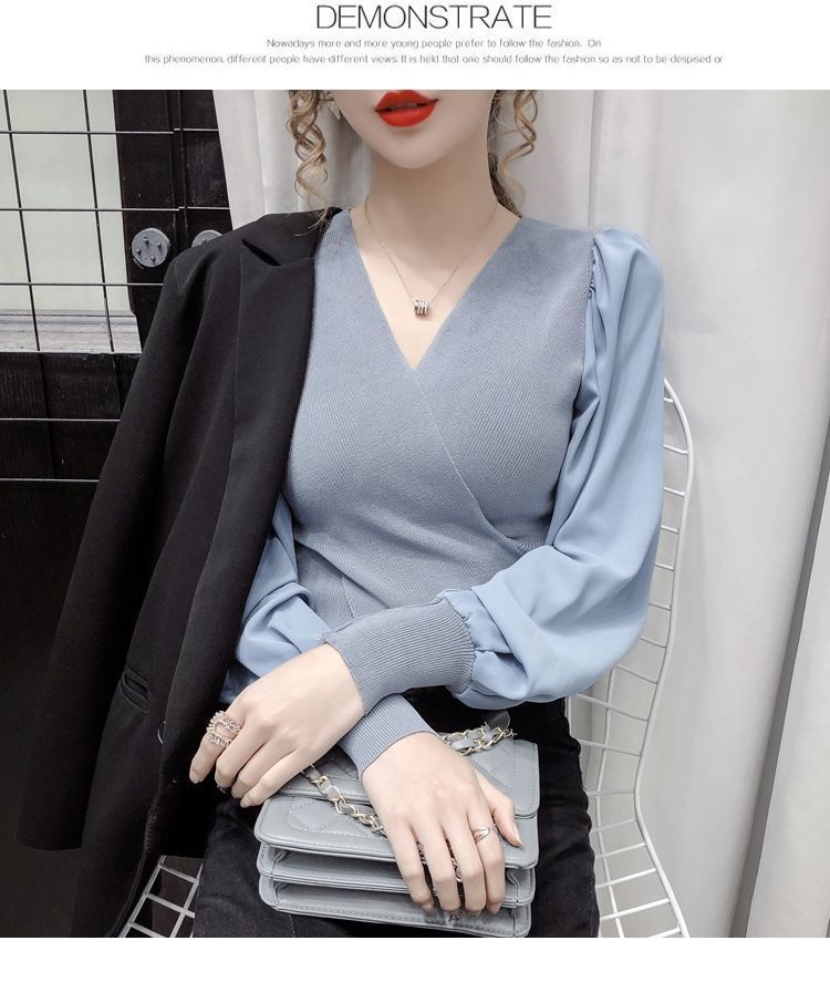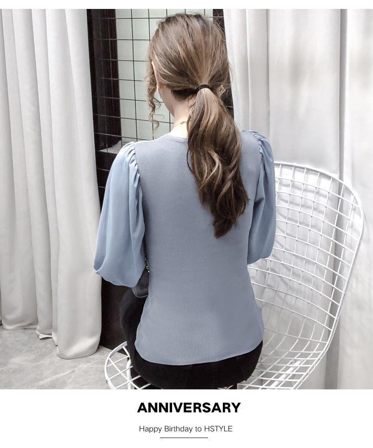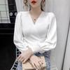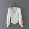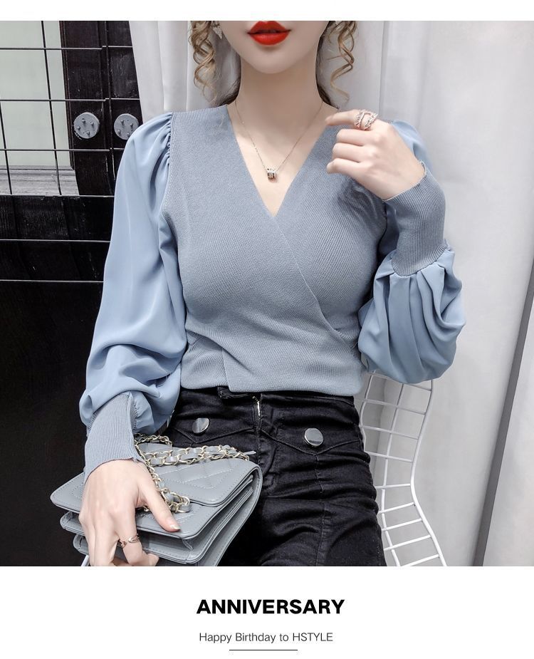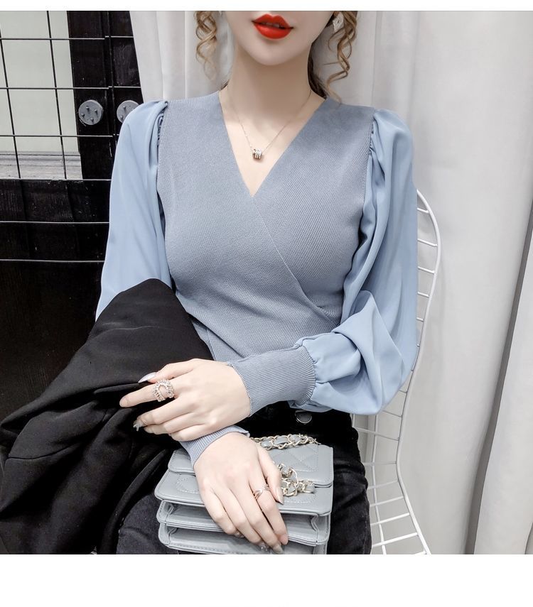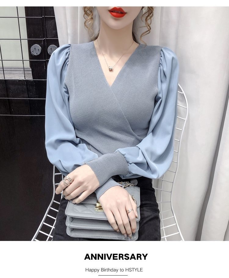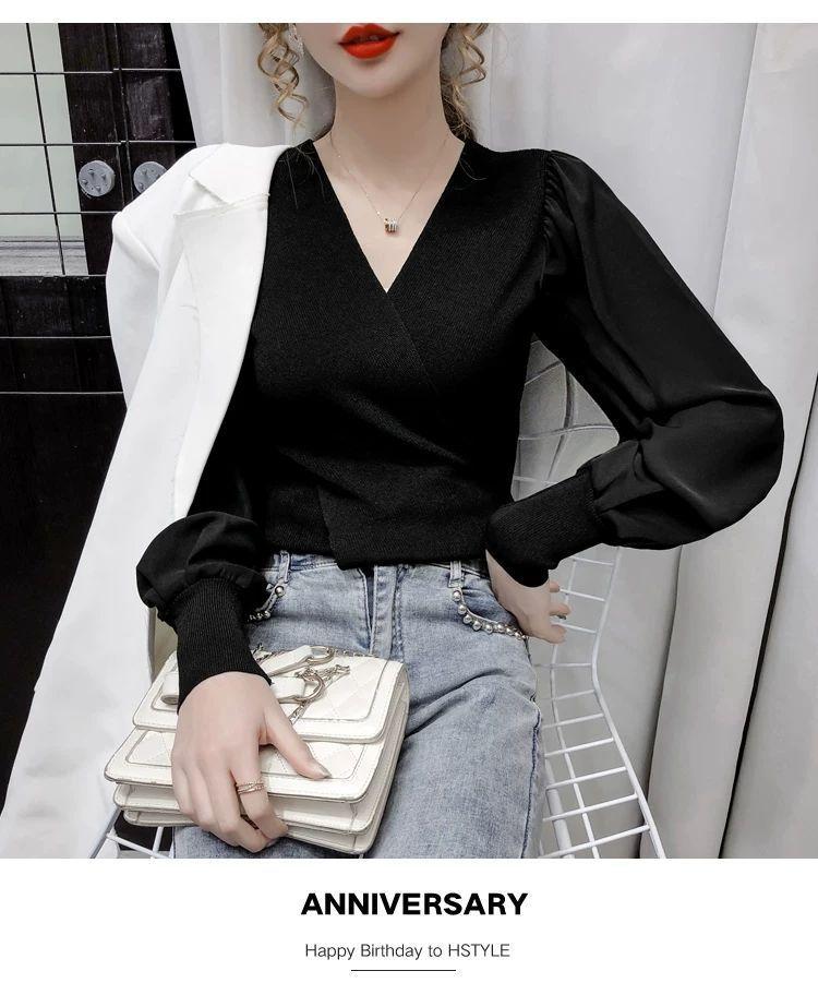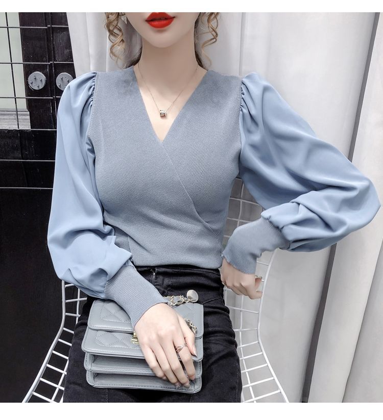 Camiseta básica de punto para mujer otoño e invierno ropa interior ropa de otoño 2025 nueva delgada cuello en V manga abullonada top de chifón camiseta de manga larga