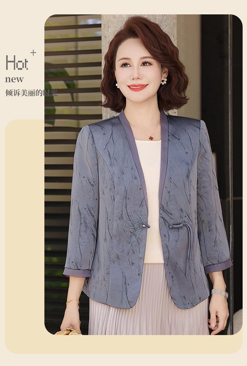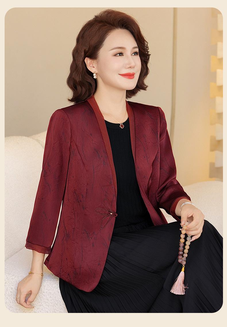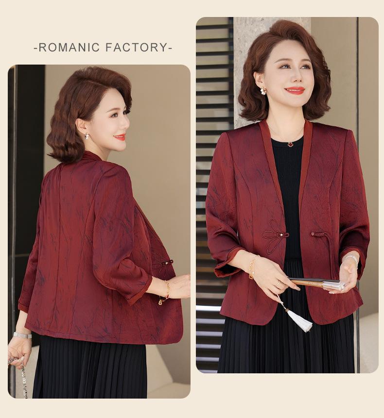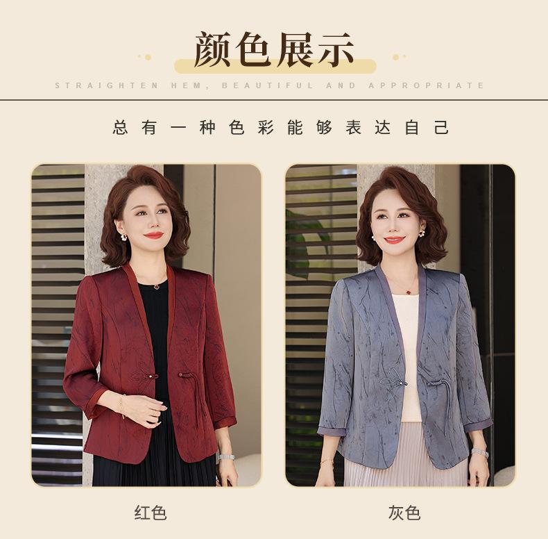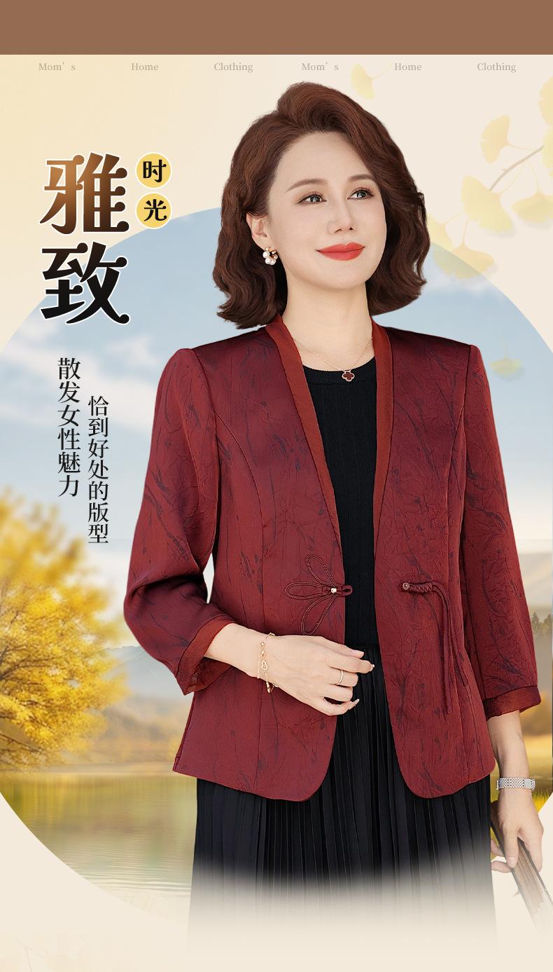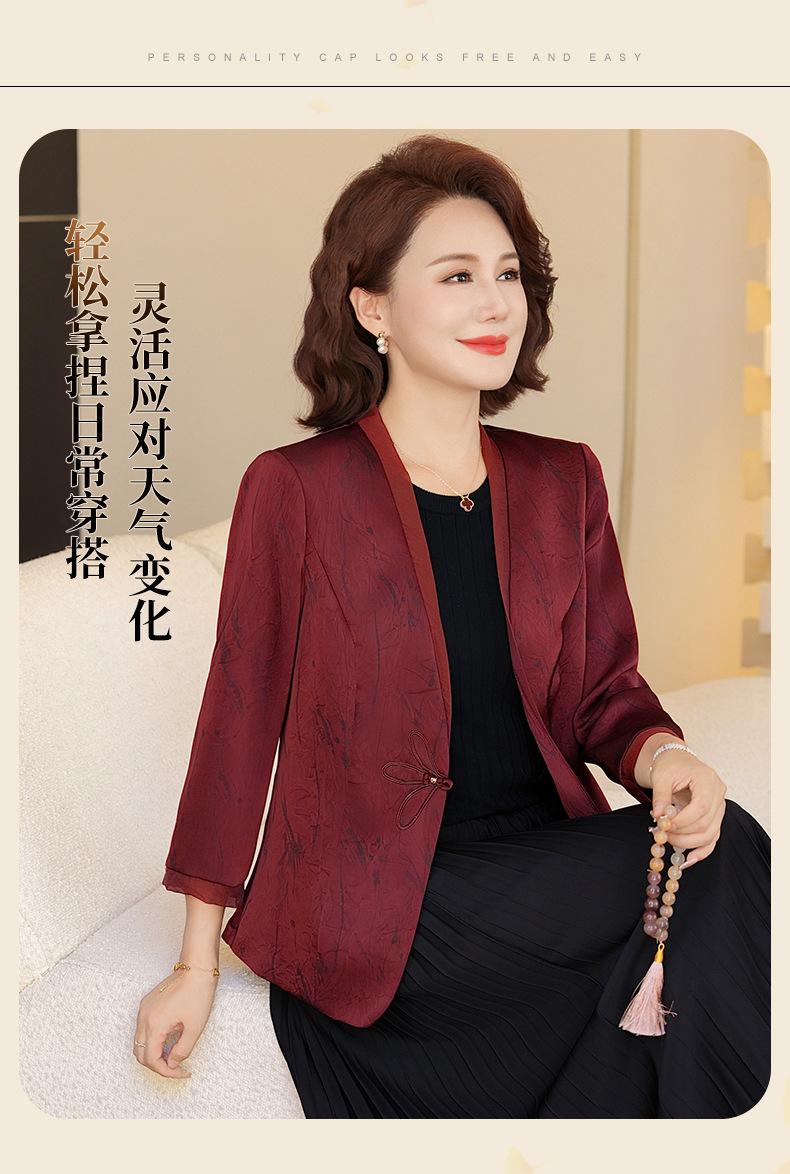 Abrigo de Primavera y Otoño para Mamá de Edad Media de 40 a 50 Años Nuevo Estilo Chino Moda Casual Estilo Pequeño Fragante Adelgazante Versátil Chaqueta