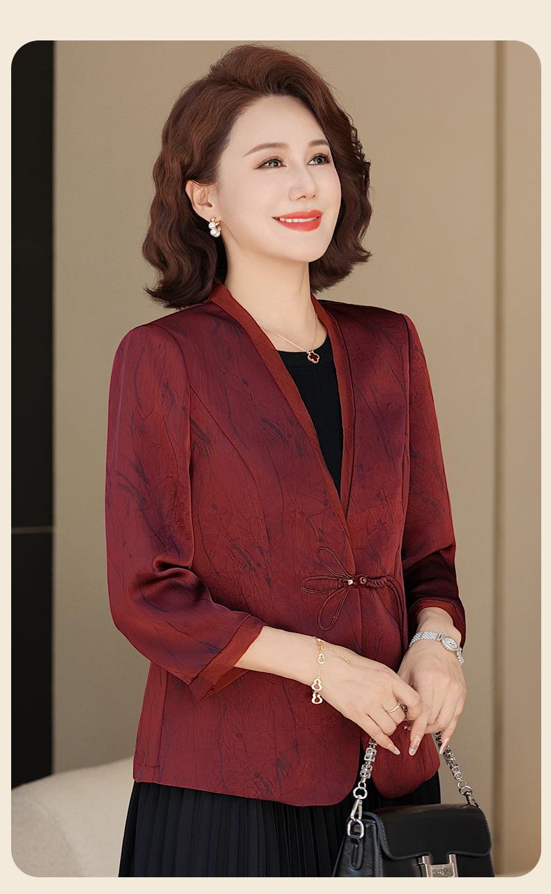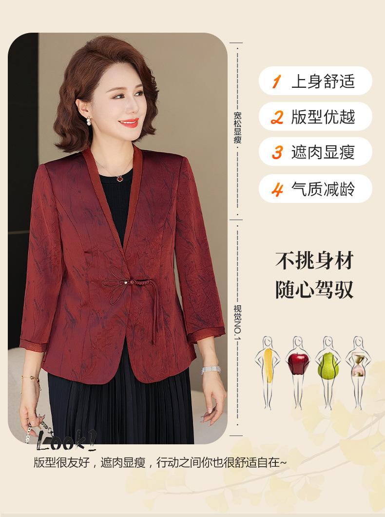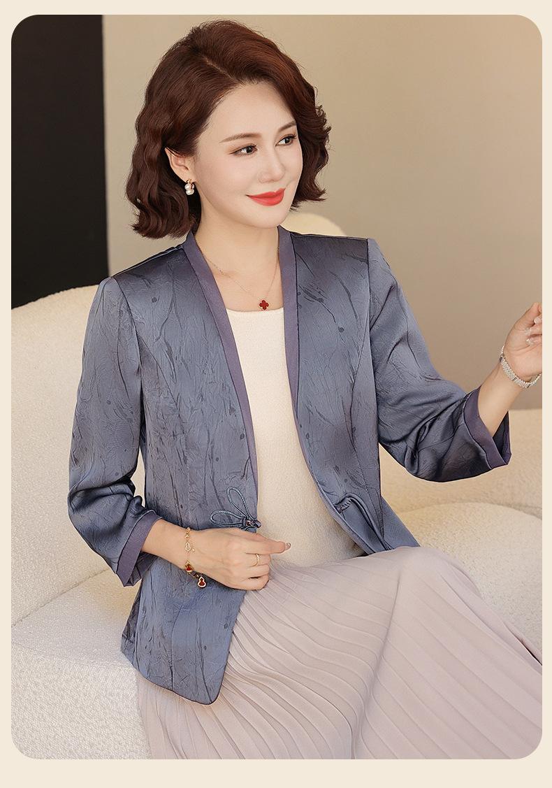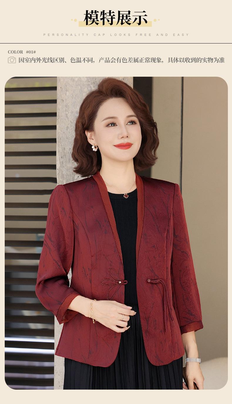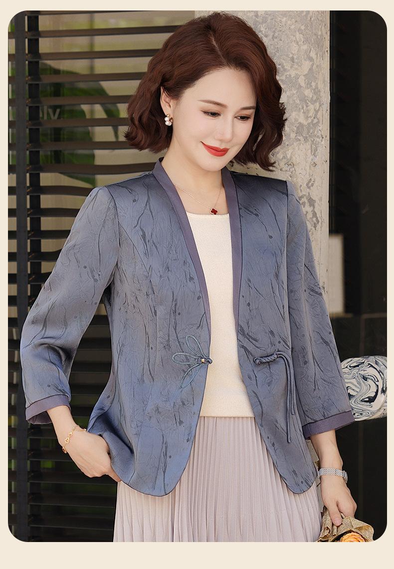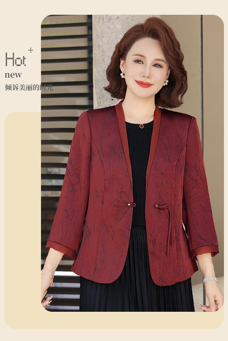 Abrigo de Primavera y Otoño para Mamá de Edad Media de 40 a 50 Años Nuevo Estilo Chino Moda Casual Estilo Pequeño Fragante Adelgazante Versátil Chaqueta