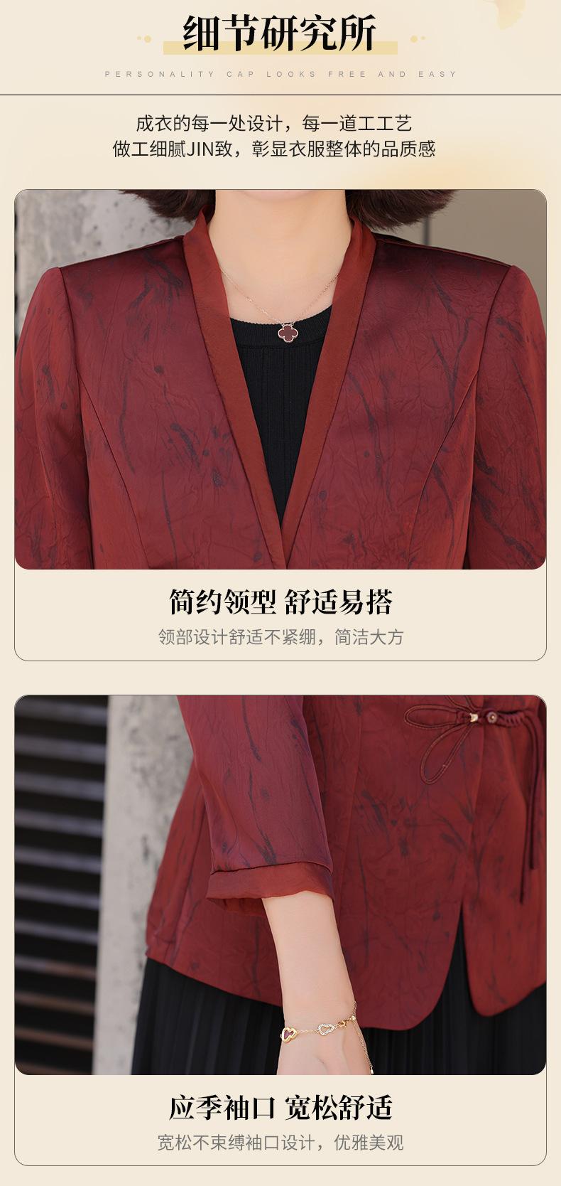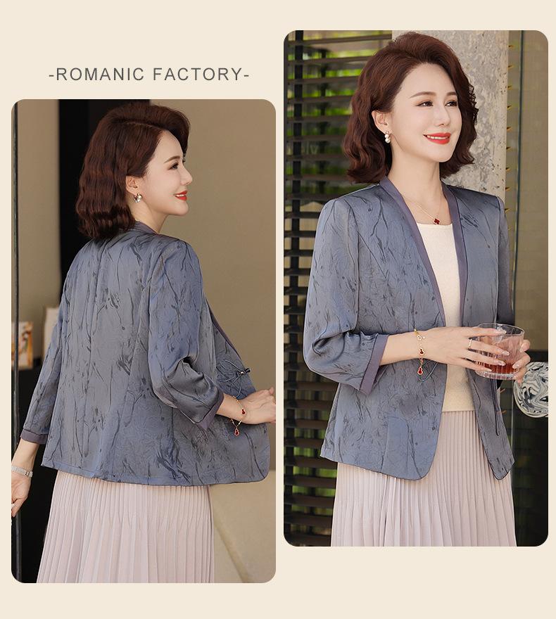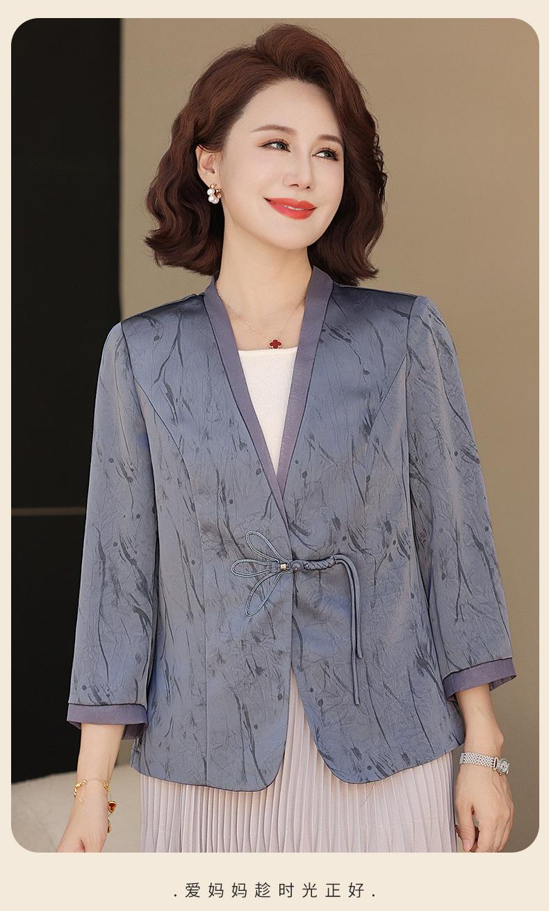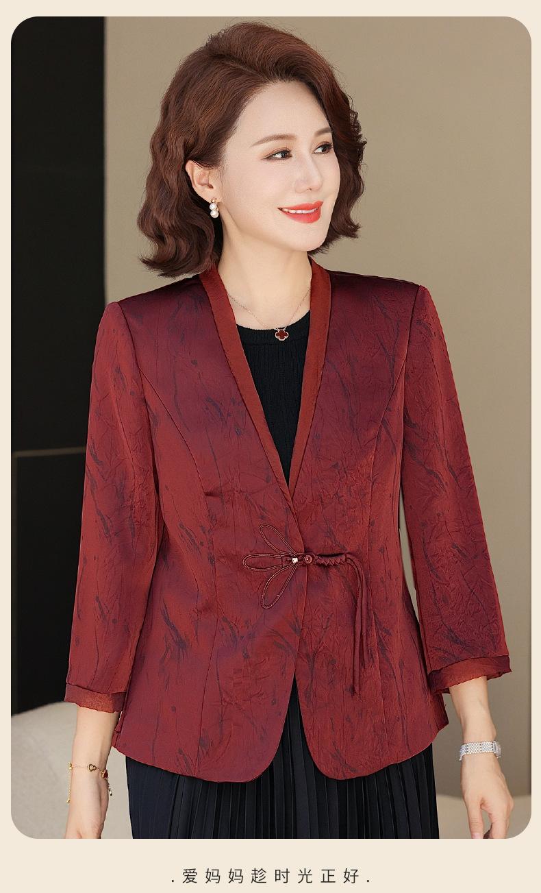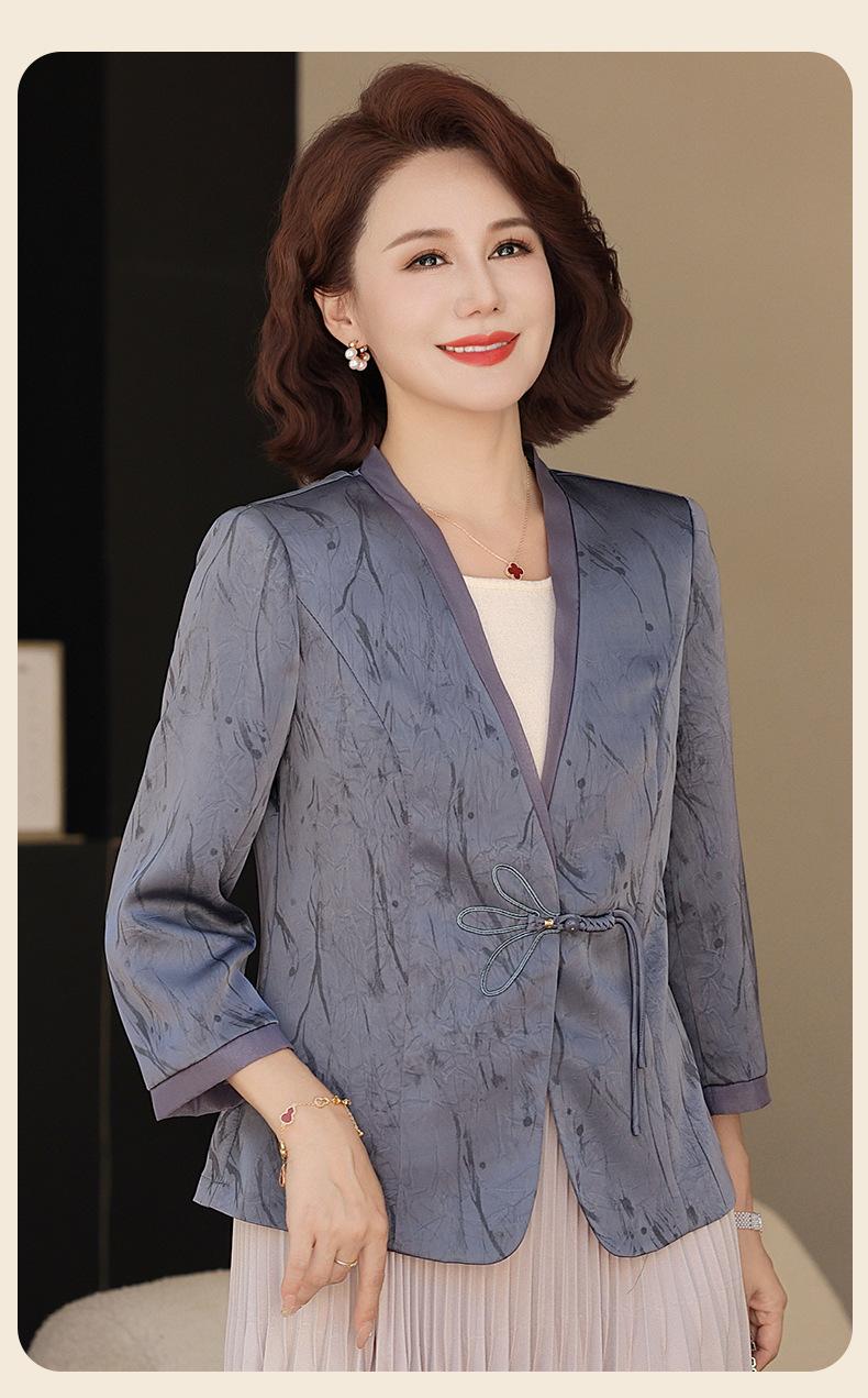 Abrigo de Primavera y Otoño para Mamá de Edad Media de 40 a 50 Años Nuevo Estilo Chino Moda Casual Estilo Pequeño Fragante Adelgazante Versátil Chaqueta