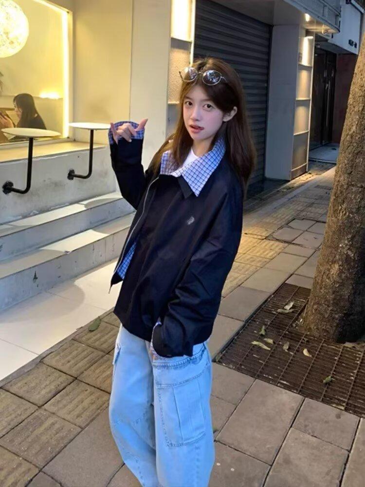Conjunto de Primavera Chaqueta Negra Falsa de Dos Piezas para Mujer Primavera y Otoño 2025 Nuevo Estilo Super Caliente Tendencia Estilo Nacional Marca Chaqueta a Cuadros