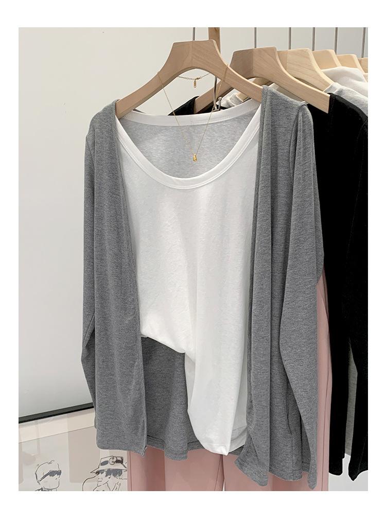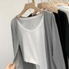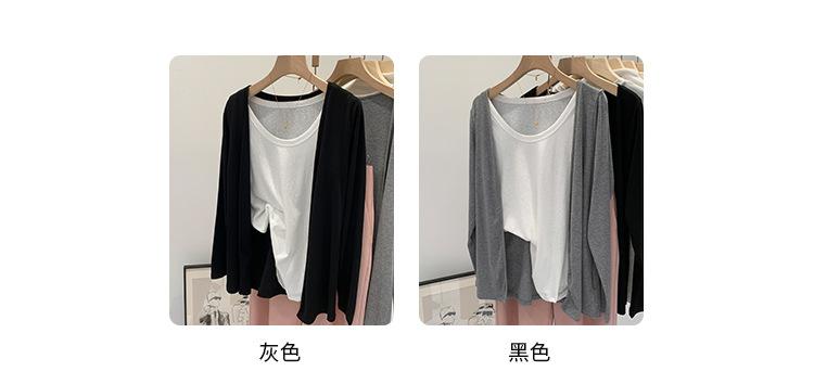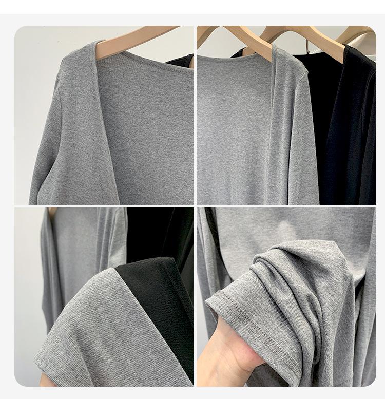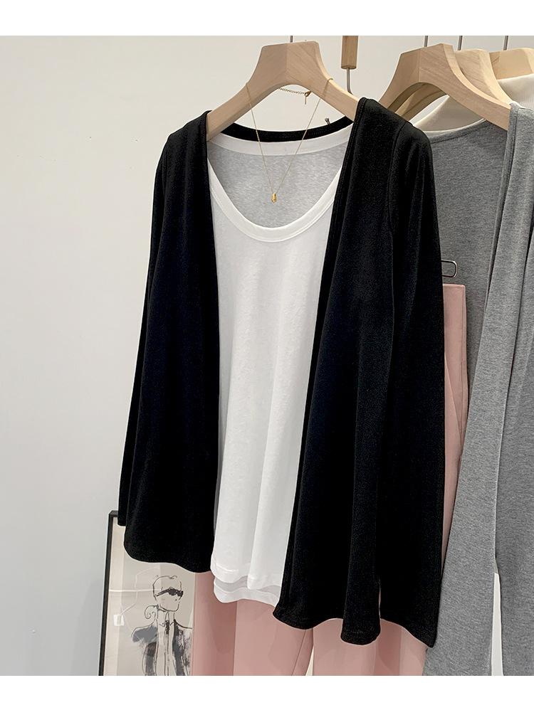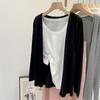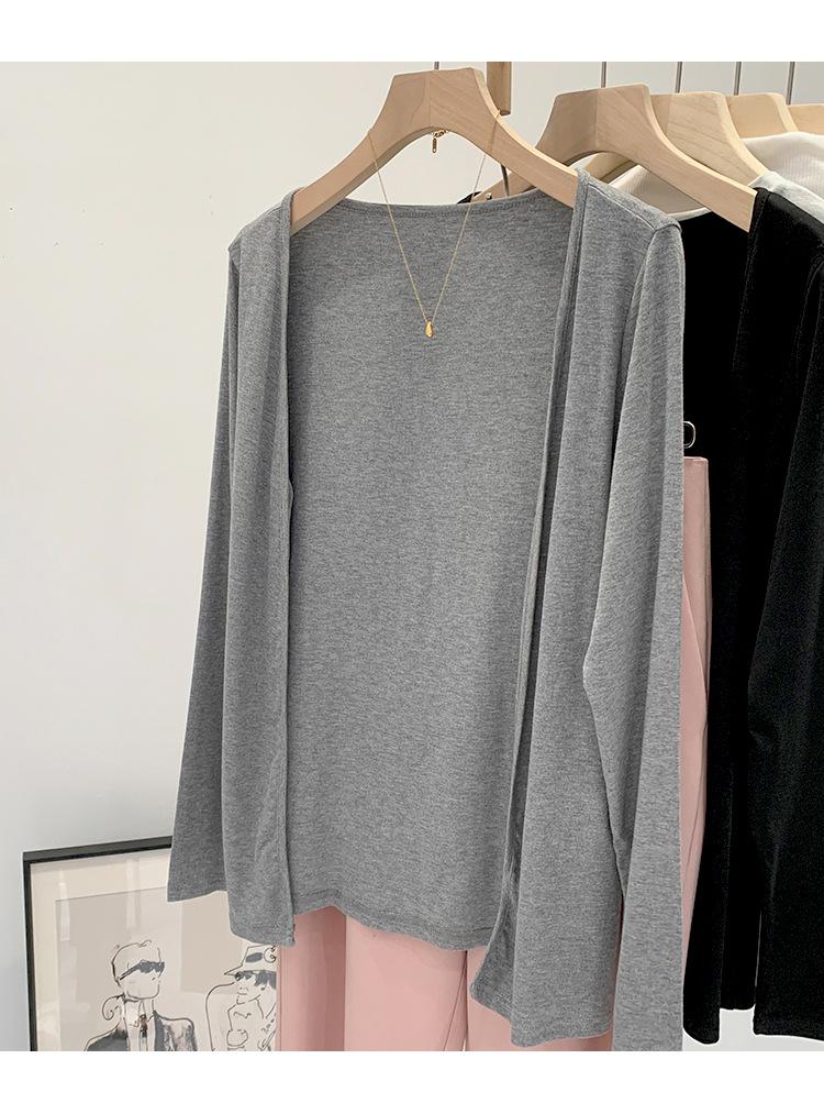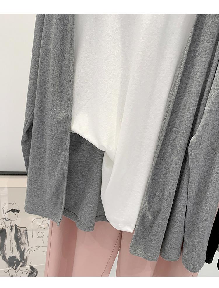 Cárdigan de Punto Gris Estilo Coreano de Estilo Suave para Mujer en Primavera y Otoño Suelto Casual Protección Solar Camiseta Base Chaqueta Top de Manga Larga