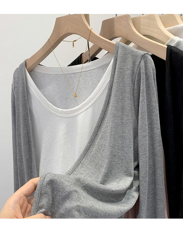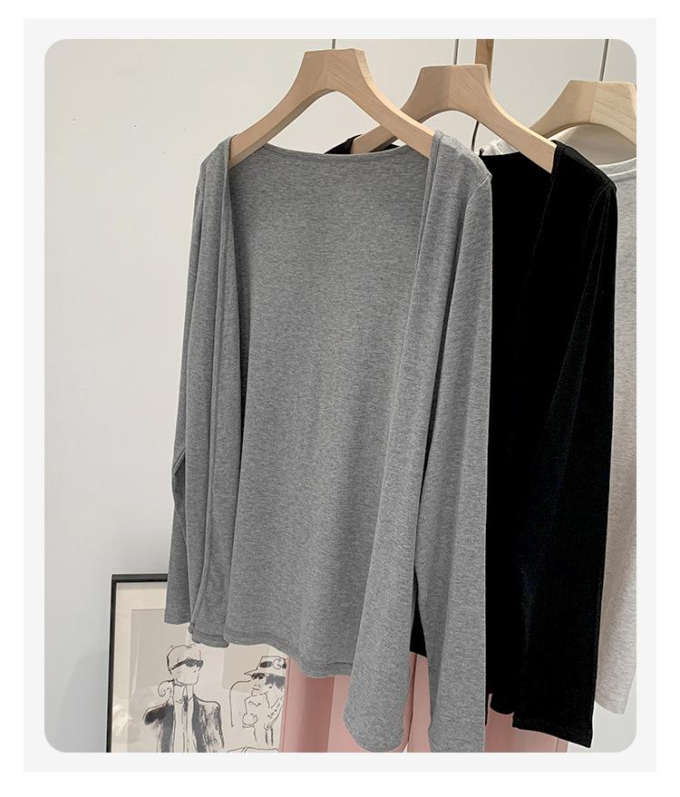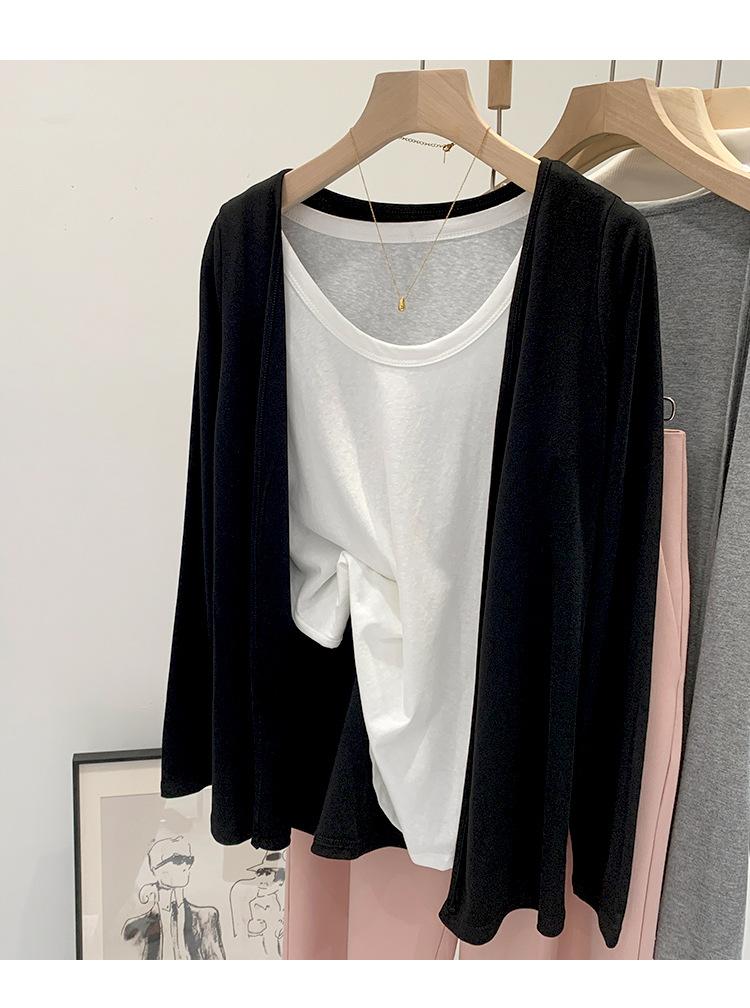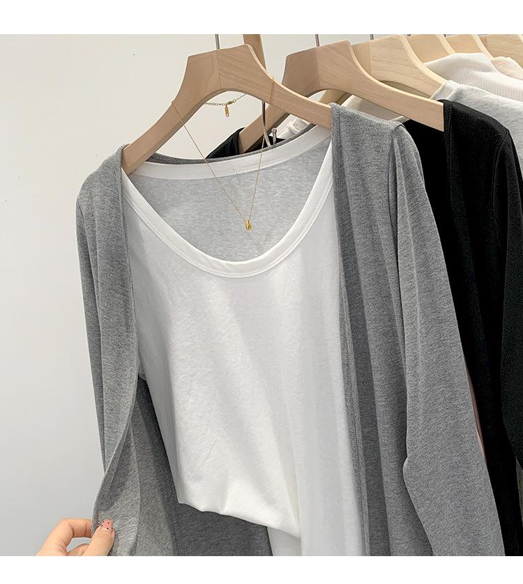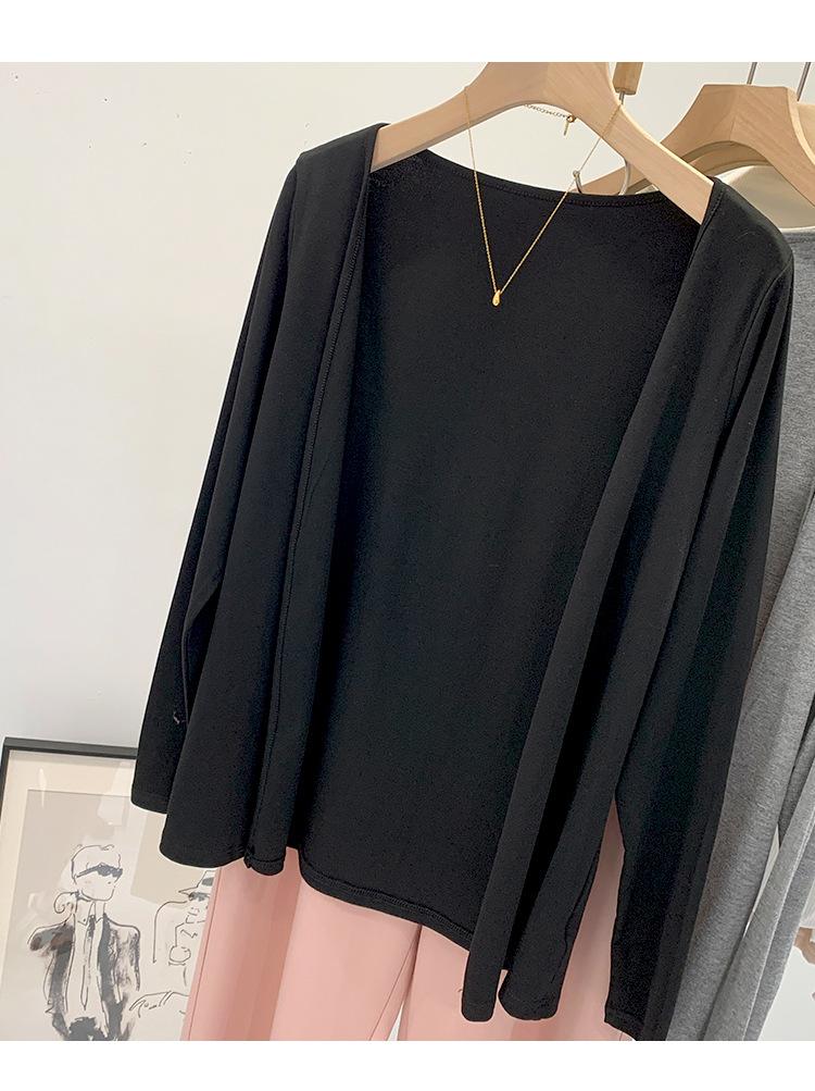 Cárdigan de Punto Gris Estilo Coreano de Estilo Suave para Mujer en Primavera y Otoño Suelto Casual Protección Solar Camiseta Base Chaqueta Top de Manga Larga