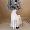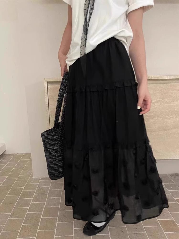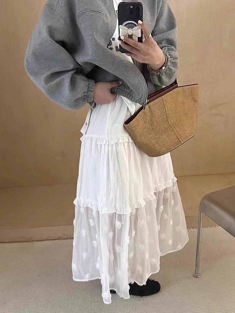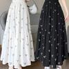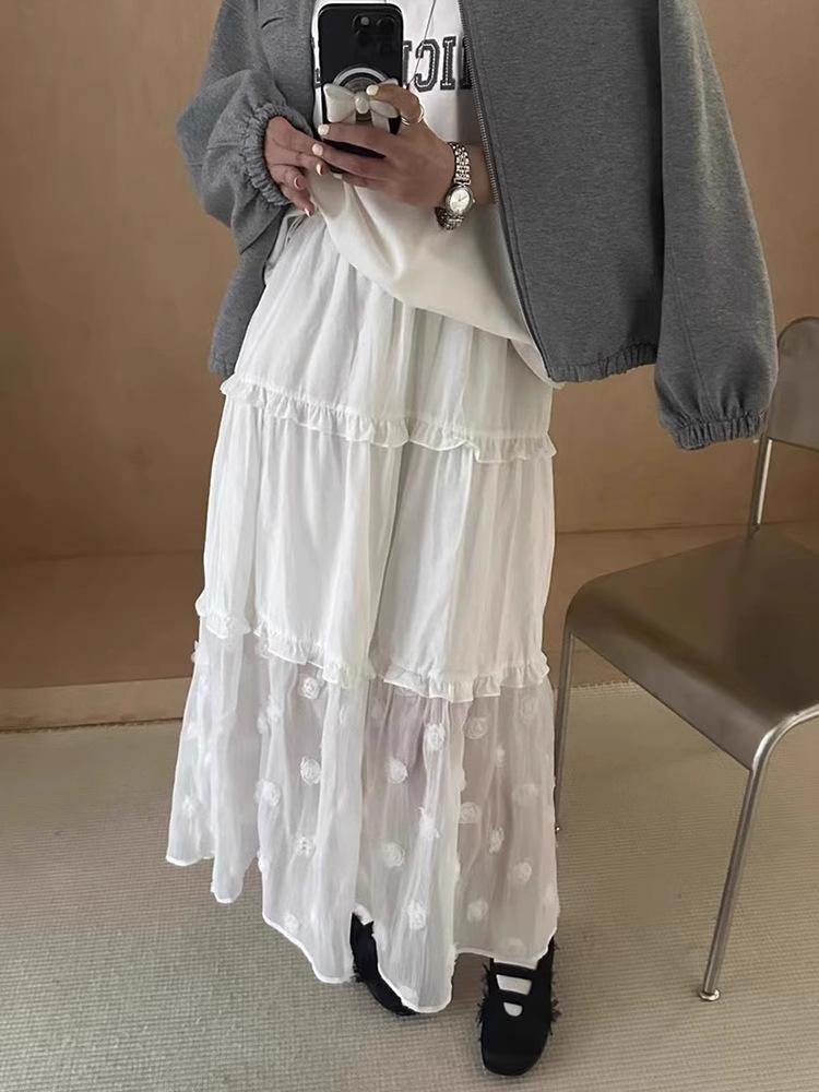 Falda Tutú Empalmada de Flores Blancas para Mujer Verano 2025 Nueva Cintura Alta Slim A-Line Falda Larga Falda Pastel