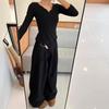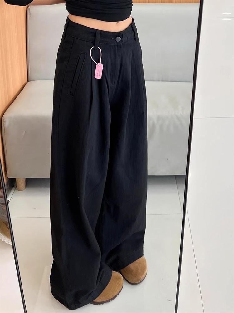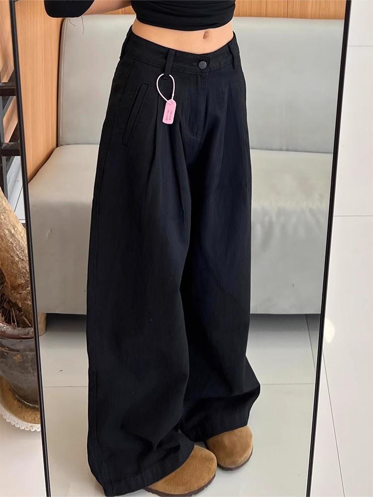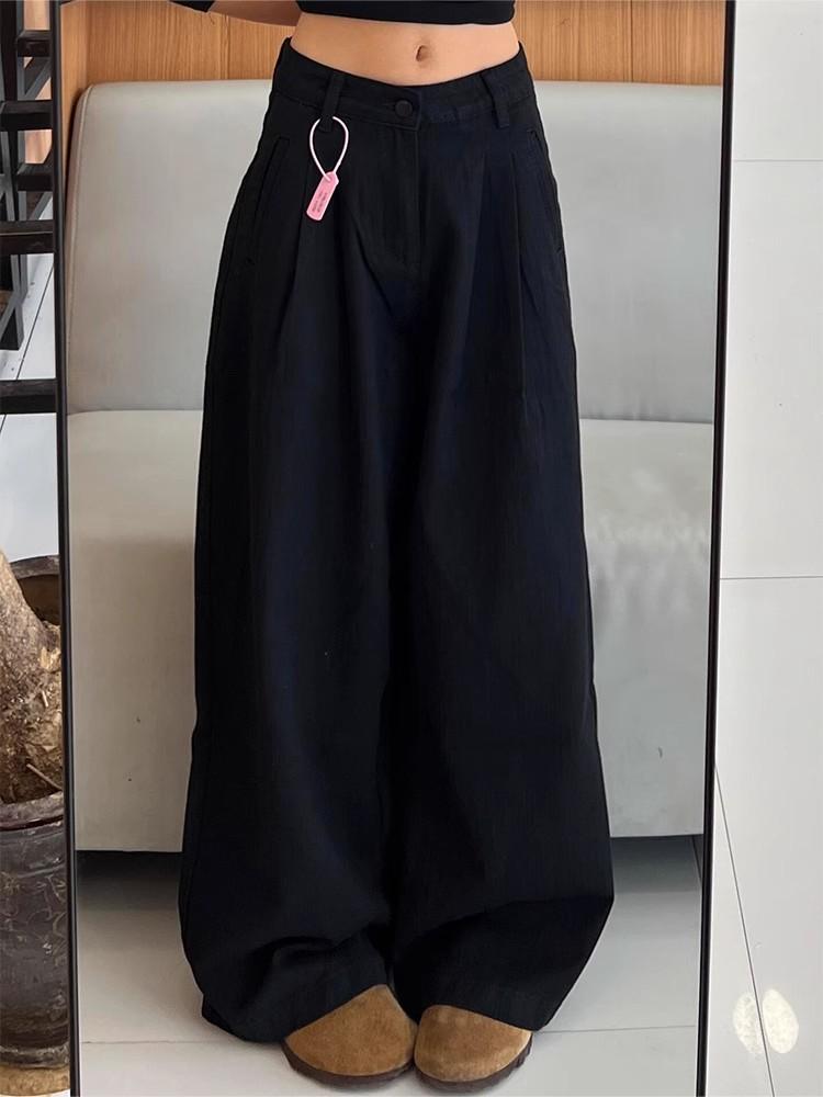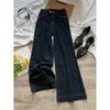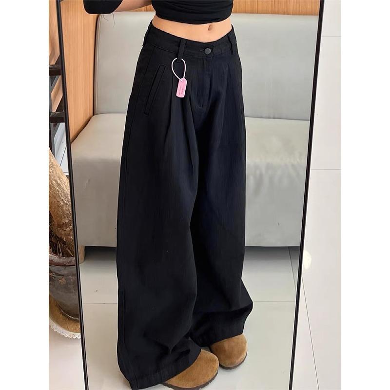 Jeans negros americanos de talla grande para mujer, primavera y verano 2025, nuevo estilo, cuerpo en forma de pera, pantalones holgados de pierna ancha hasta el suelo