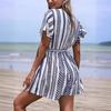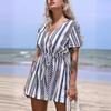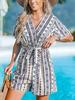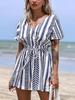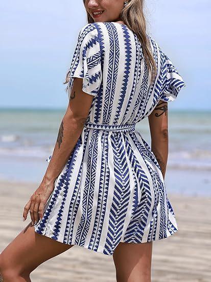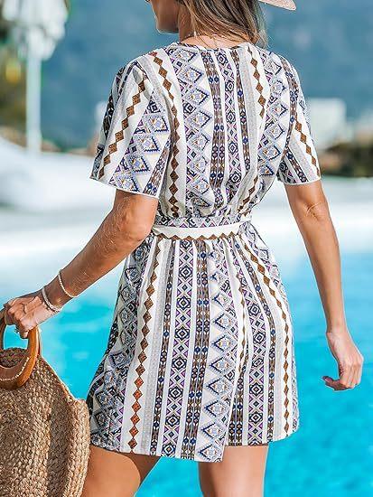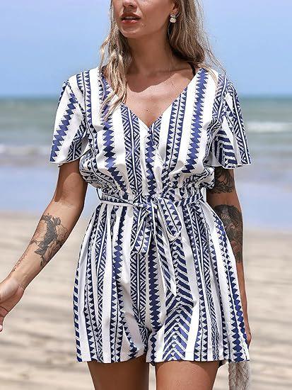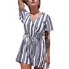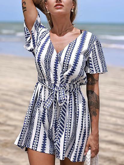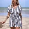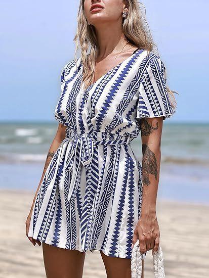 Mono de Mujer Bohemio Manga Corta Cuello en V Pierna Ancha Overol con Cordones Casual Ropa de Playa