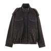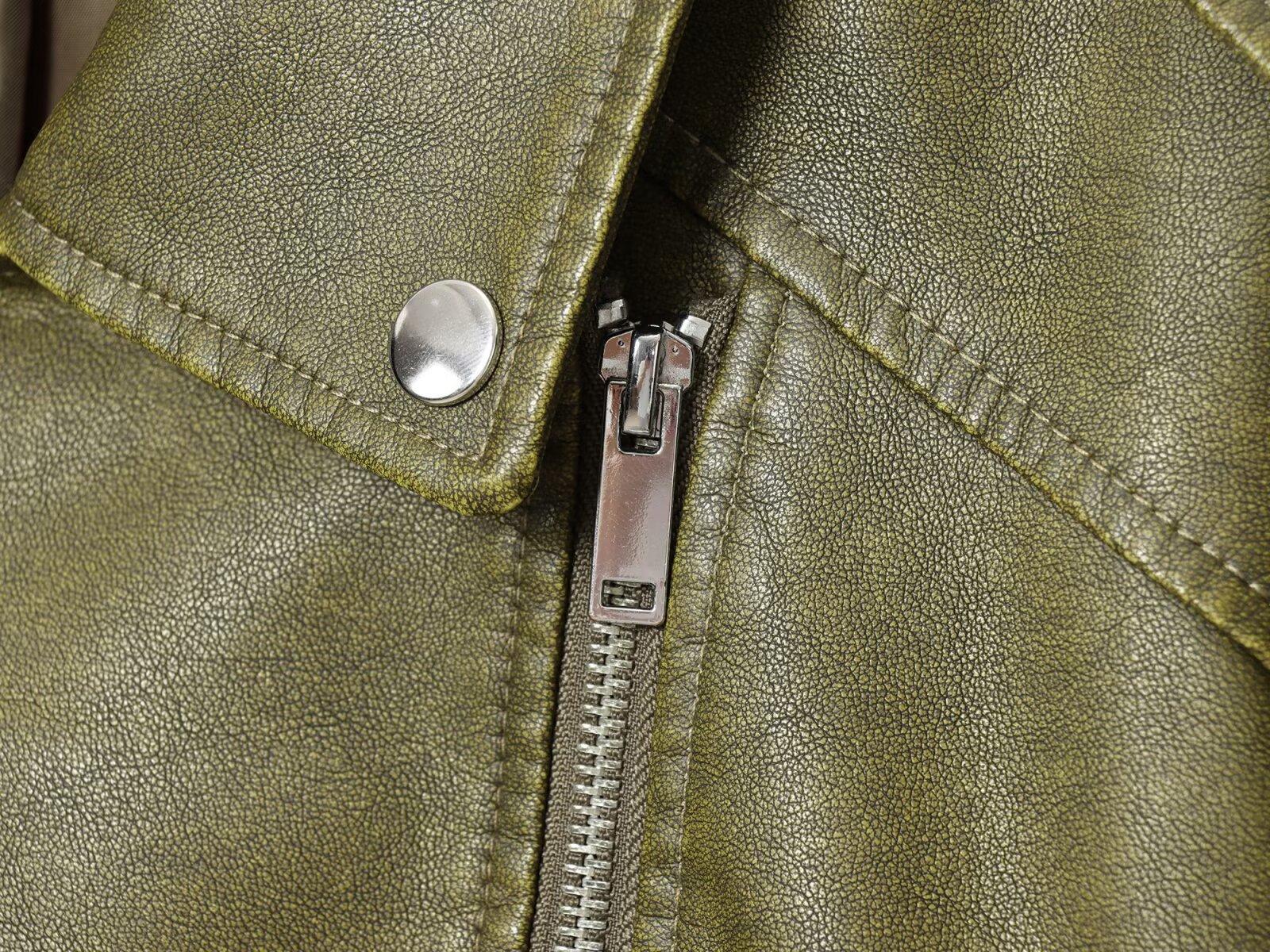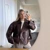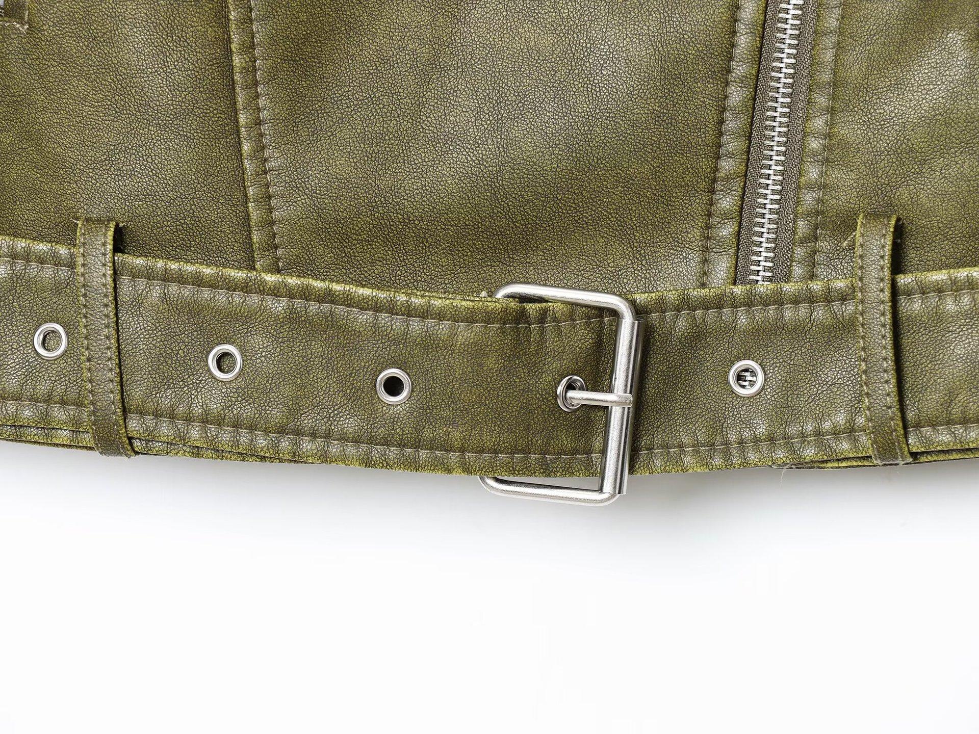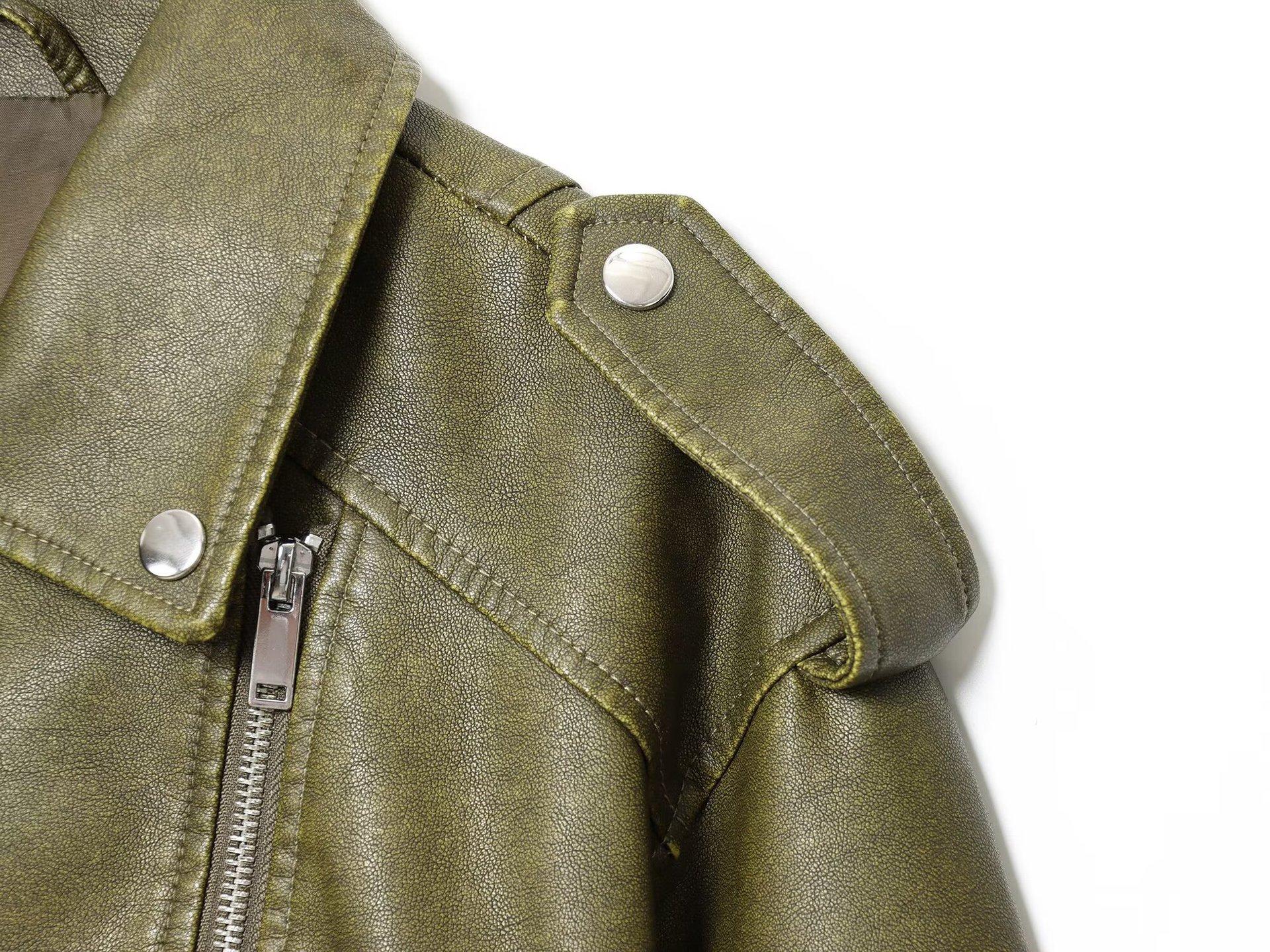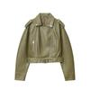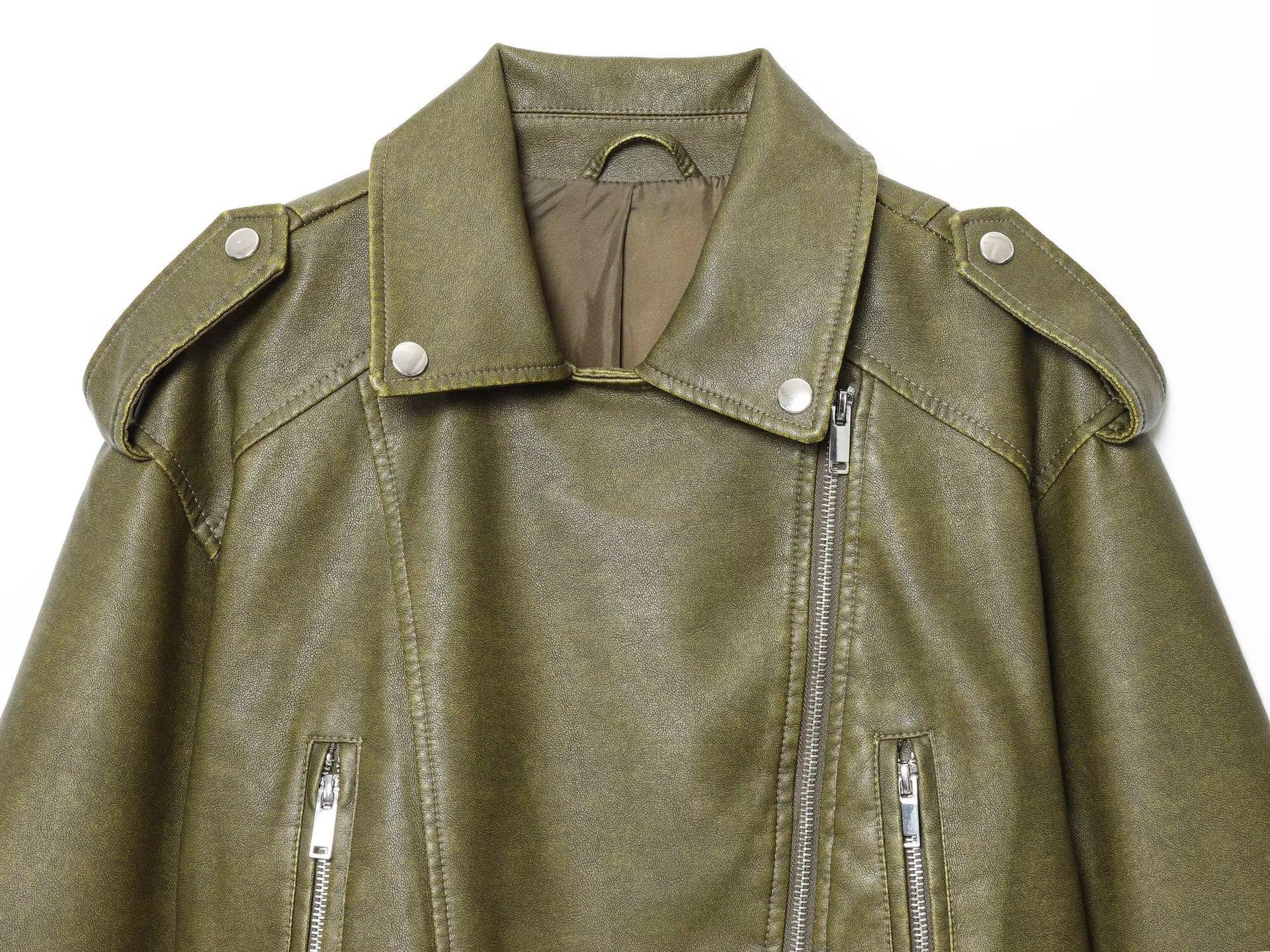 Moda Femenina Europea y Americana Transfronteriza AliExpress Chaqueta de Cuero Lavado Estilo Europeo y Americano Casual de Moda Más Vendida