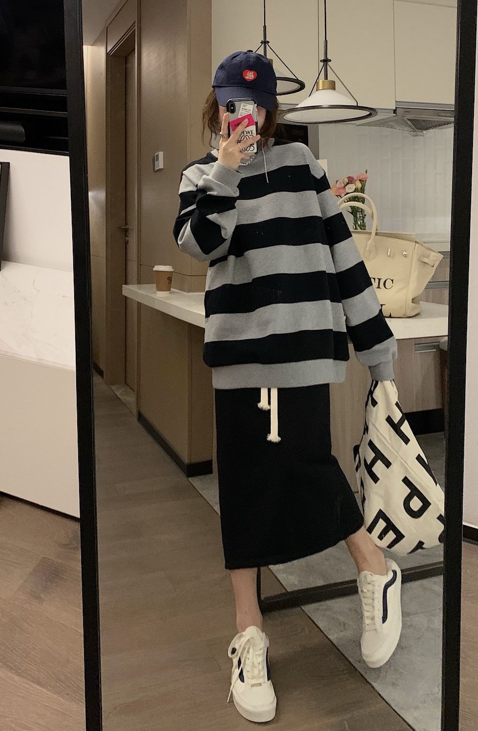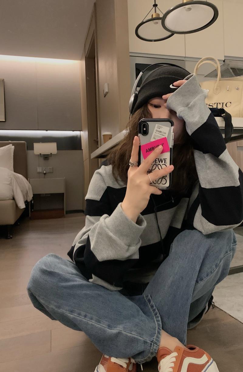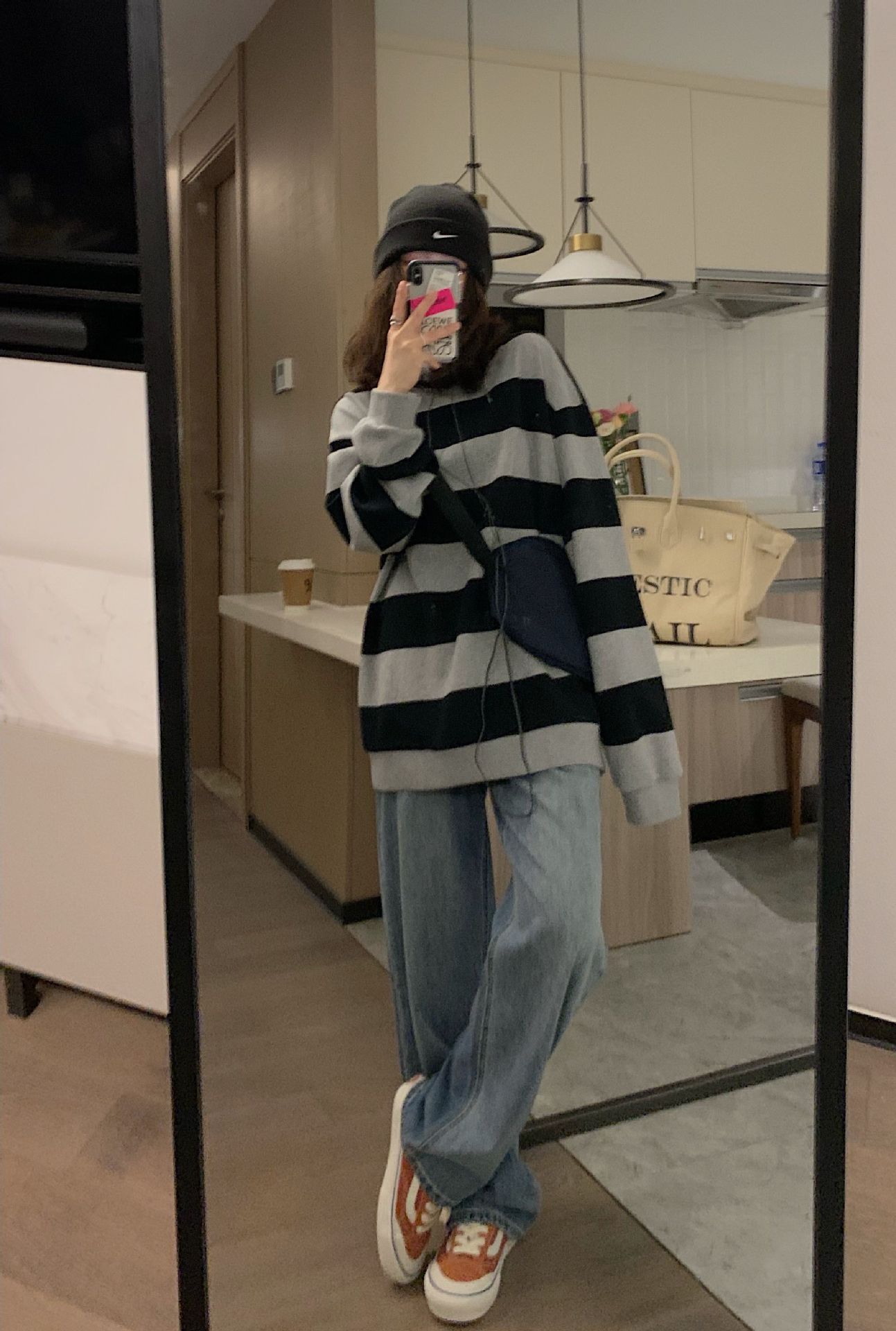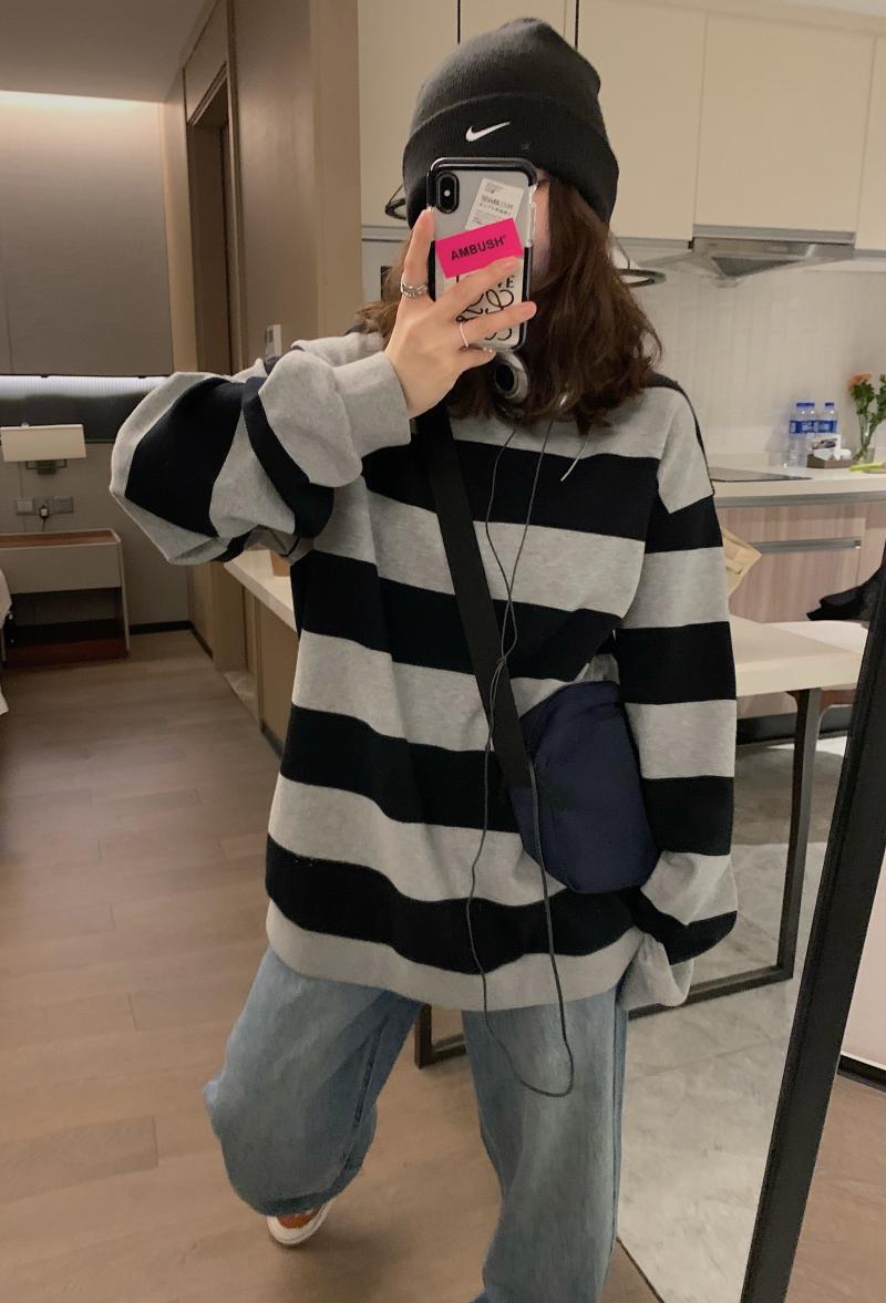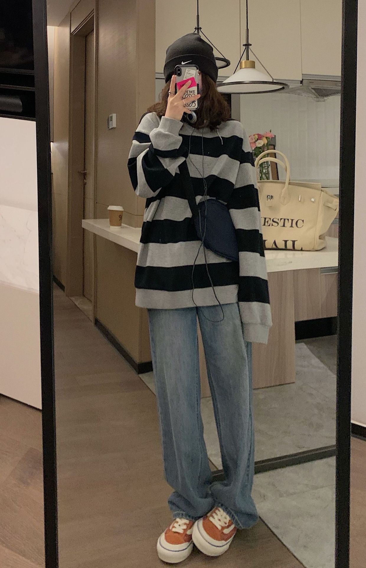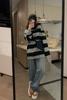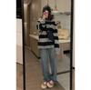 Sudadera Retro Rayada Nueva 2025 para Mujer, Estilo Delgado, Versión Coreana Holgada, Top Pulóver de Manga Larga y Cuello Redondo, Otoño e Invierno de Moda