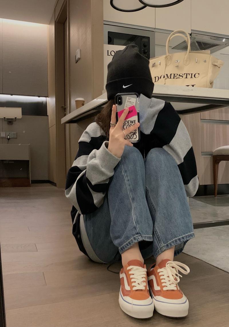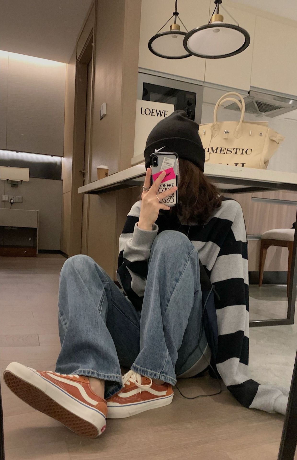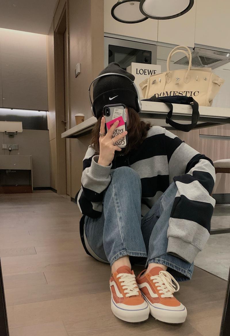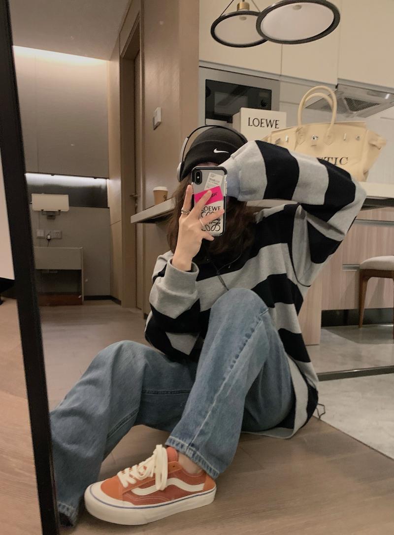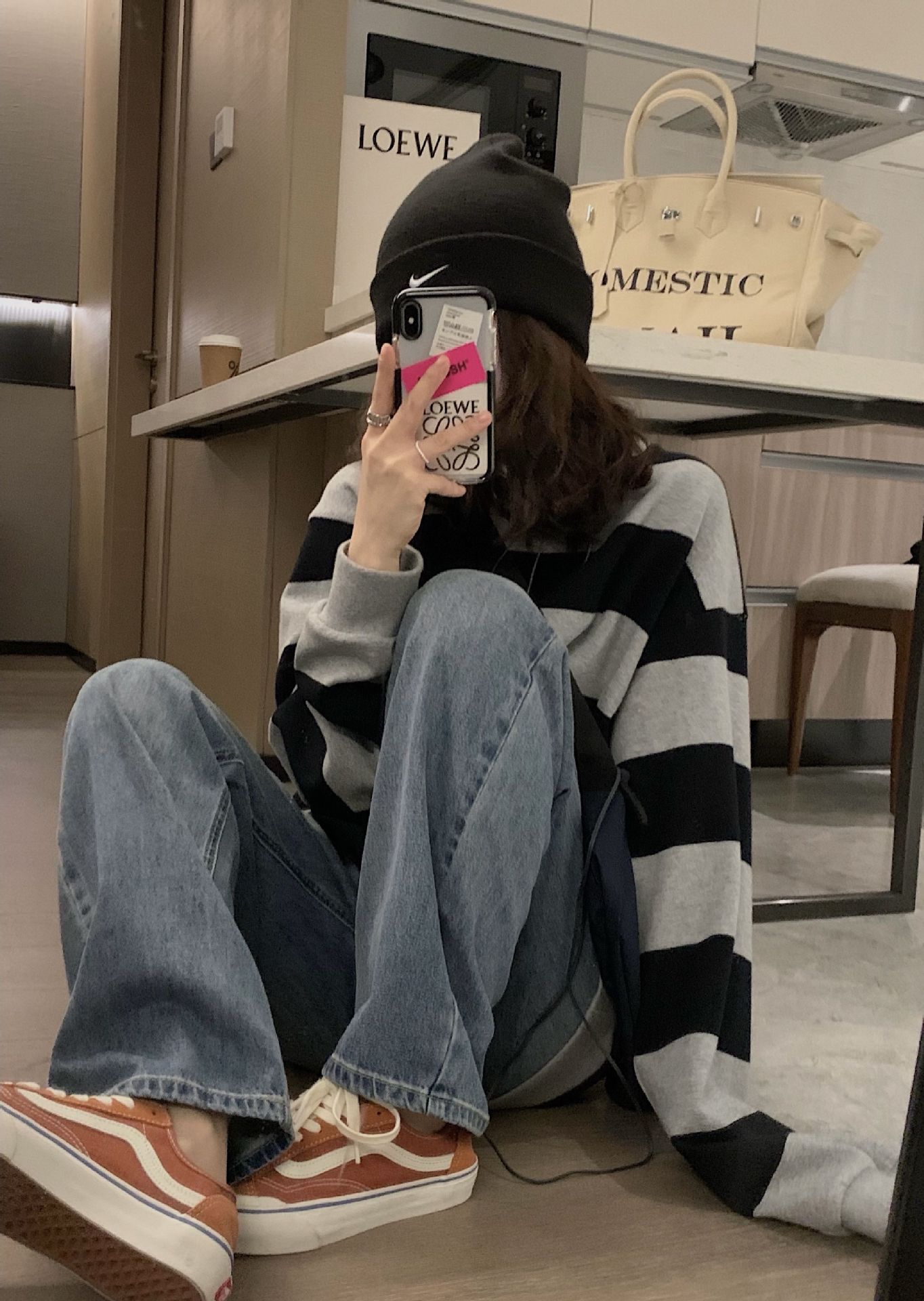 Sudadera Retro Rayada Nueva 2025 para Mujer, Estilo Delgado, Versión Coreana Holgada, Top Pulóver de Manga Larga y Cuello Redondo, Otoño e Invierno de Moda