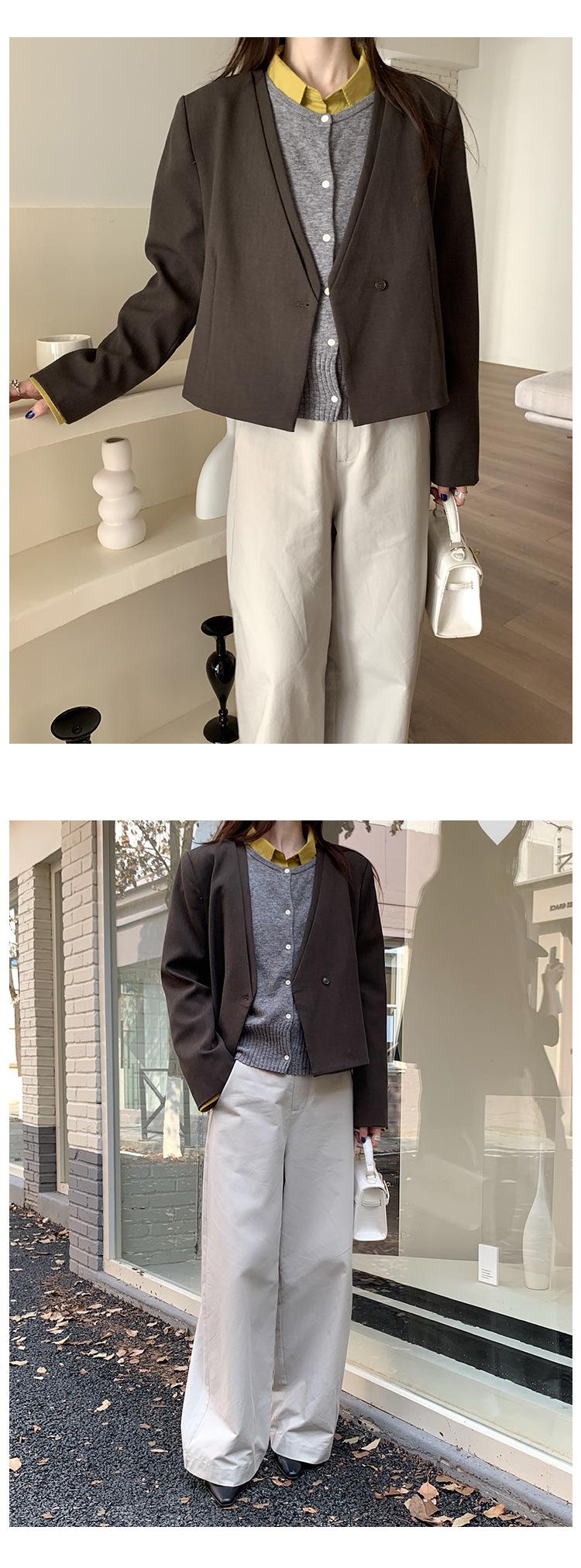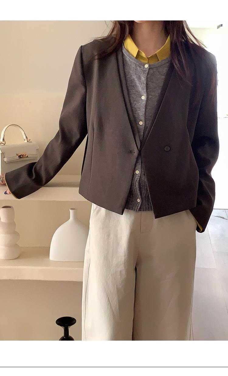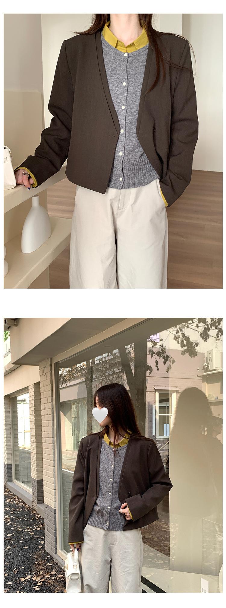Traje sencillo de estilo coreano de dos piezas falsas con cuello en V para mujer 2025 Otoño Nuevo Temperamento casual de alta gama Traje pequeño