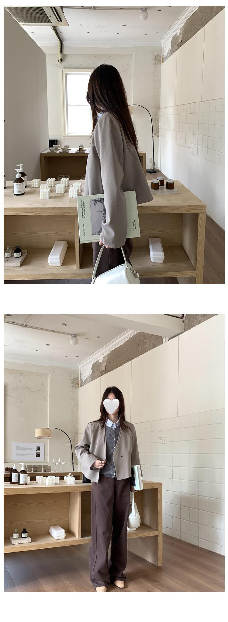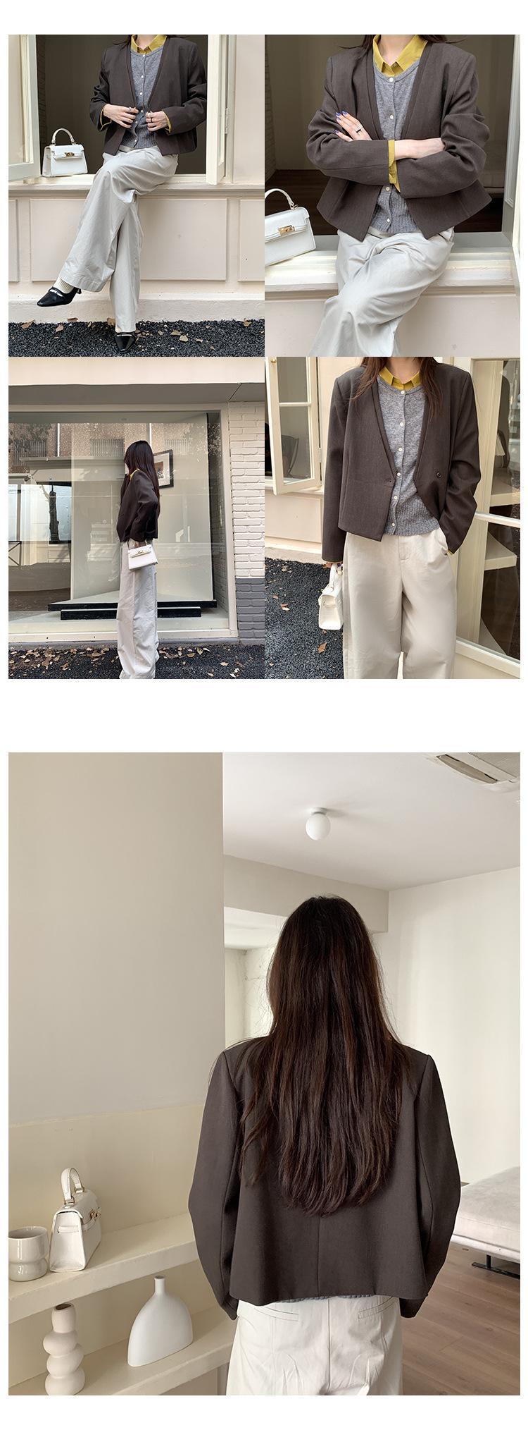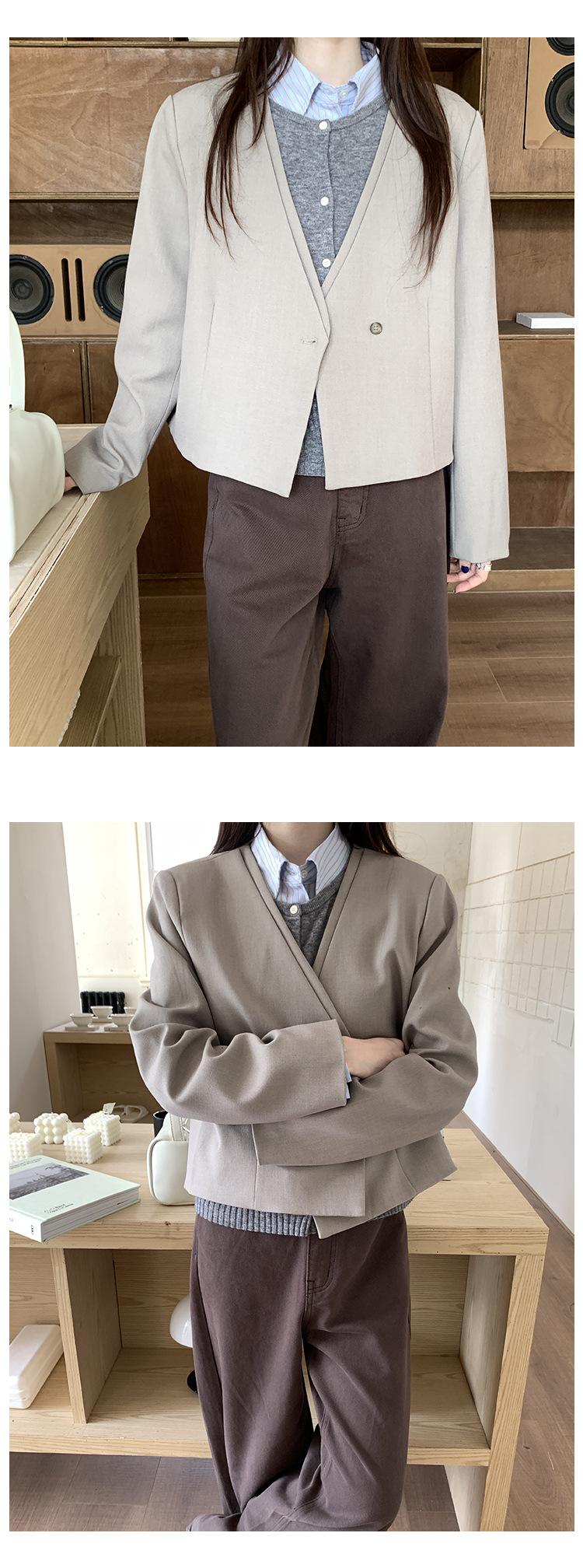 Traje sencillo de estilo coreano de dos piezas falsas con cuello en V para mujer 2025 Otoño Nuevo Temperamento casual de alta gama Traje pequeño