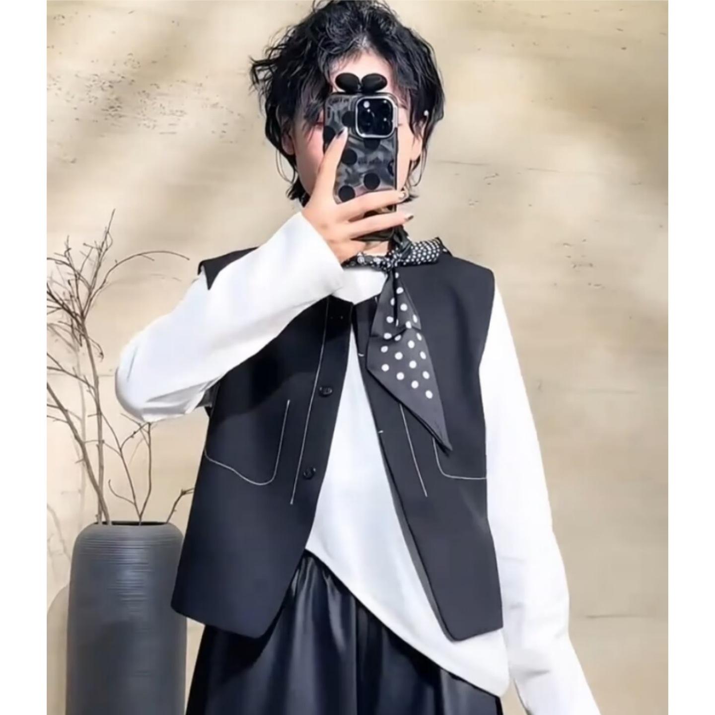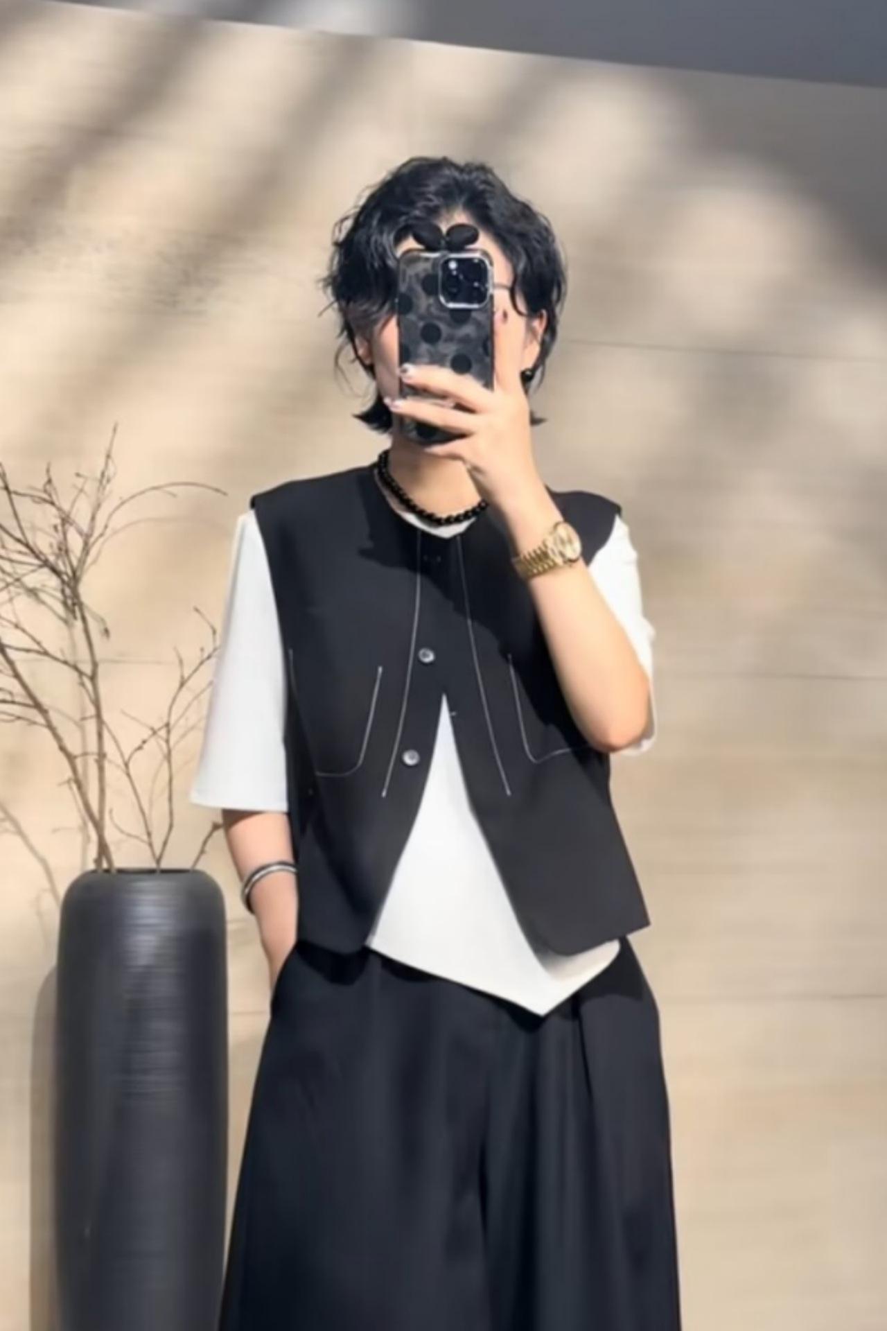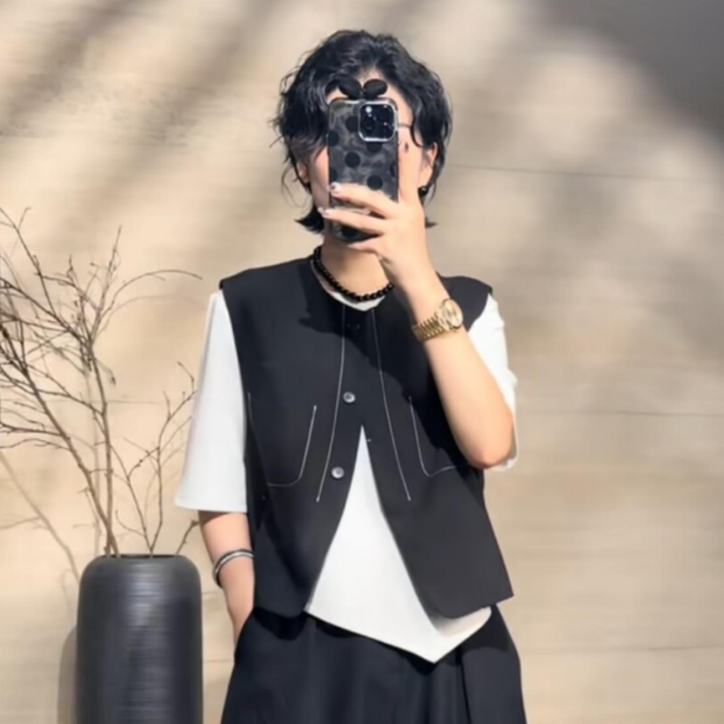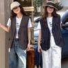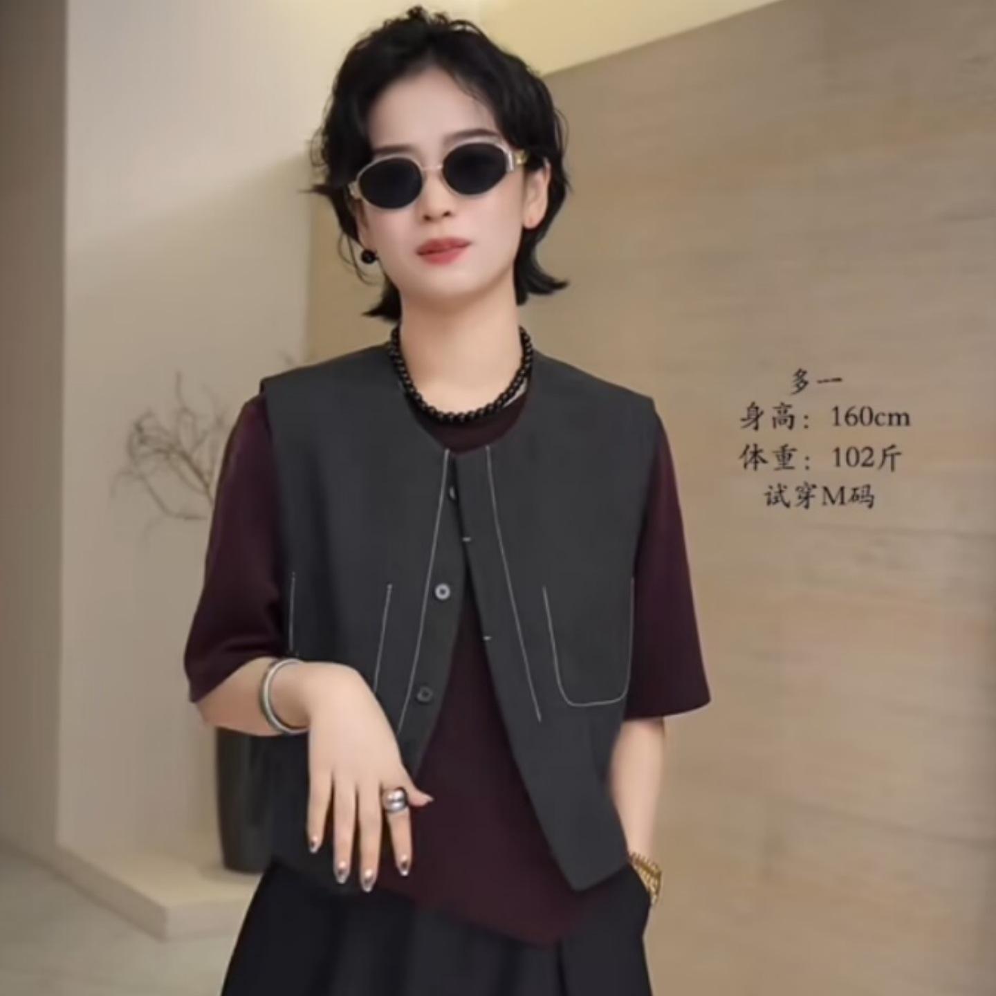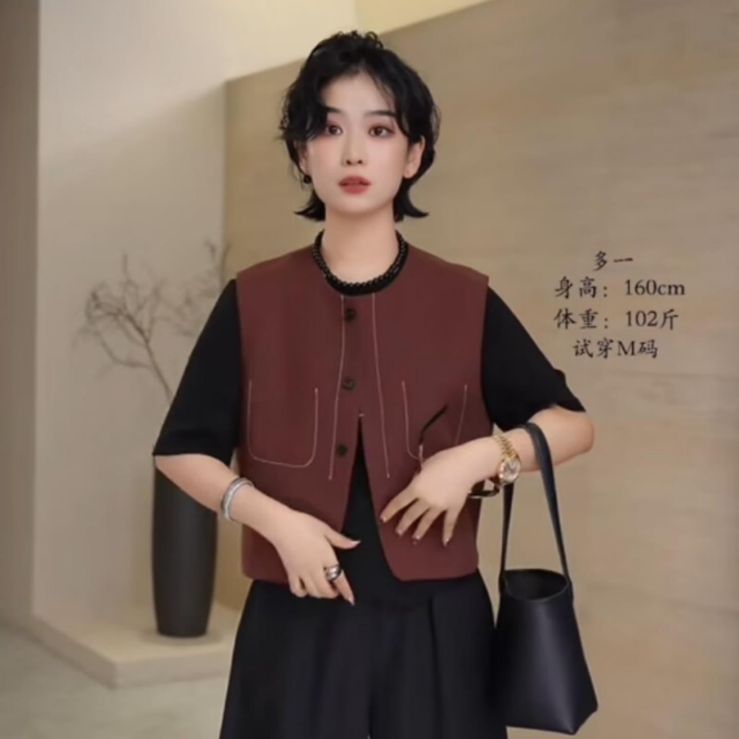 Chaqueta Chaleco de Traje para Mujer 2025 Otoño Nuevo Temperamento de Alta Gama Moda Casual Corto Sin Mangas Top Chaleco