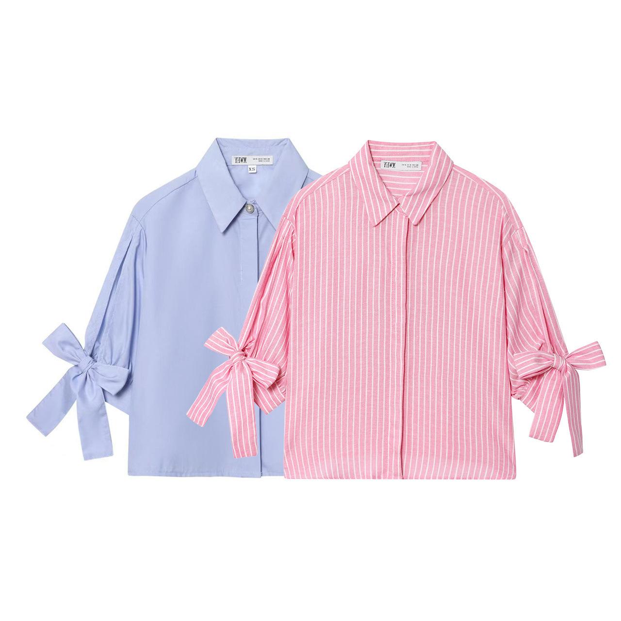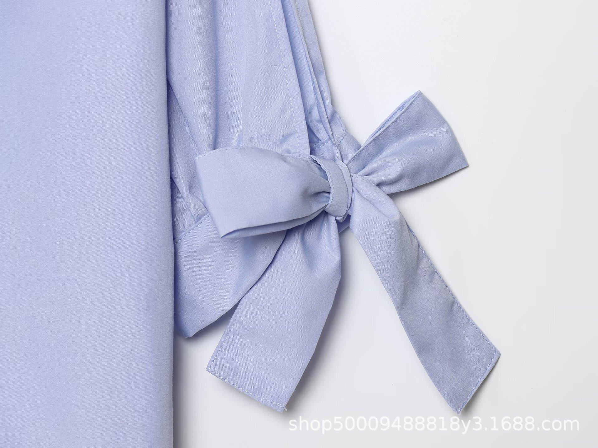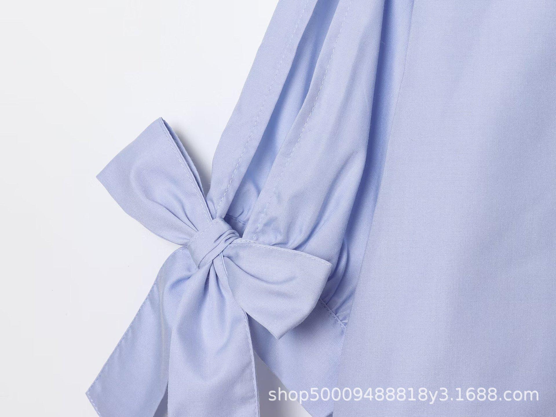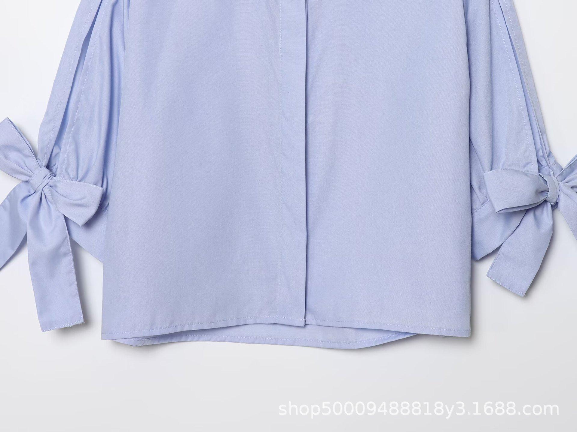 Ropa de Mujer de Comercio Exterior 2025 Verano Nuevo Estilo Europeo y Americano Camisa de Popelina a la Moda Decorada con Lazo 2298094