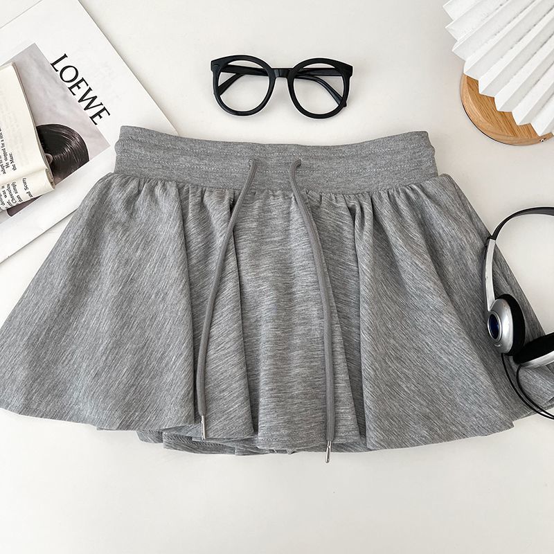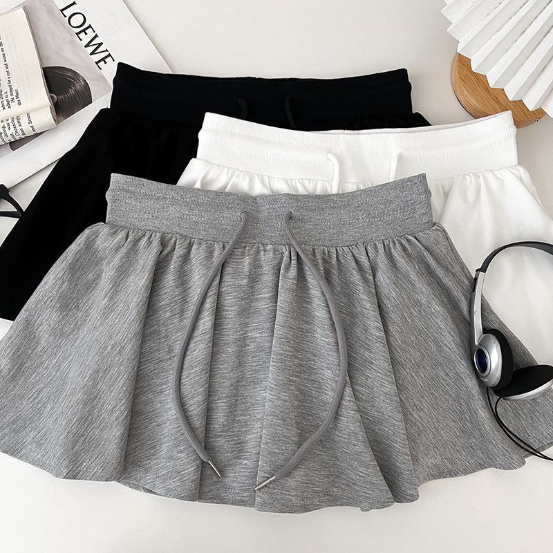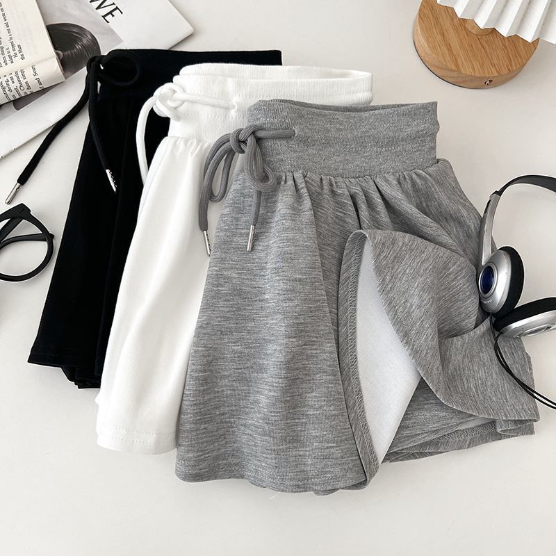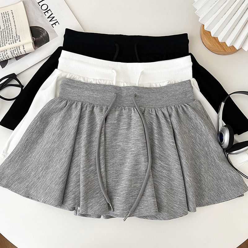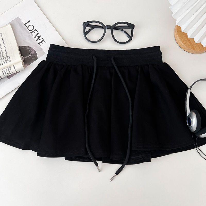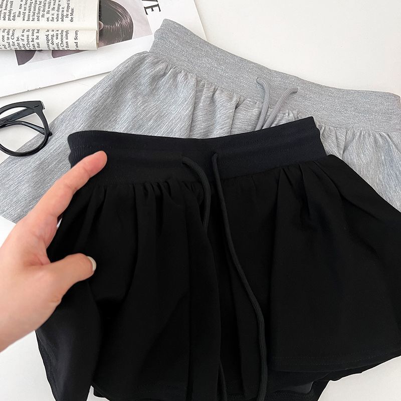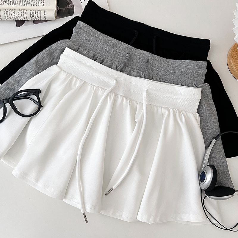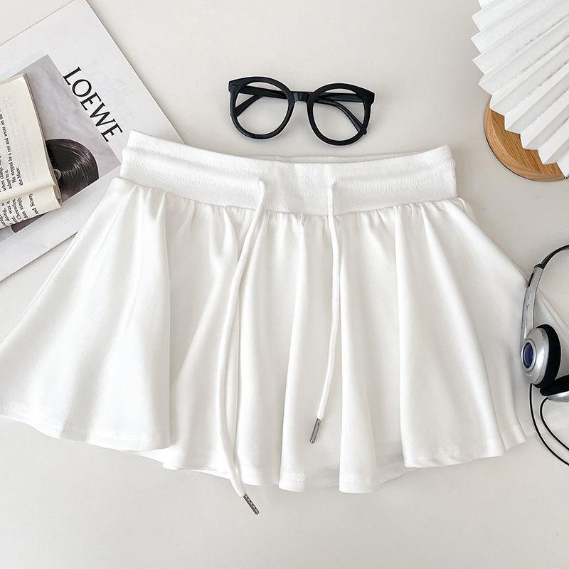 Falda Deportiva Versátil con Cordón Elástico de Cintura Alta Adelgazante a la Moda Falda Corta Antiexposición Estilo Coreano para Mujer Verano Nuevo Modelo